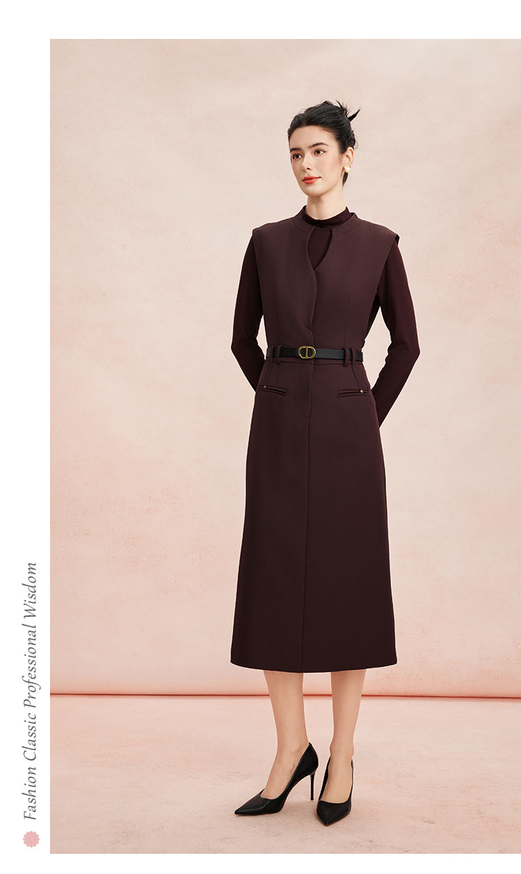 RE807斯尔丽26新款气质款白领时尚显瘦内搭搭配马甲式直筒连衣裙套装