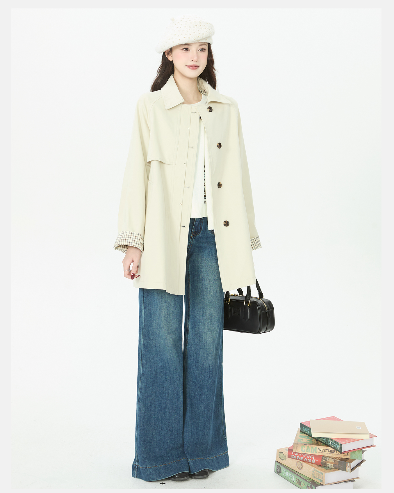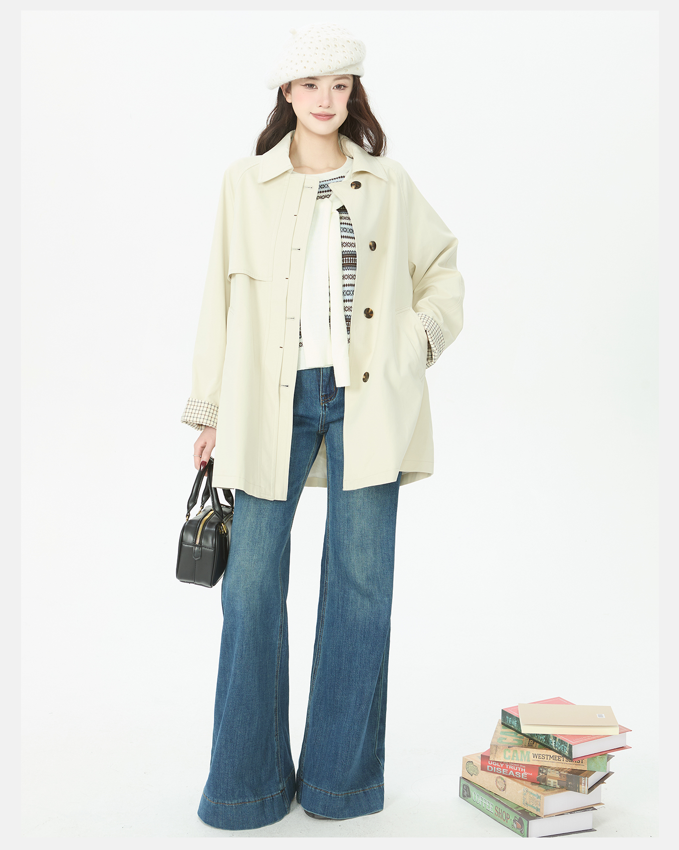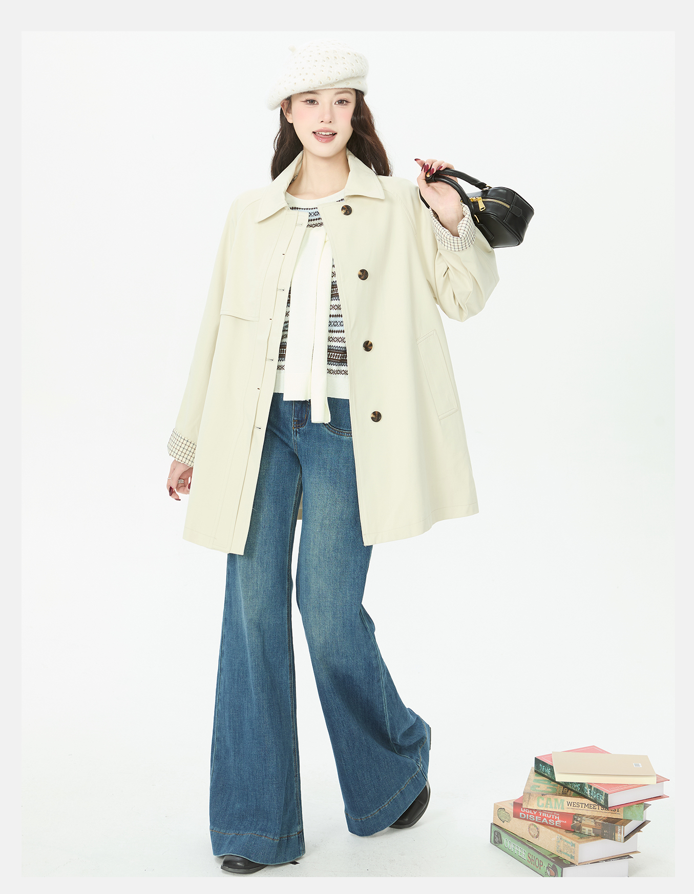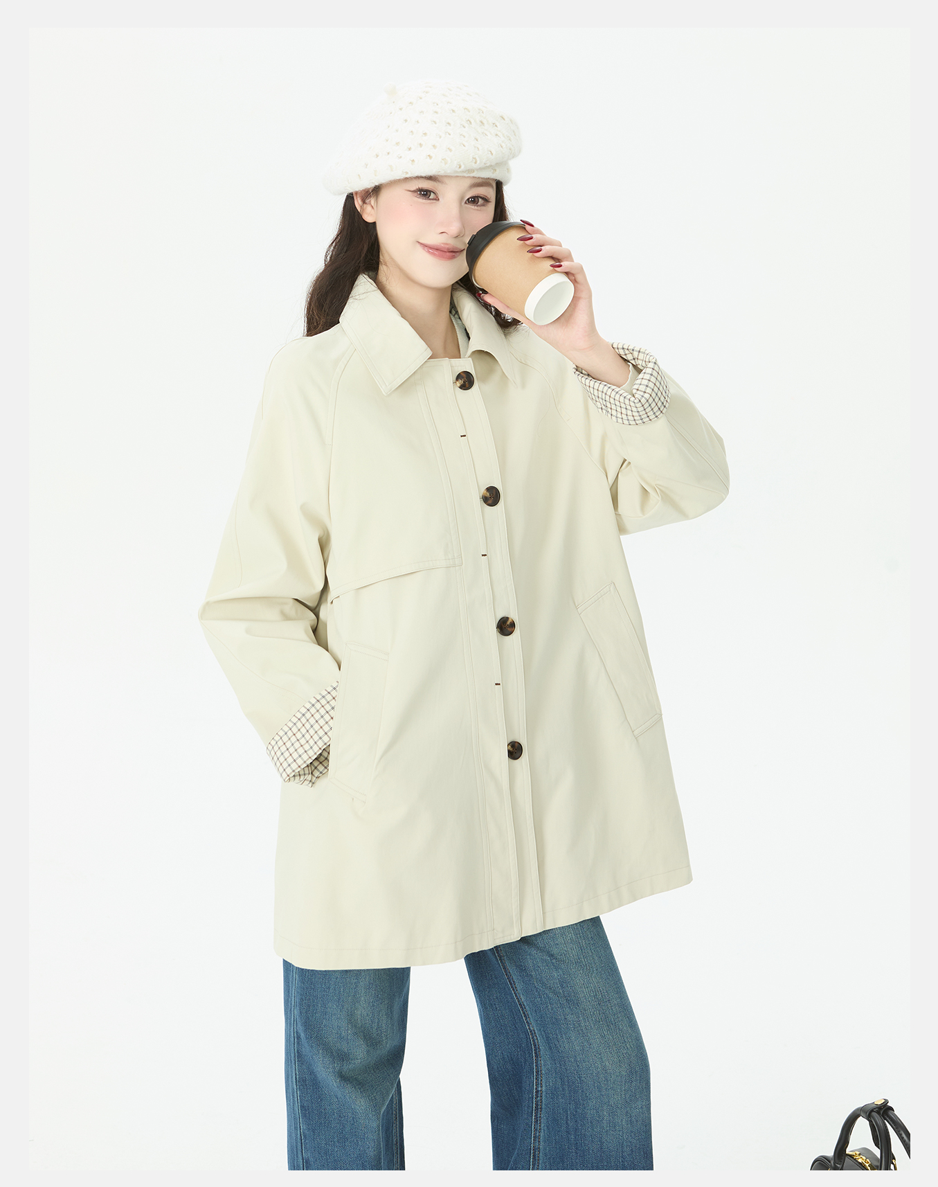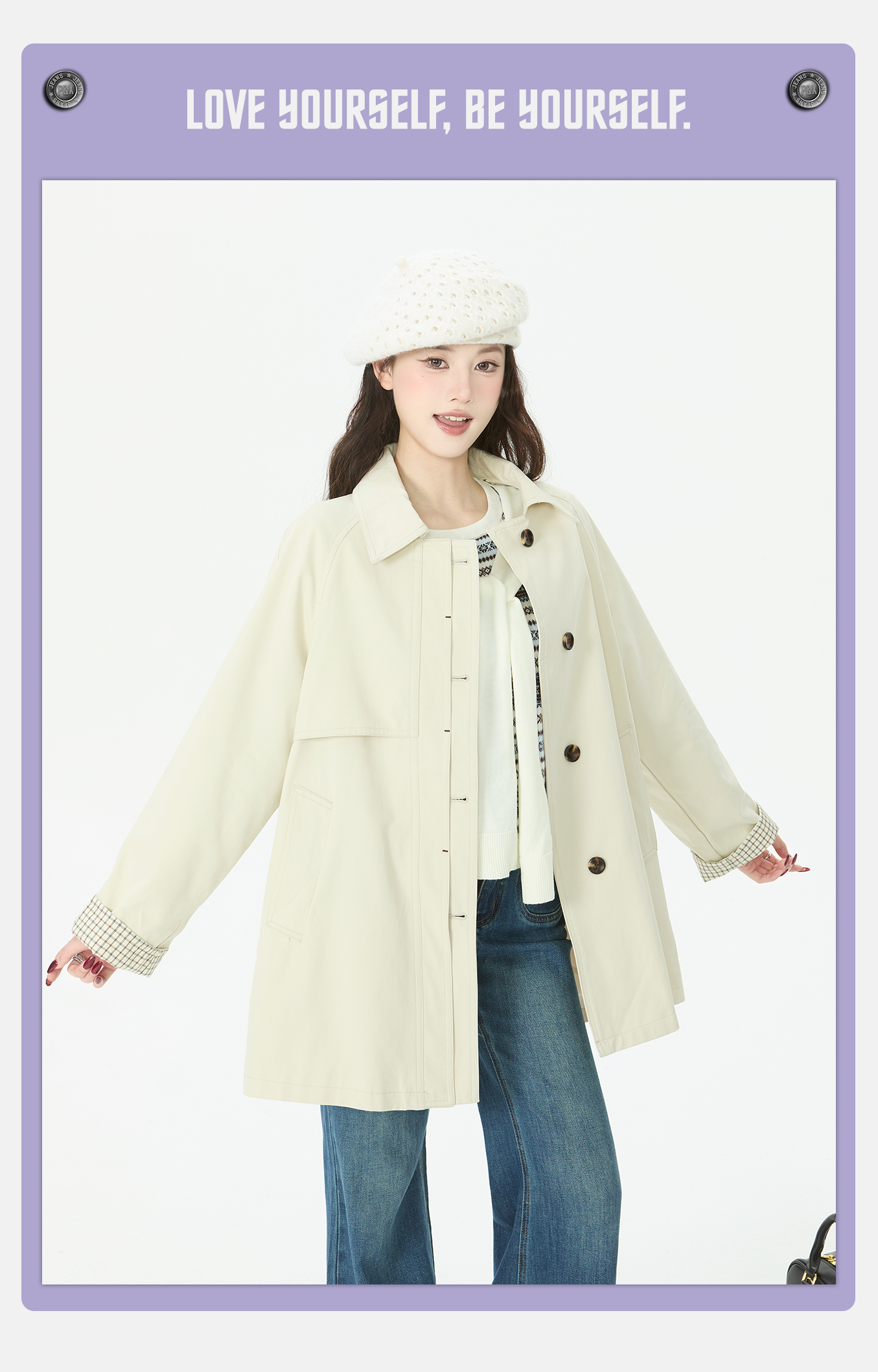 P&X设计师女装2026春季法式简约复古中长款风衣 826119081 杏色