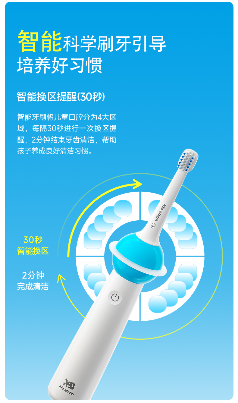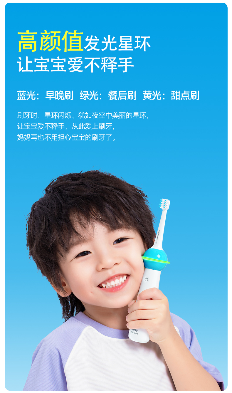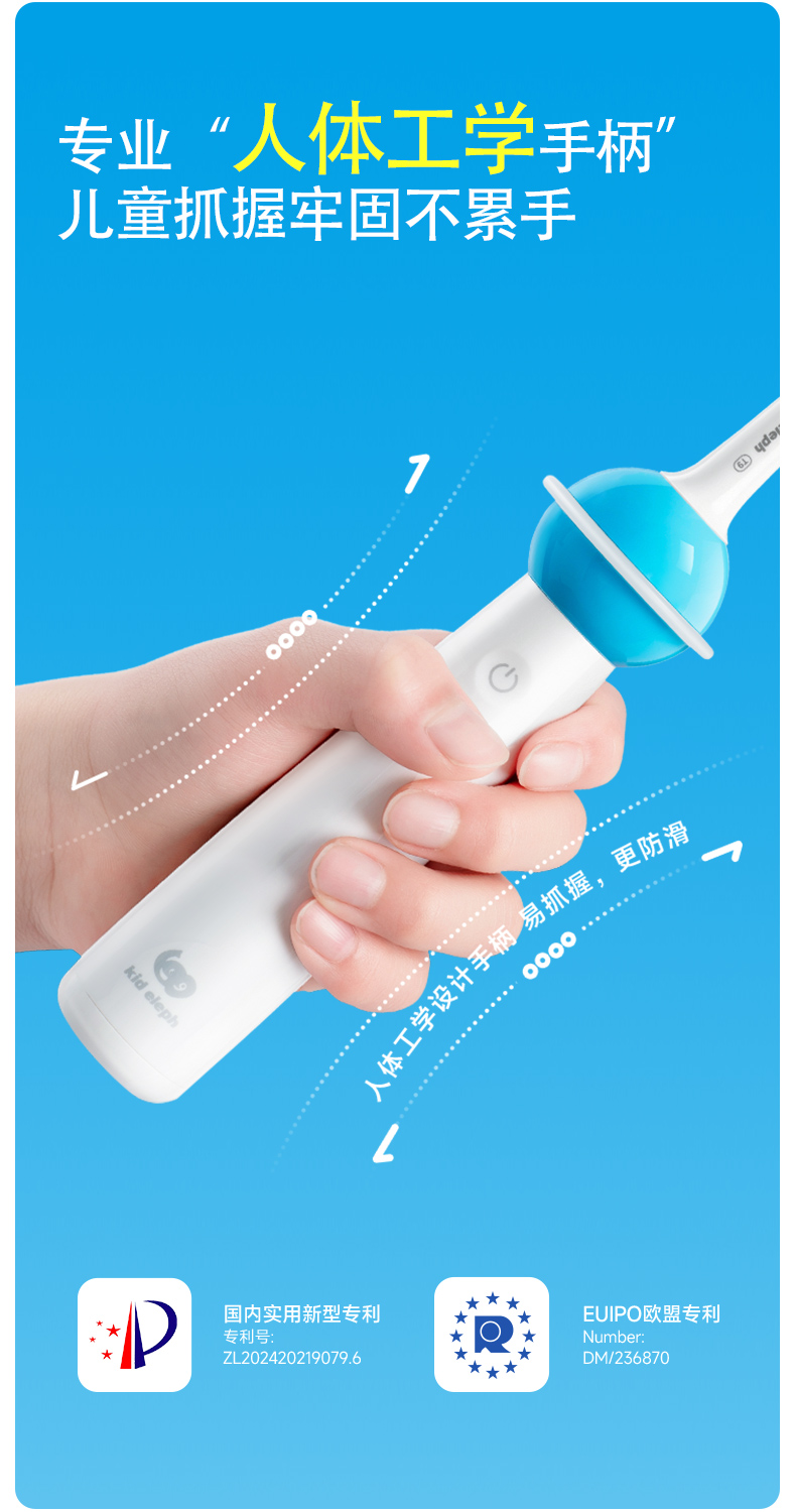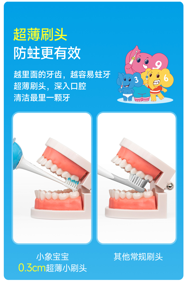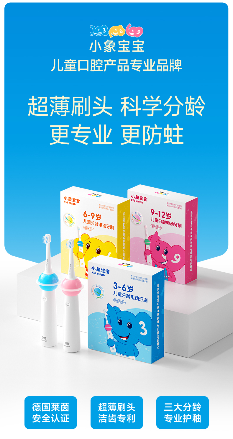 小象宝宝超薄刷头儿童电动牙刷3-6-9-12岁软毛声波震动不伤牙