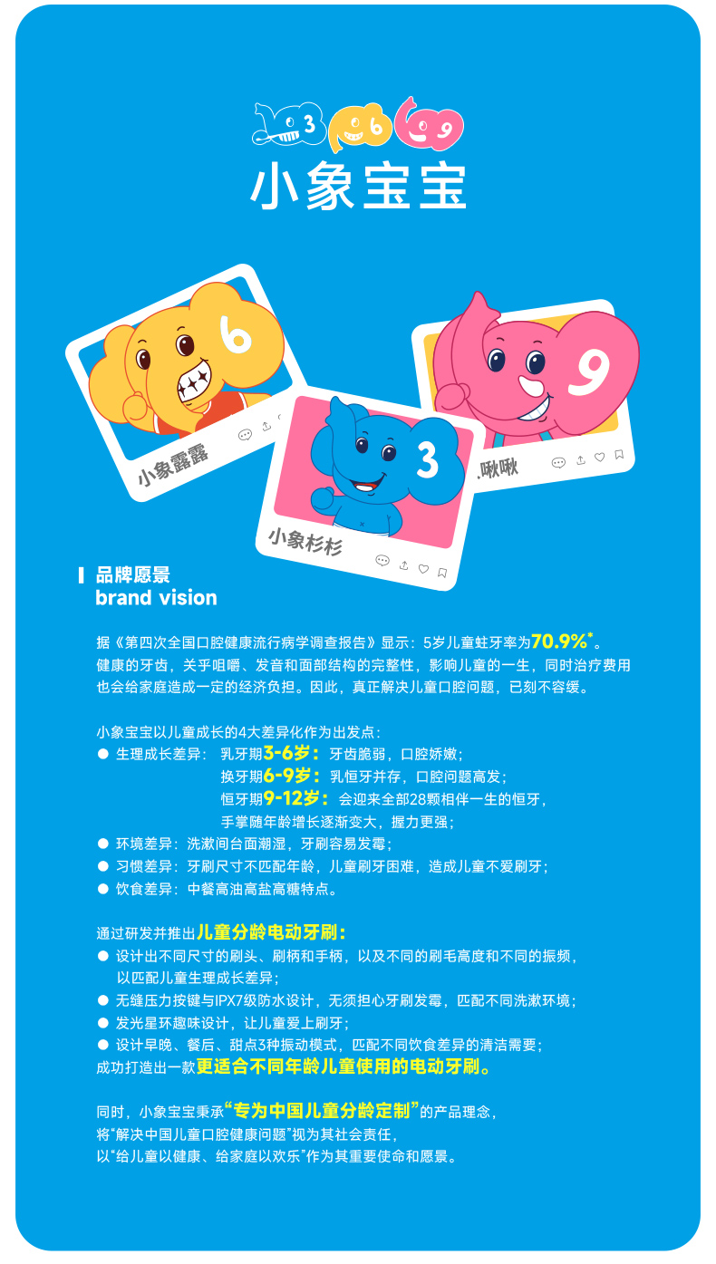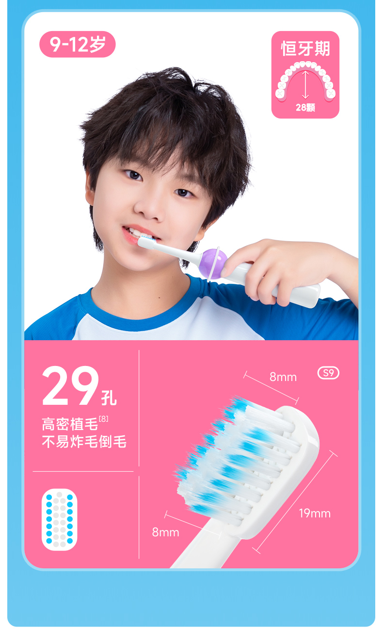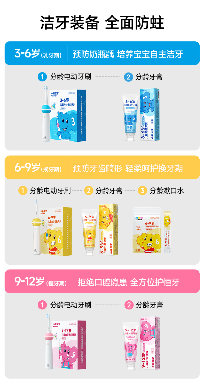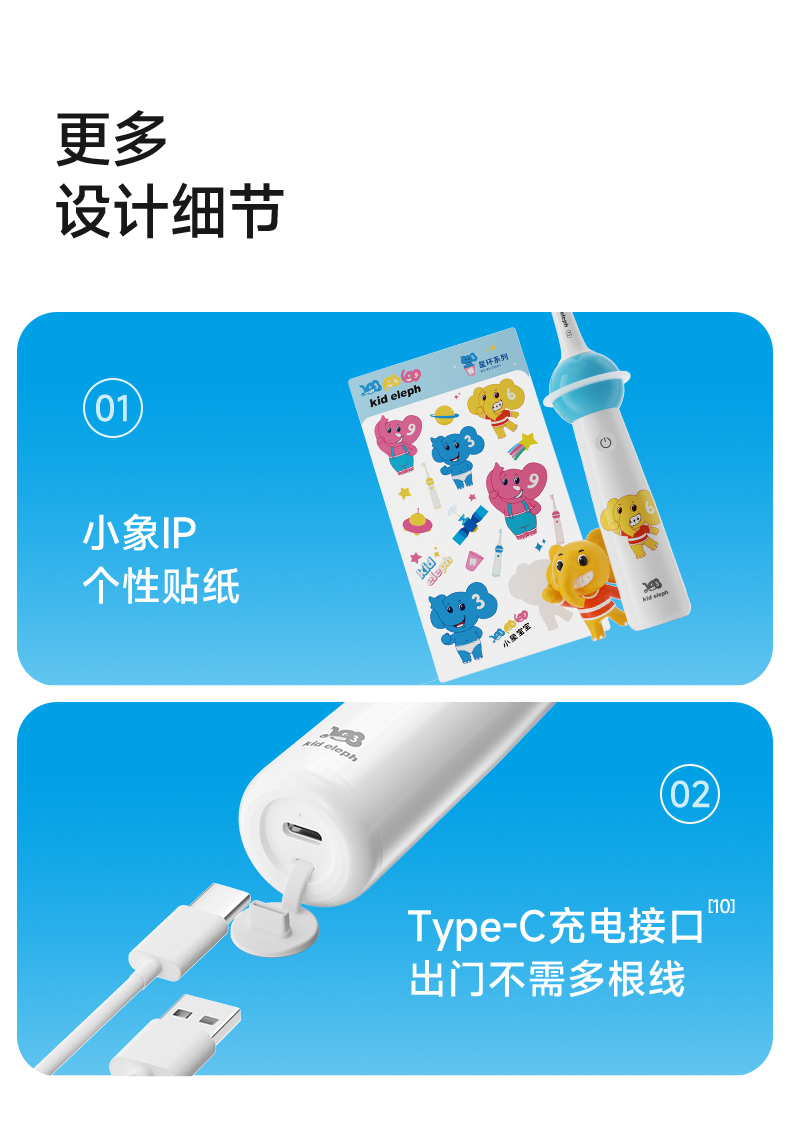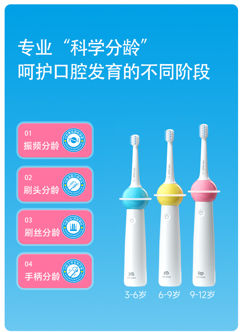小象宝宝超薄刷头儿童电动牙刷3-6-9-12岁软毛声波震动不伤牙