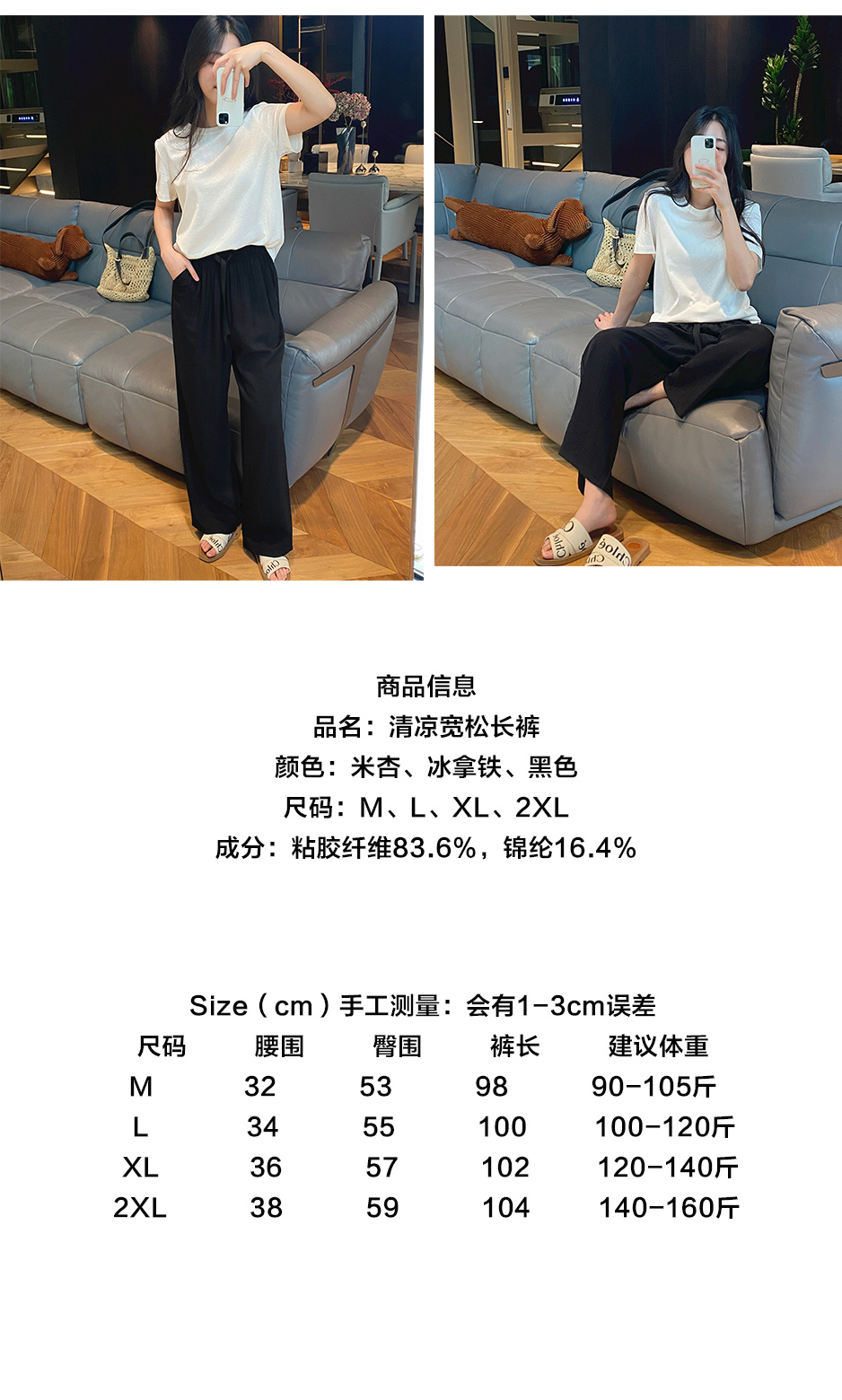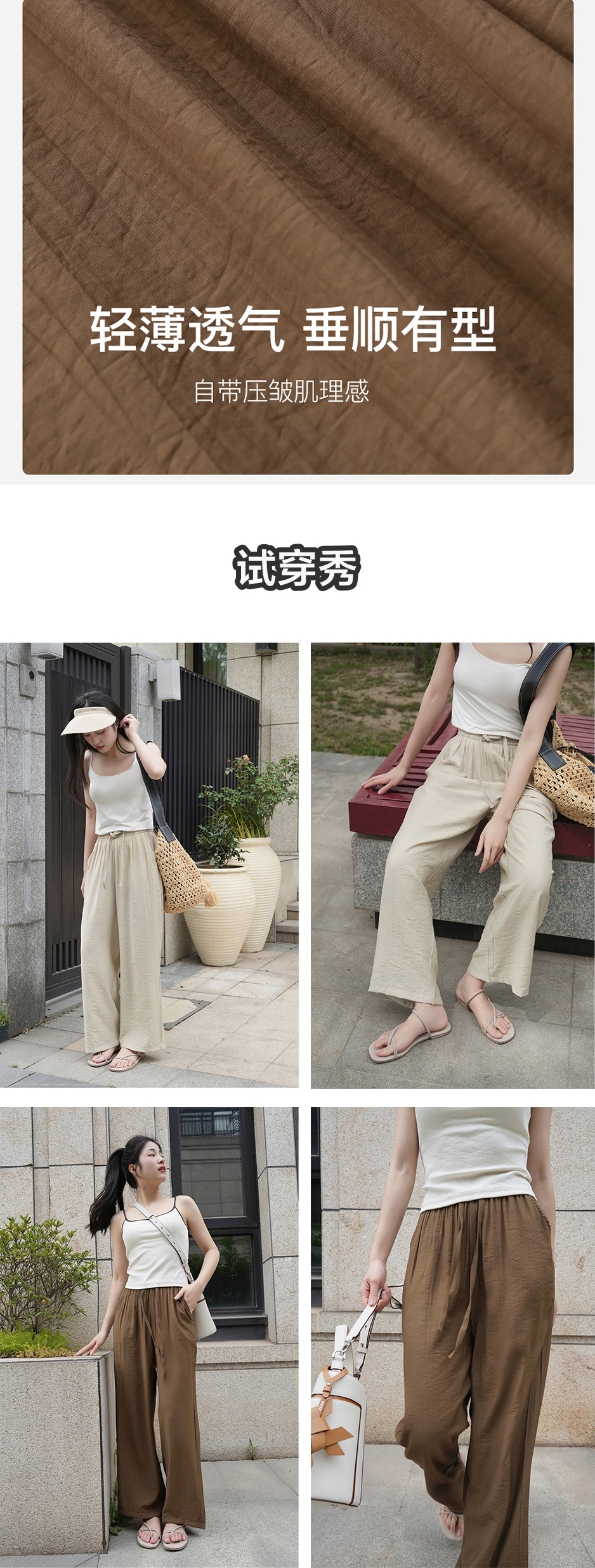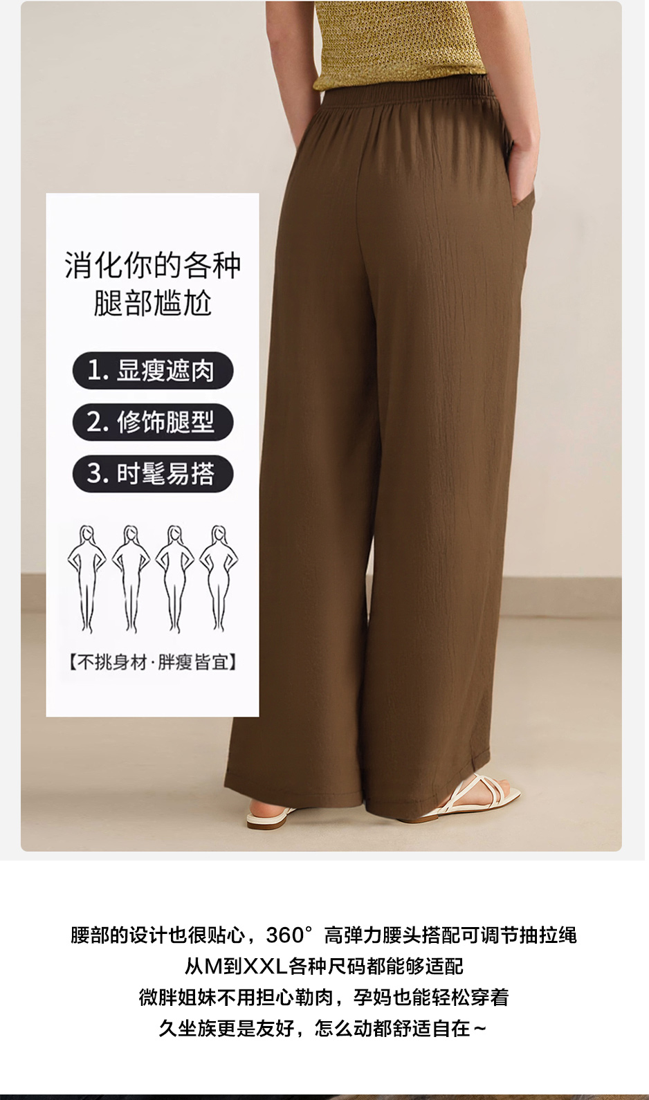 高腰阔腿版型 清凉宽松长裤 柔软舒适 垂顺有型 透气丝滑 轻薄不闷汗