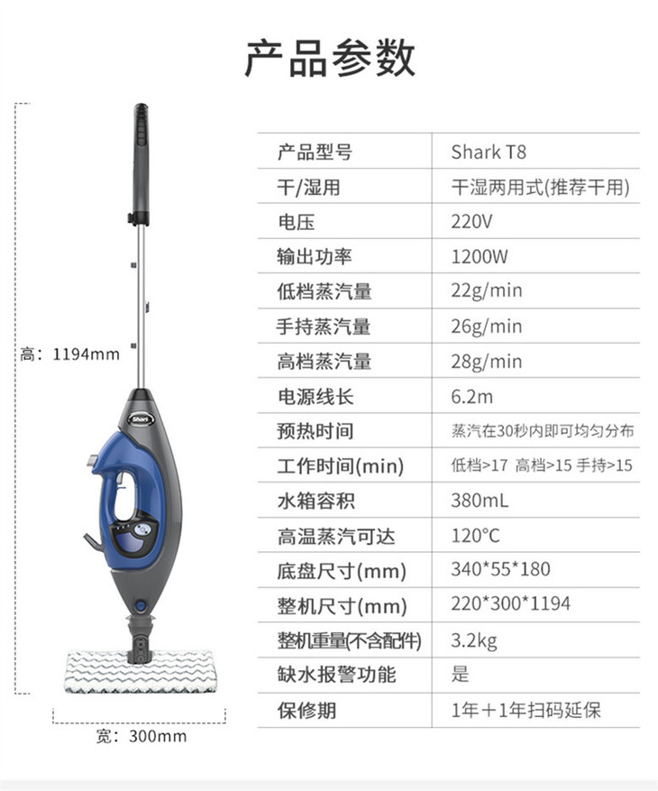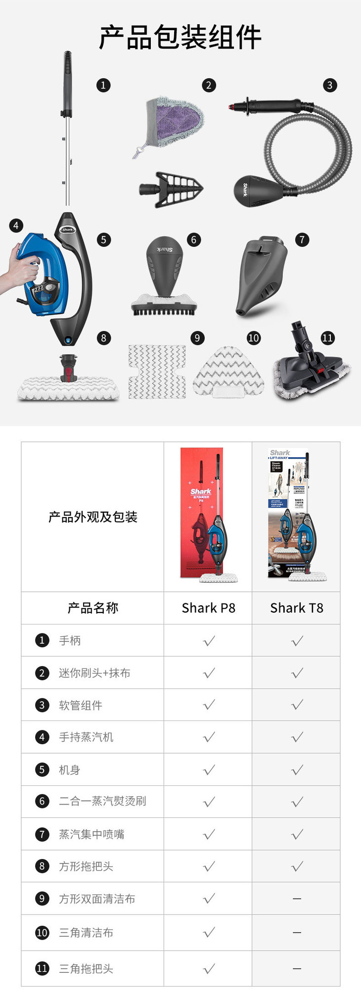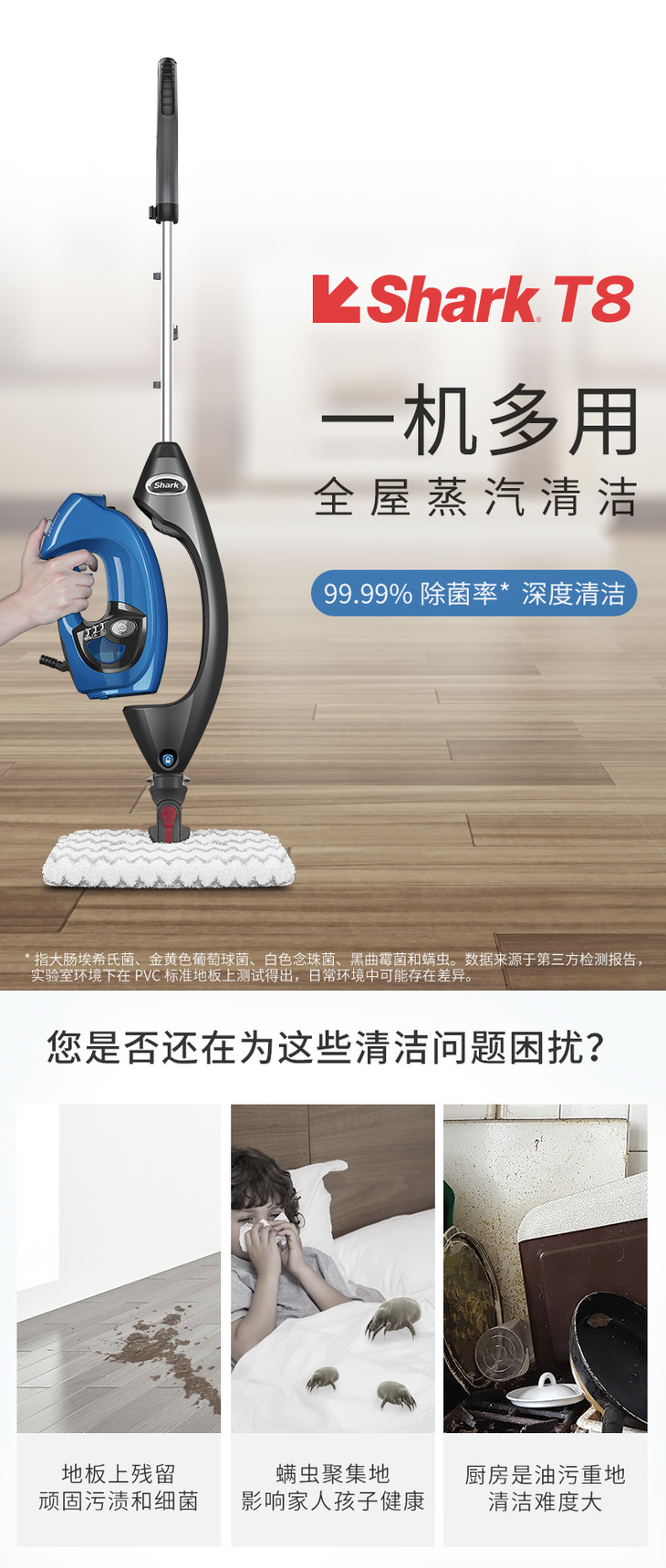 【Shark】美国Shark鲨客蒸汽拖把P8多功能多档位调节蒸汽喷射去污渍