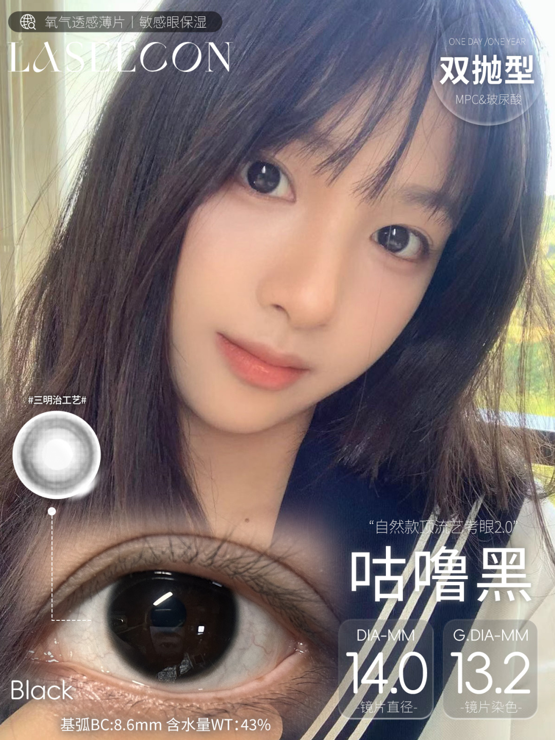 laseecon日抛 咕噜黑/氧分子 14.0mm 一盒10片 日抛无售后!!!黑/棕