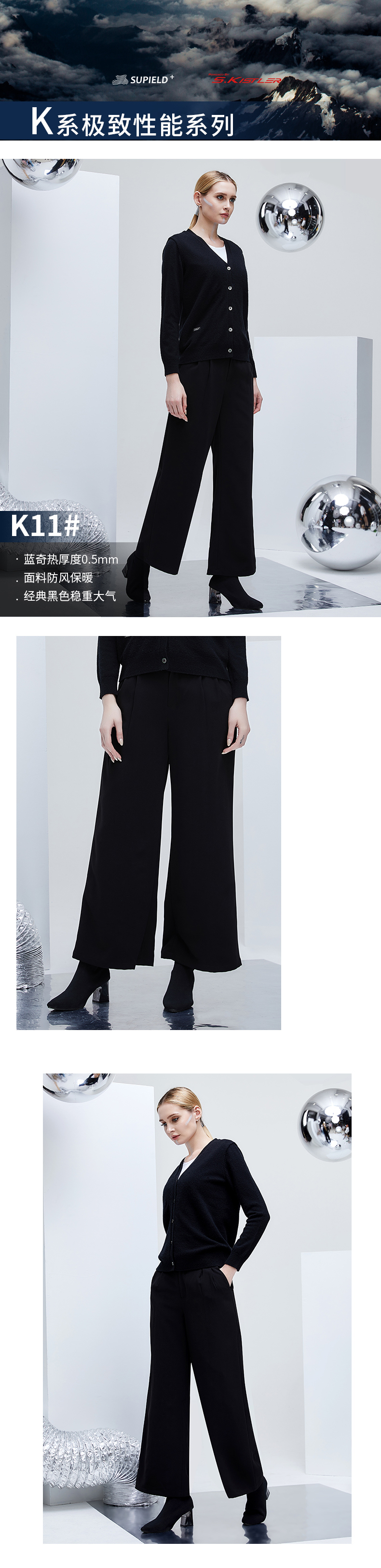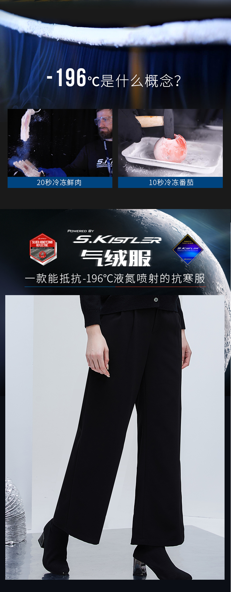 Supield素湃黑科技蓝奇热宇航气凝胶防寒阔腿裤女潮流显瘦黑裤子