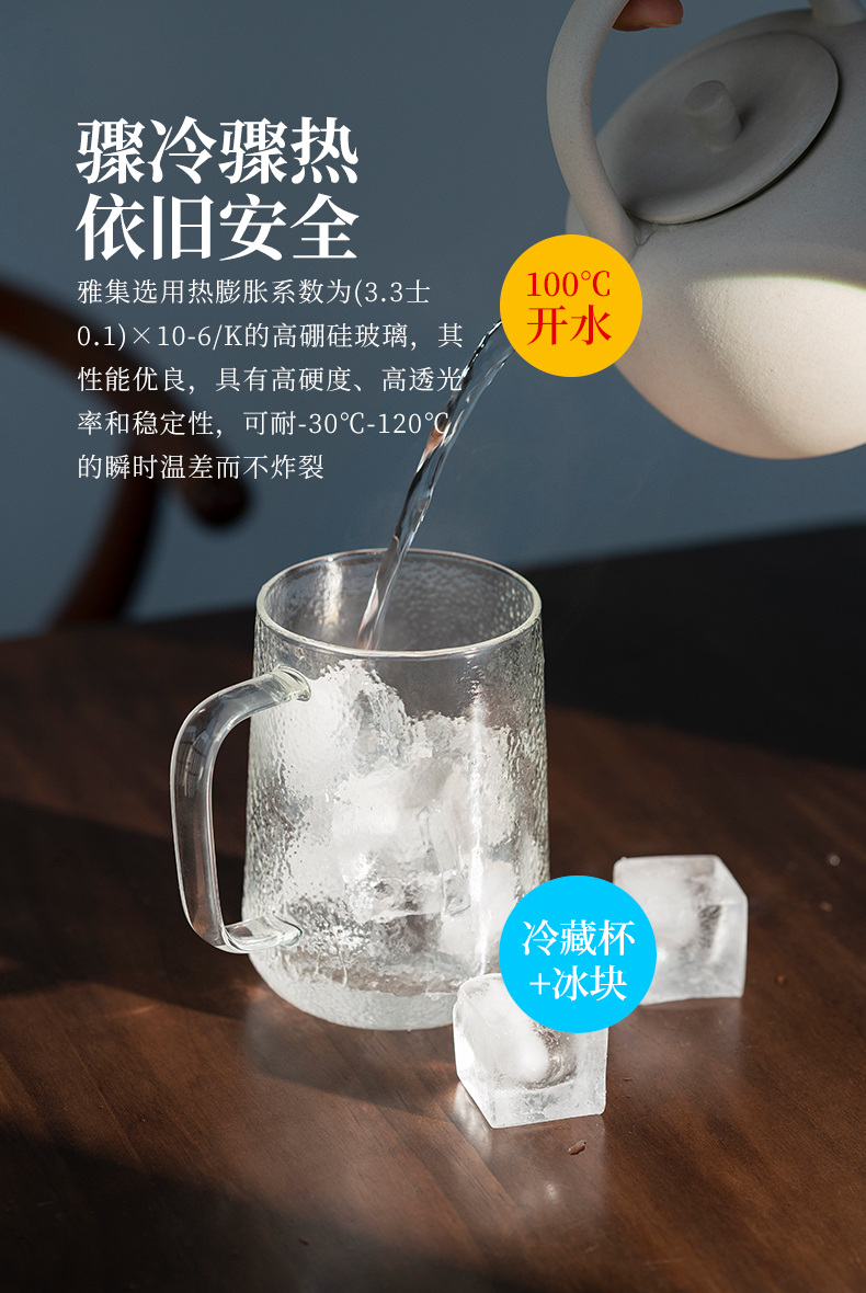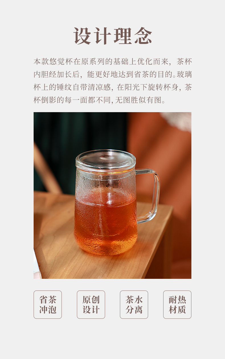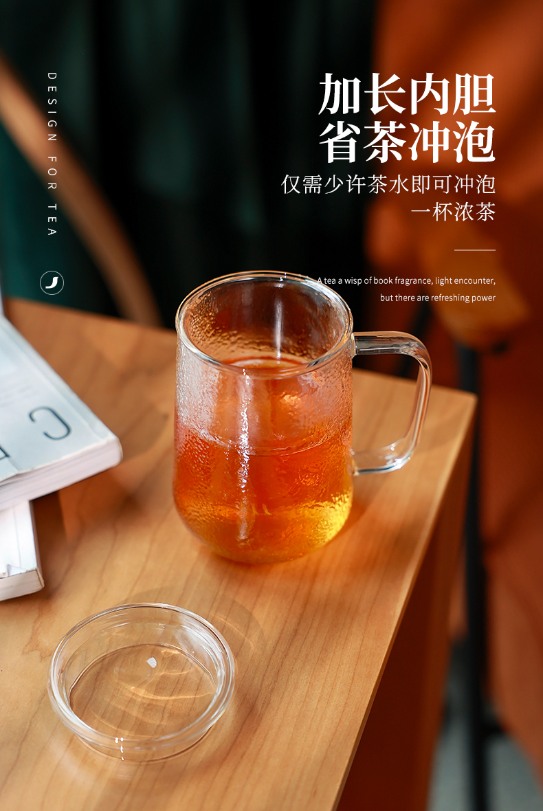 雅集 锤纹悠觉杯 耐热玻璃加厚过滤泡茶杯子大容量男女家用办公茶杯500ml