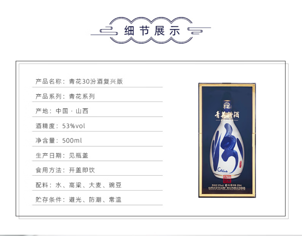 【海上青花·体验中心】-青花汾酒·30复兴版(53度)