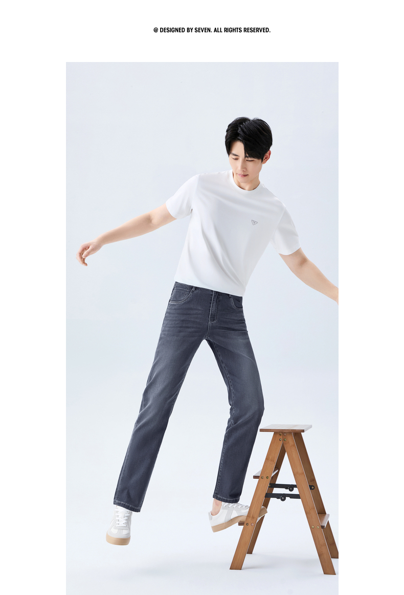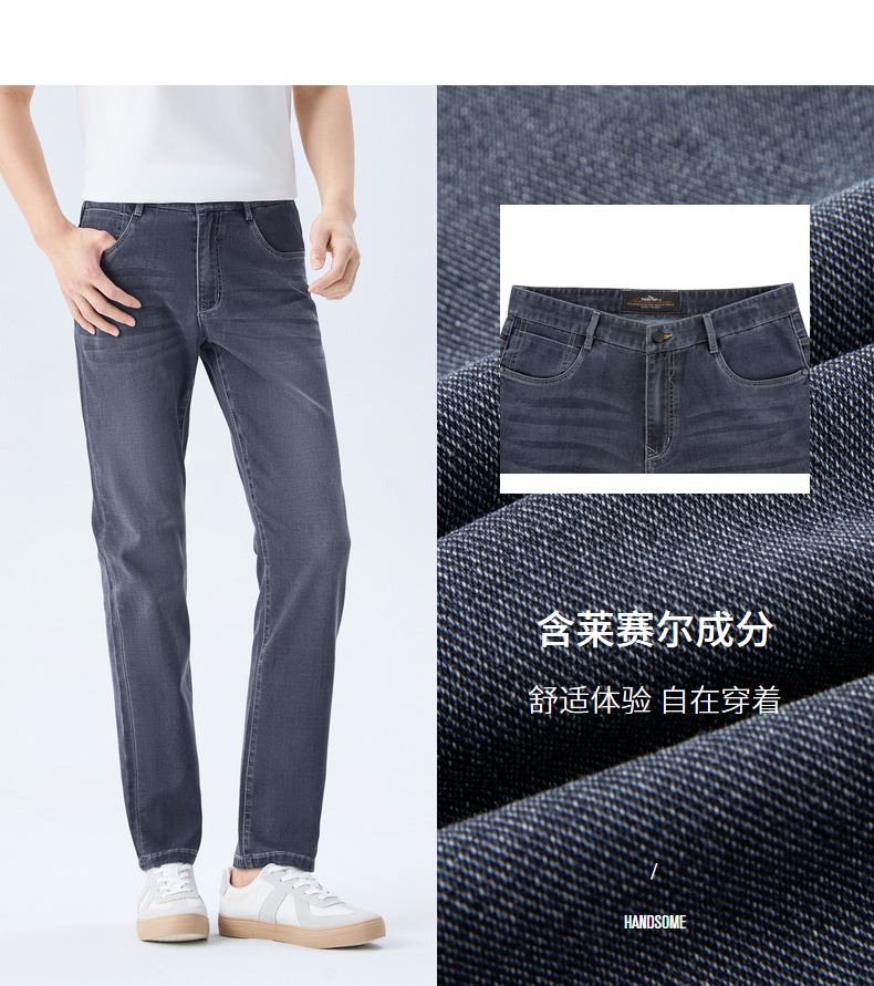 【含莱赛尔】柒牌男装2026春季中弹水洗耐磨亲肤商务休闲牛仔长裤130H70820