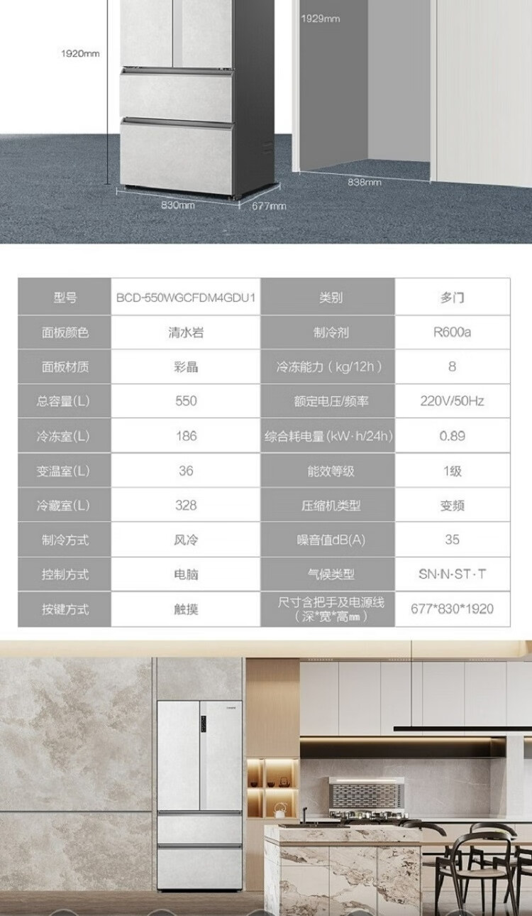 卡萨帝(Casarte)零距离自由嵌入式冰箱BCD-550WGCFDM4GDU1