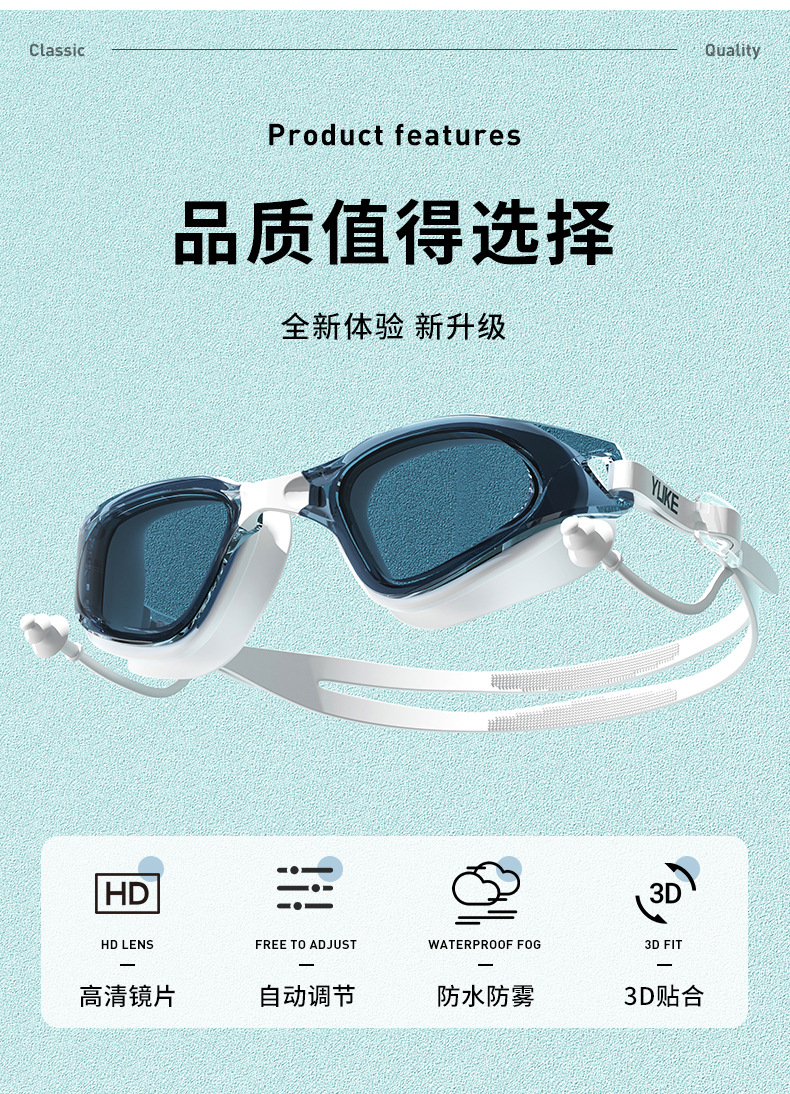 【广角镜框!高清防雾泳镜】泳镜高清防雾防水大框游泳眼镜男女泳帽泳镜套装潜水游泳专用装备。ry