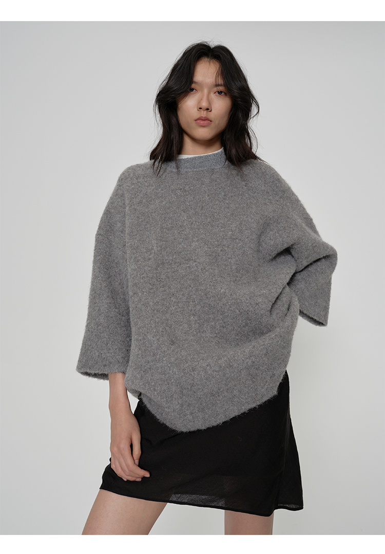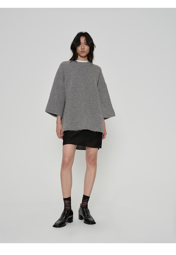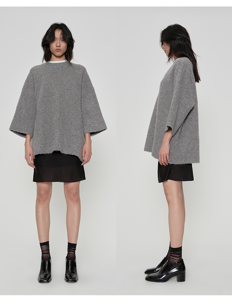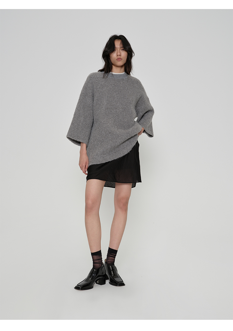 HIDEMI 微褶醋酸立体堆叠领不对称上衣