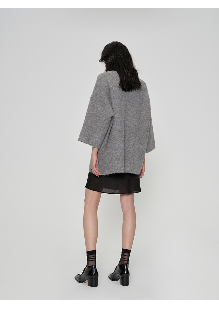 HIDEMI日本加厚粗花呢口袋设计感衬衫式羊毛大衣