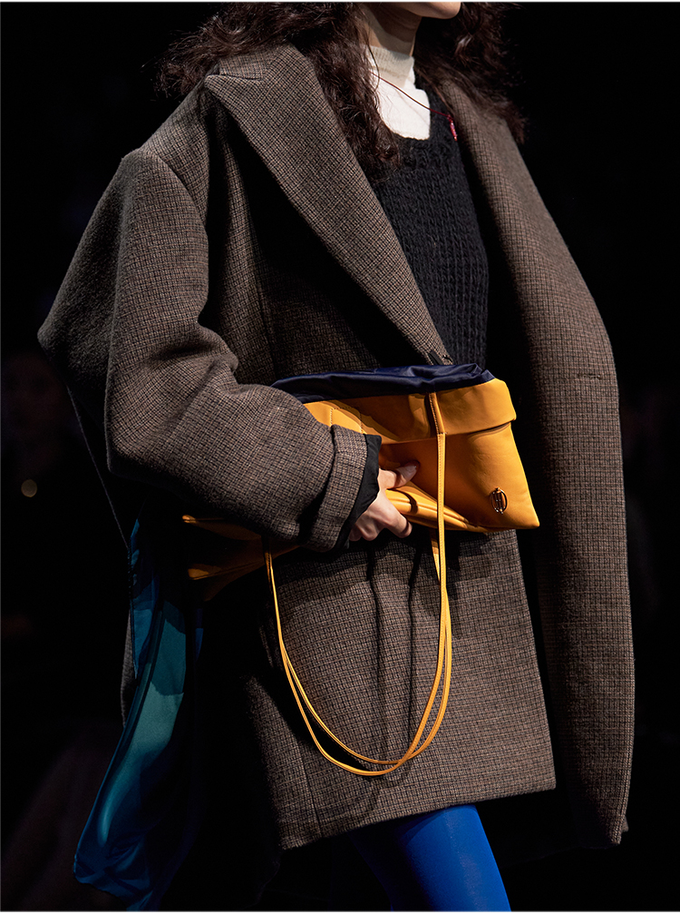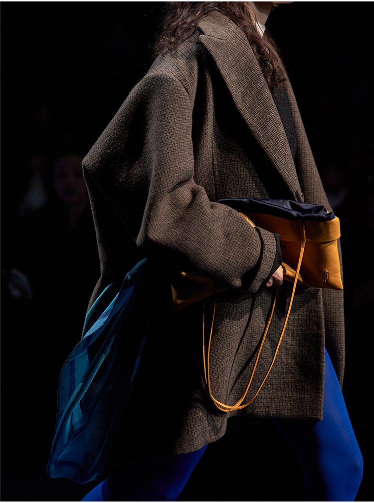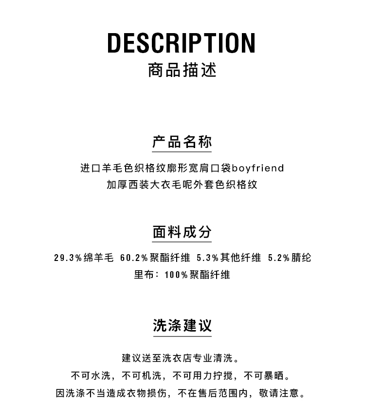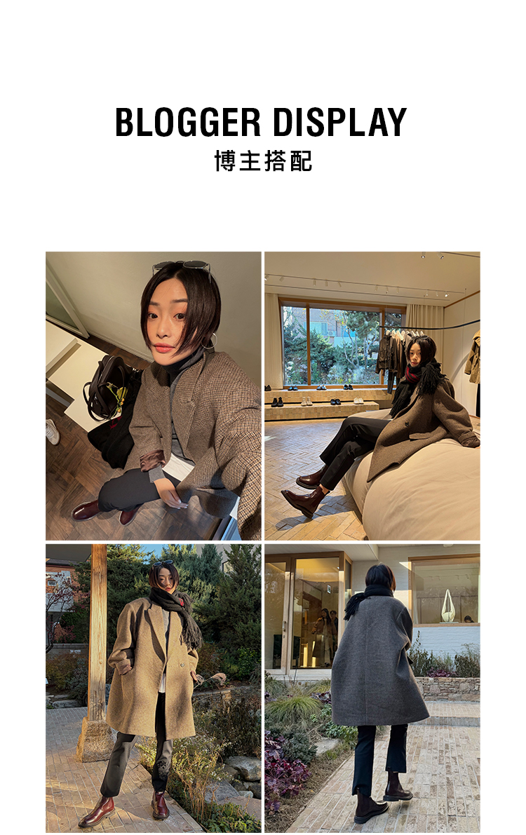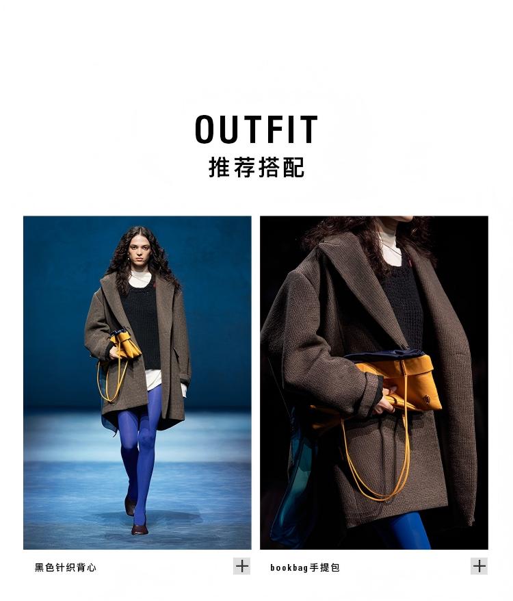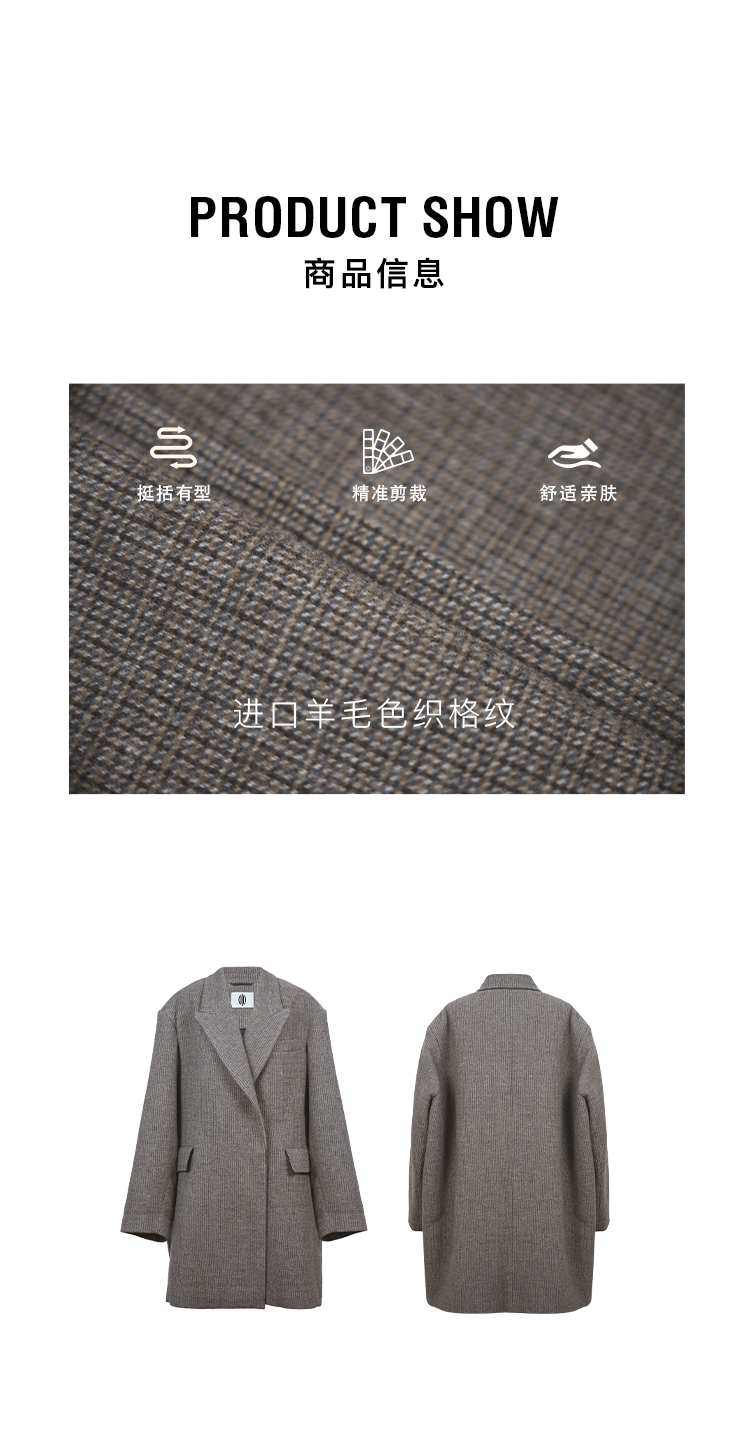 HIDEMI 大秀款进口羊毛色织格纹廓形宽肩口袋加厚西装大衣毛呢外套