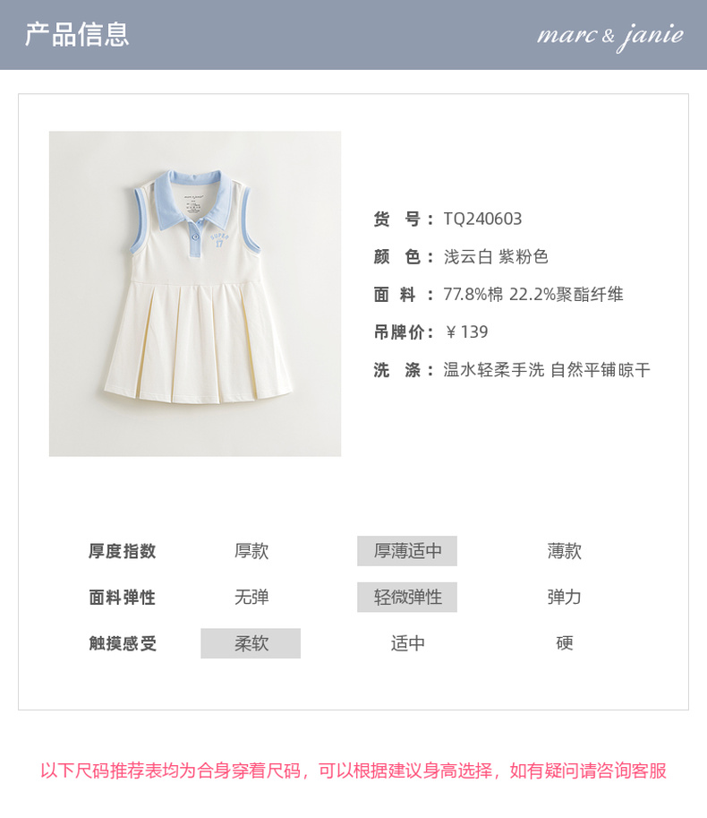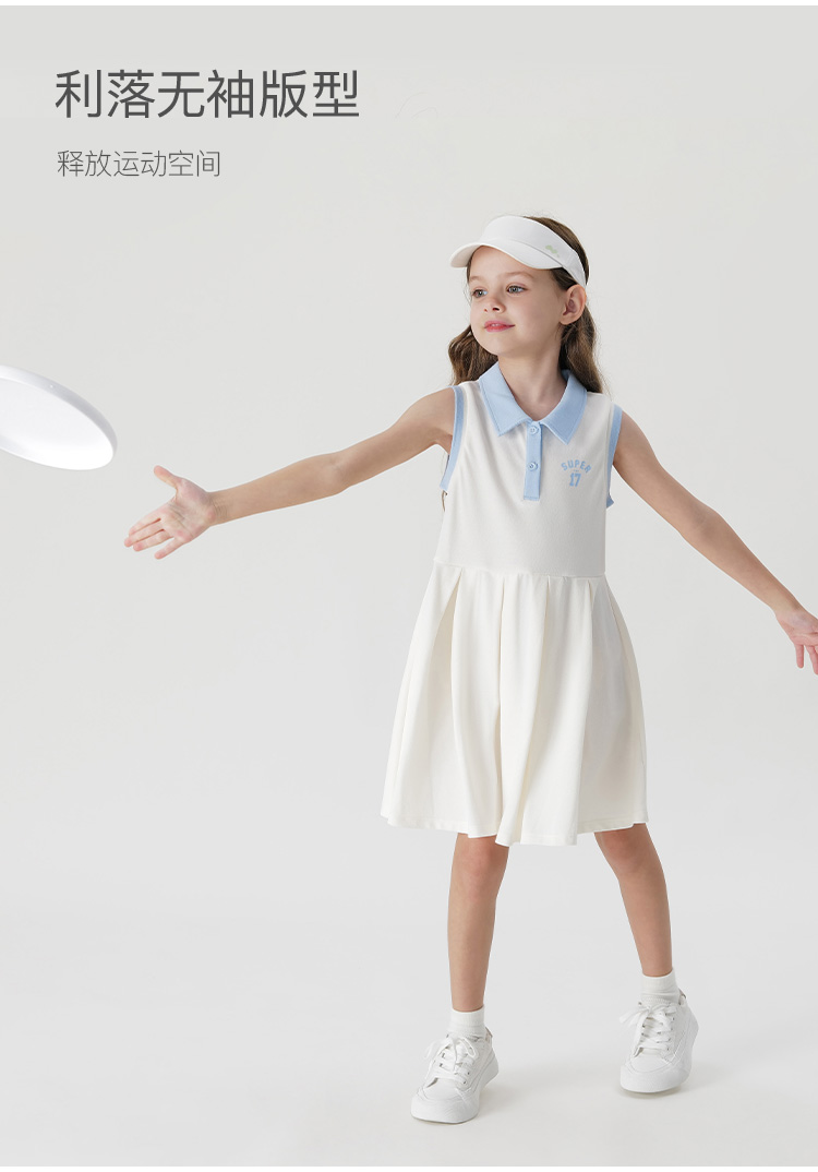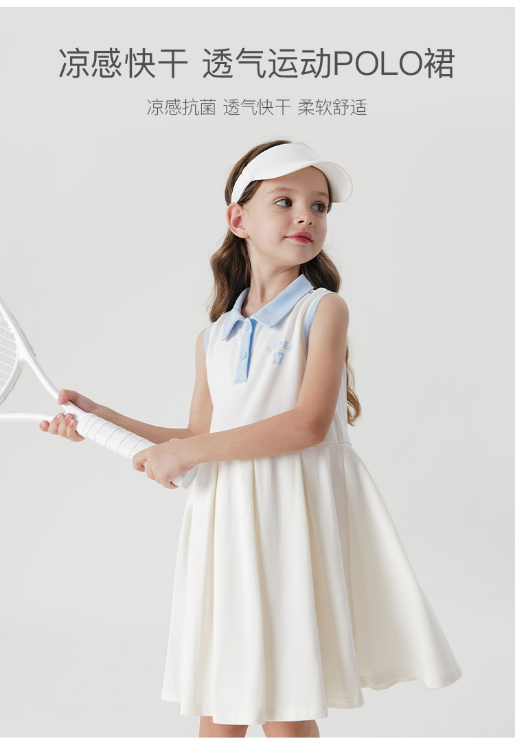 【凉感快干】马克珍妮女童印花无袖透气运动polo裙夏装新款240603