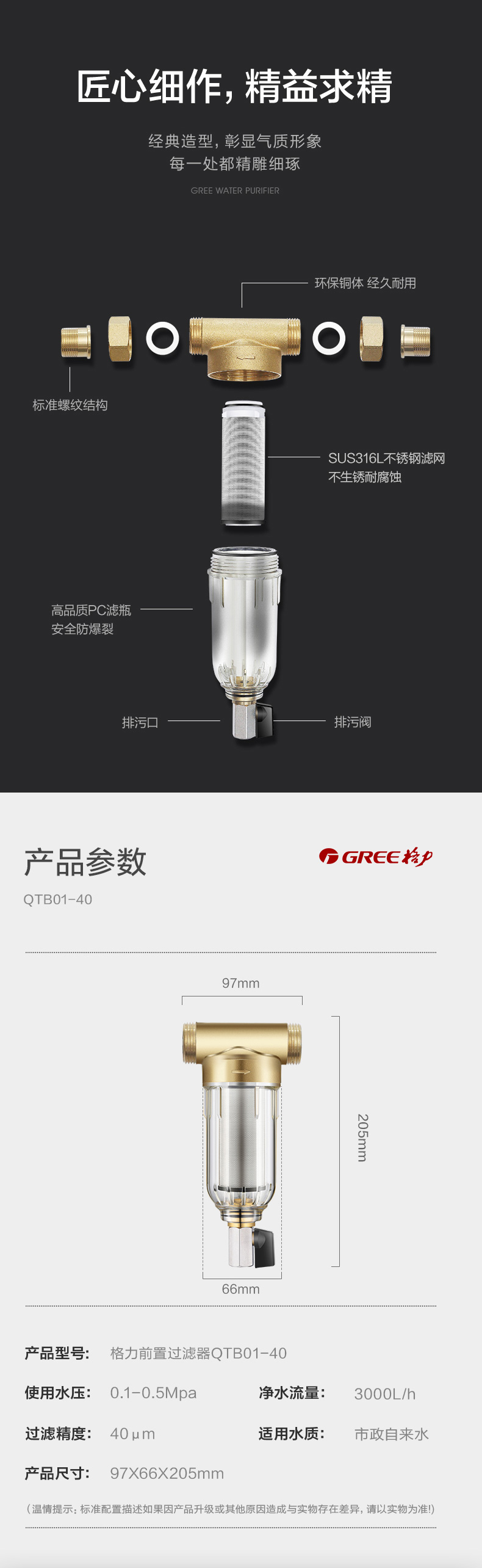 格力前置过滤器 大流量 全屋净水 QTB01-40