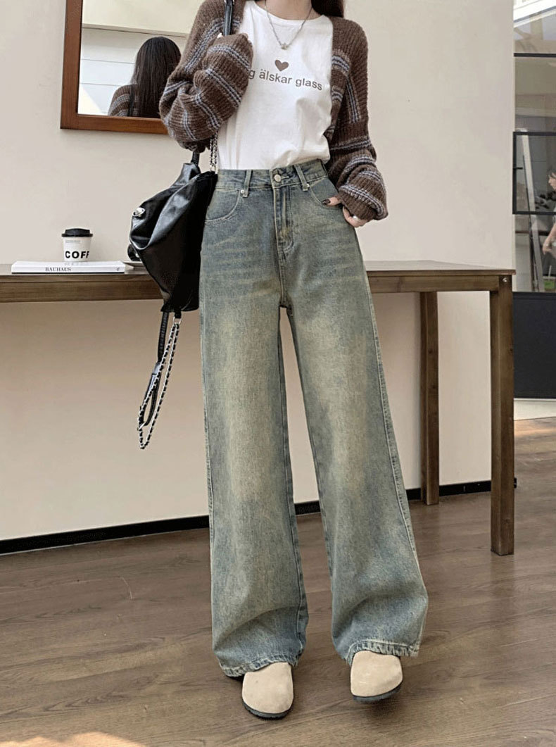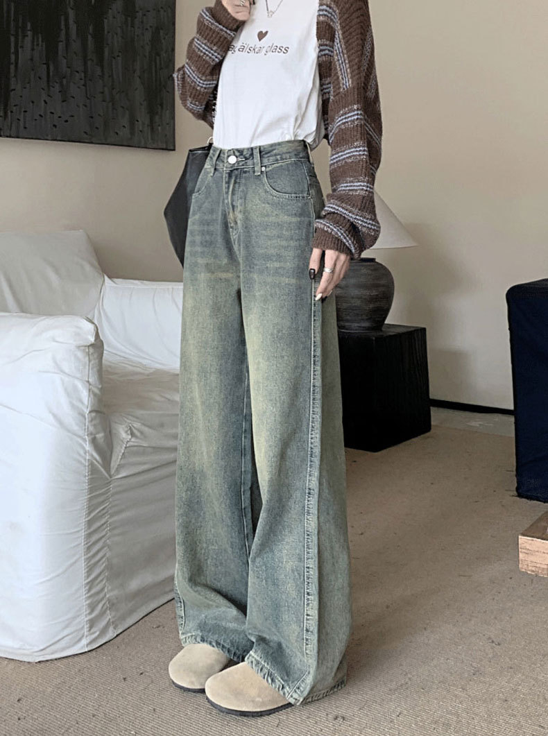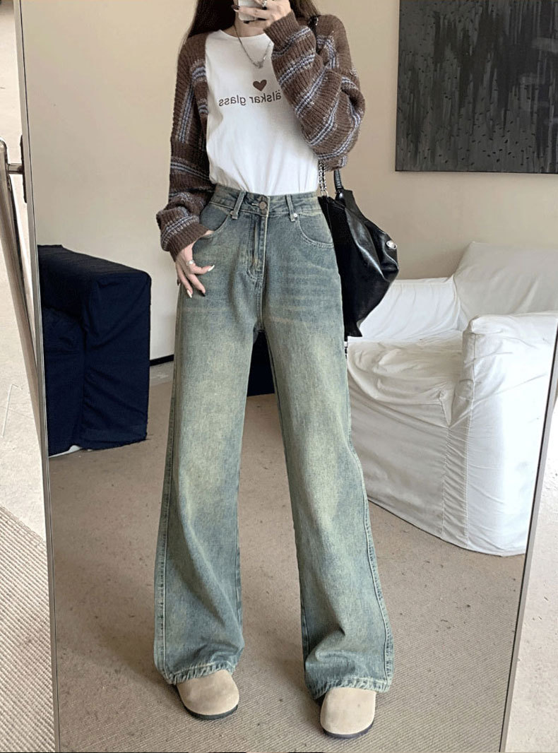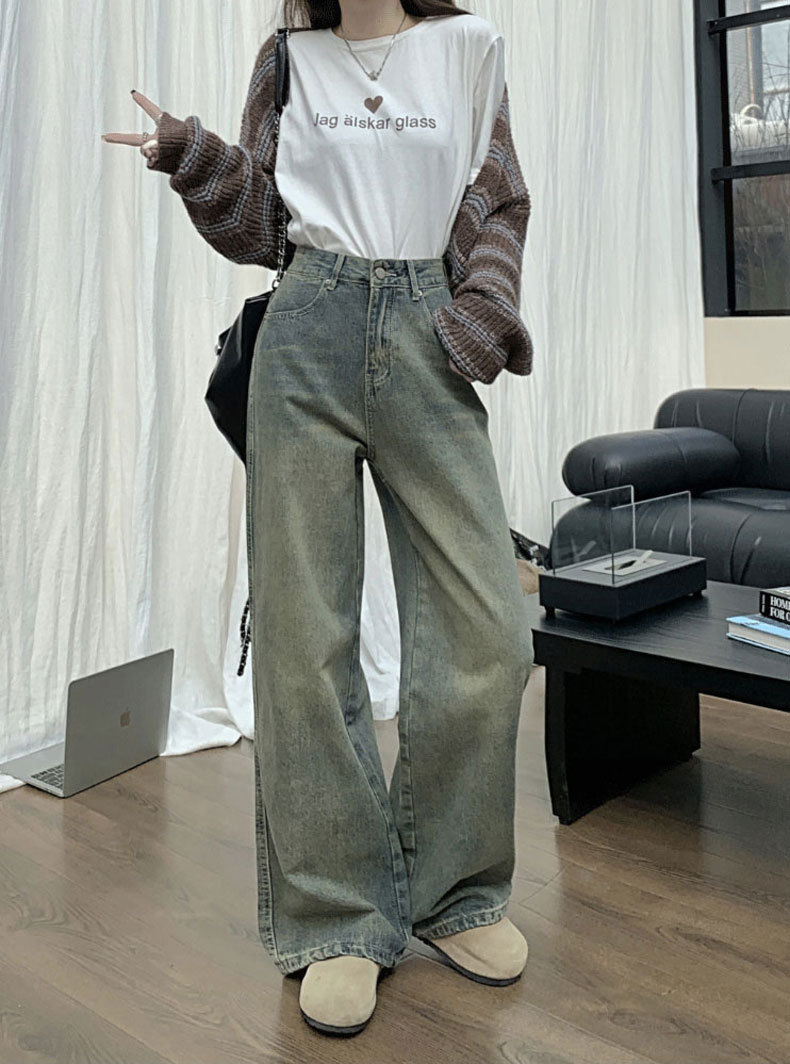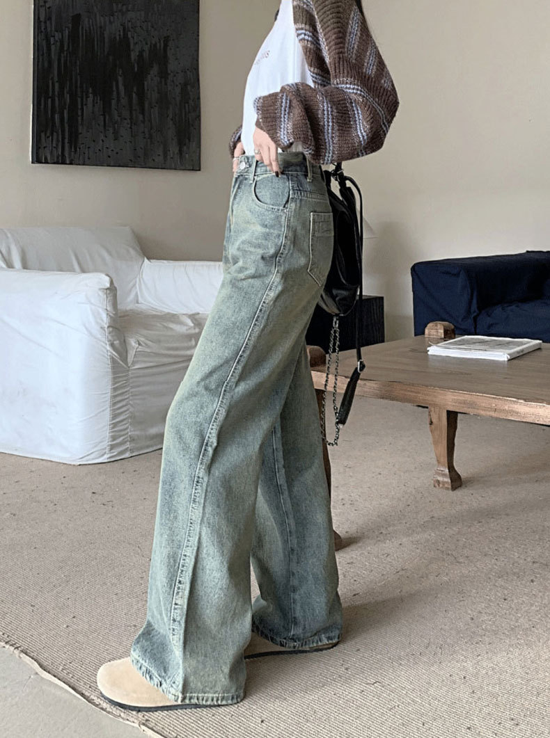【GZ】无忧购法式复古怀旧宽松大码高腰直筒阔腿裤613(尺码偏大,卡码拍小)(截单后3-5天发货)