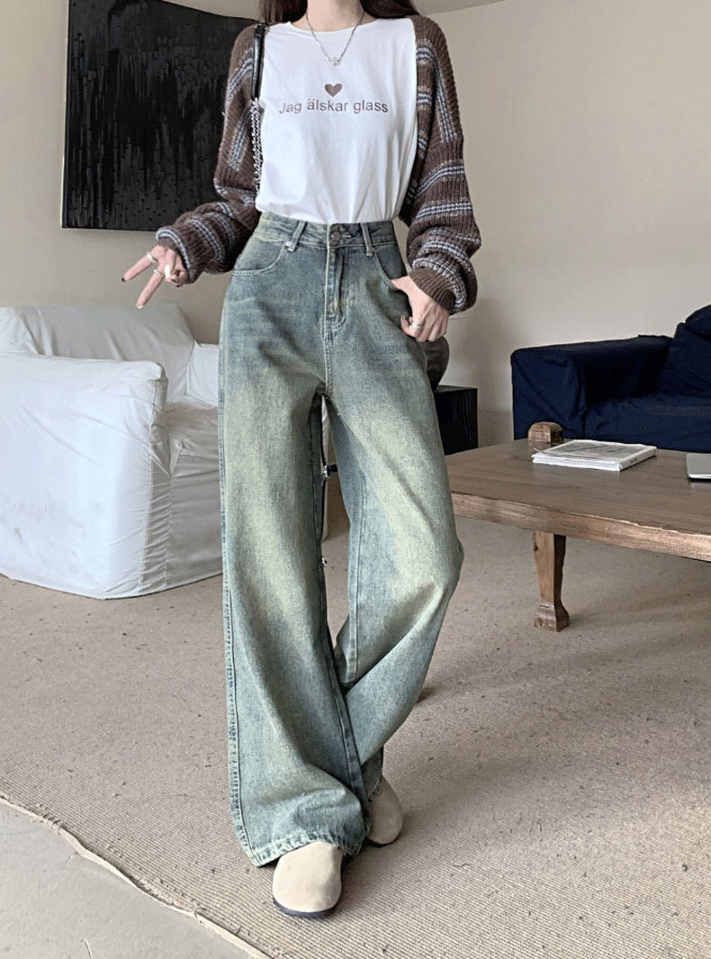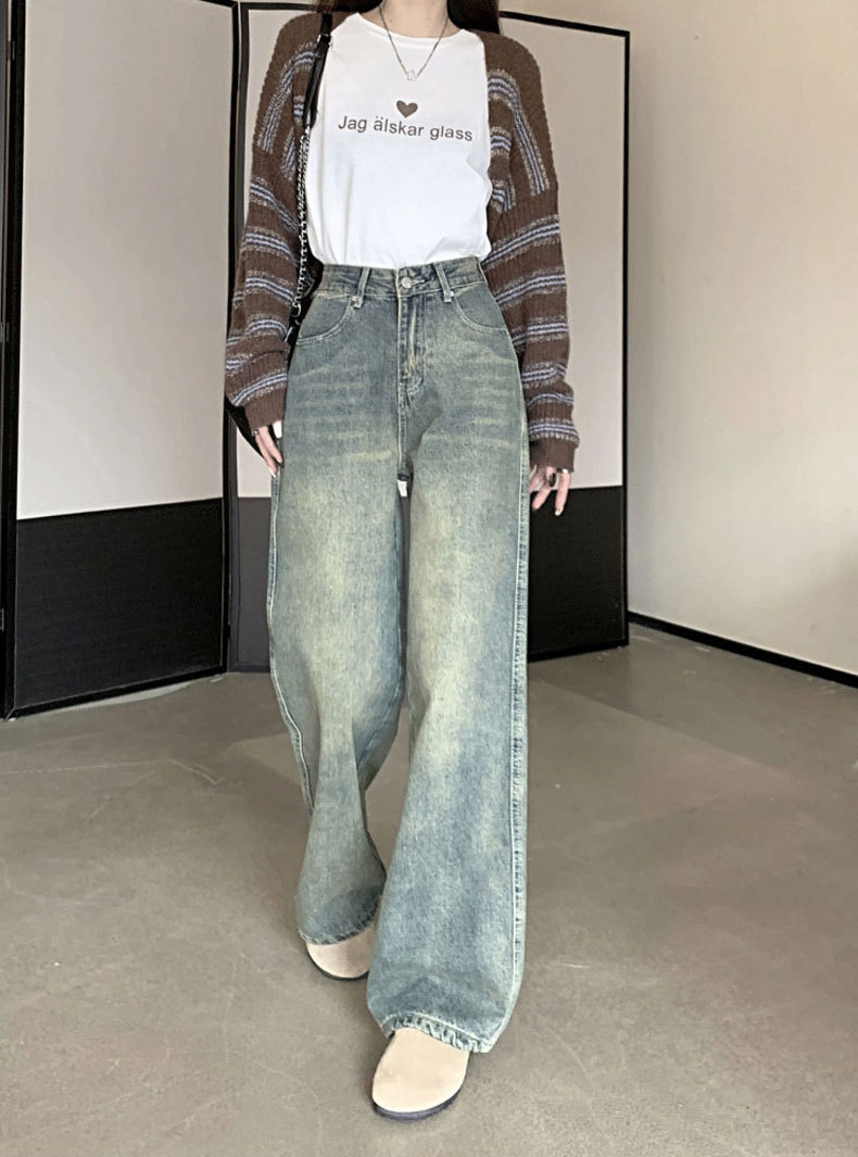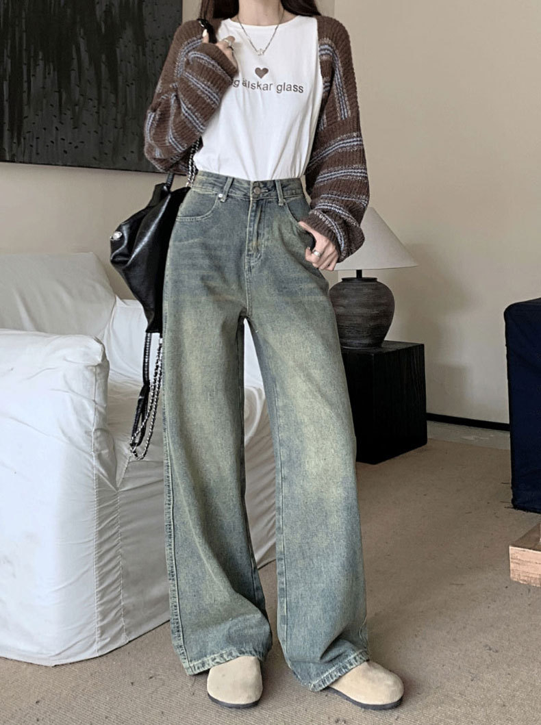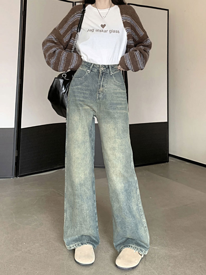 【GZ】无忧购法式复古怀旧宽松大码高腰直筒阔腿裤613(尺码偏大,卡码拍小)(截单后3-5天发货)