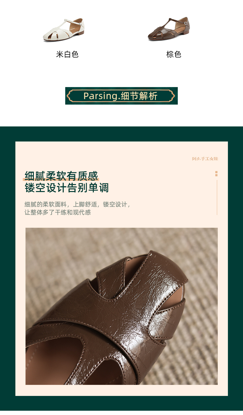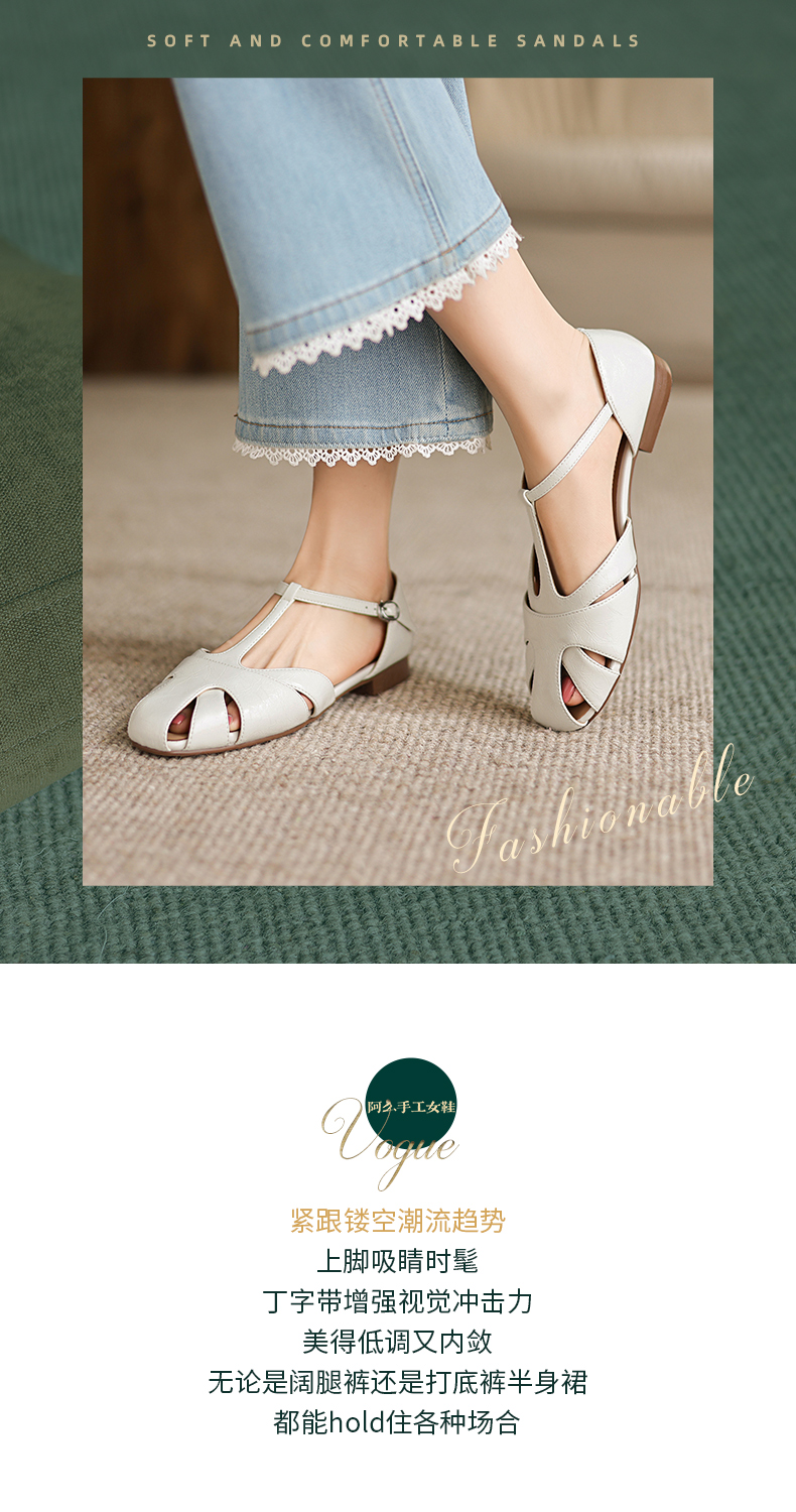 阿么手工女鞋包舒适软底罗马鞋百搭夏季新款透气复古时装凉鞋2CM
