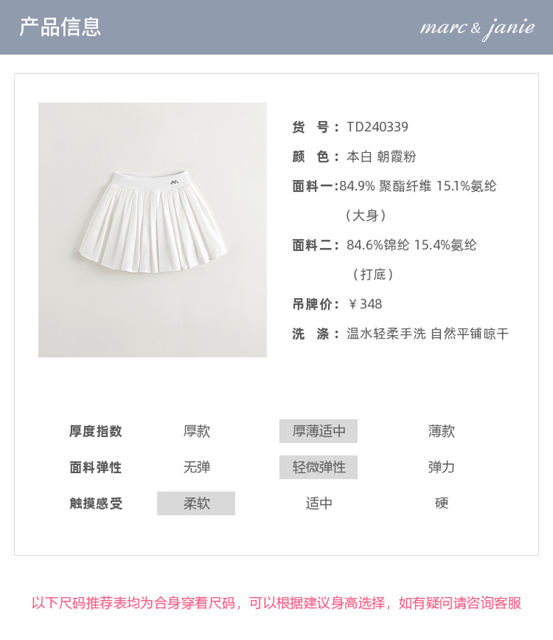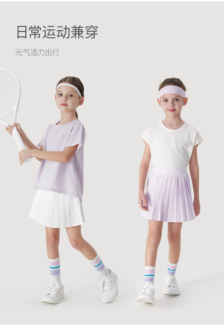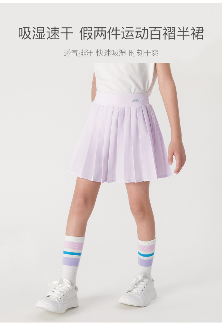 【吸湿速干】马克珍妮2024年夏装女童假两件运动百褶半裙240339