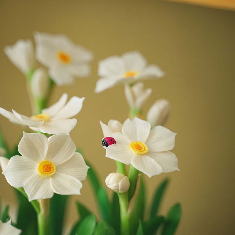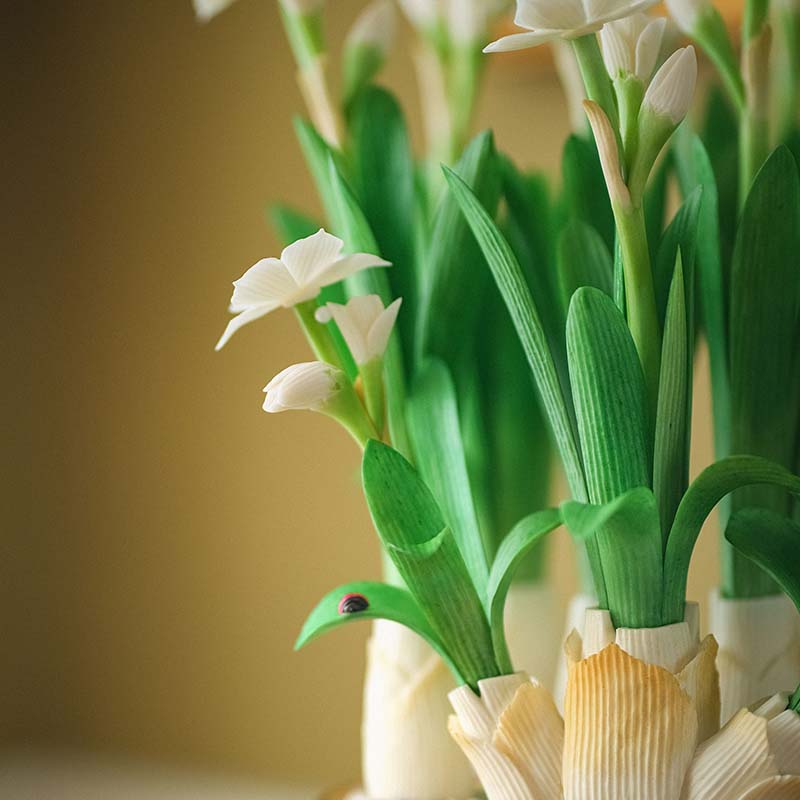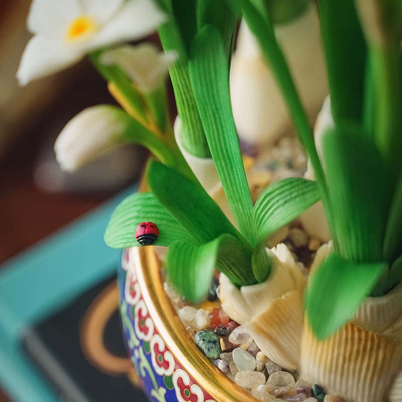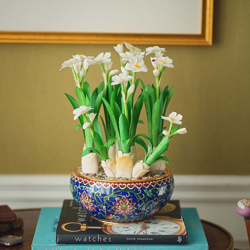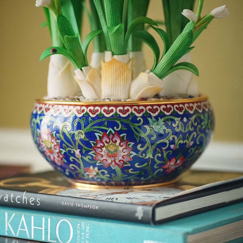 20世纪中国创汇时期出品宝相花纹景泰蓝盆装饰「素洁水仙」珍宝像生盆景