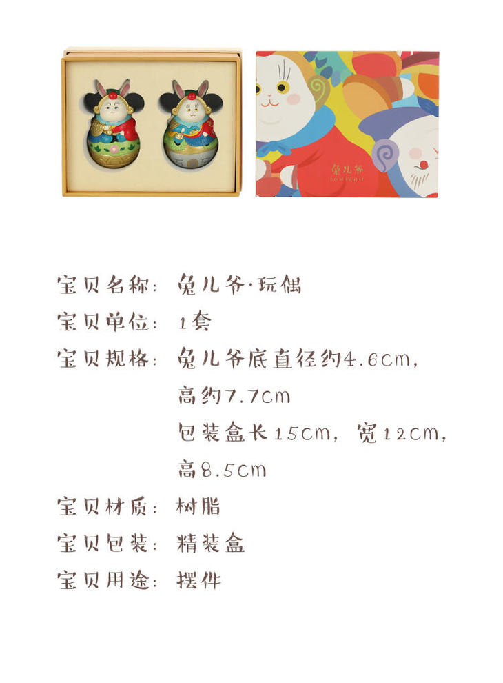 【故宫伴手礼】平安守护神-国风礼物中式传统兔爷摆件(一对礼盒装) 商品图2