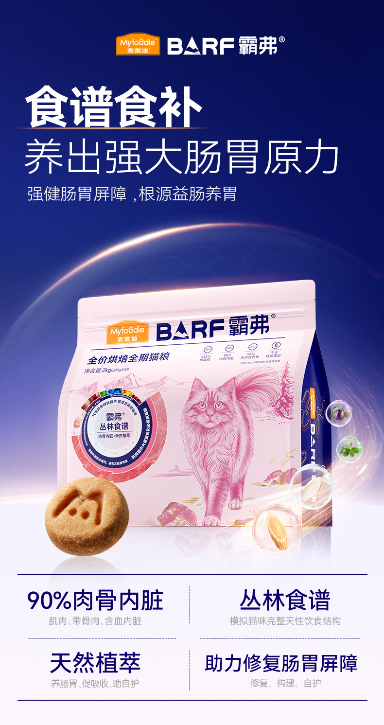 麦富迪barf霸弗全价低温烘焙猫粮 生骨肉 营养低敏 成猫幼猫粮2kg