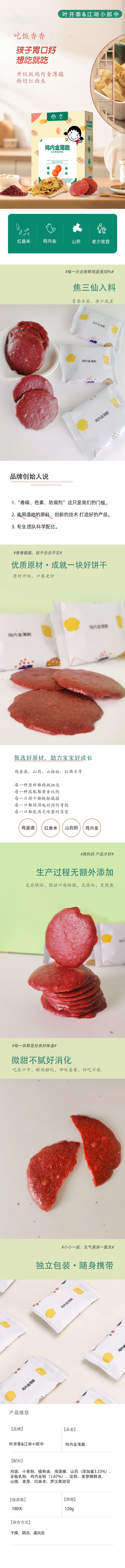 叶开泰鸡内金薄脆饼干 宝宝吃饭香 新包装 120g