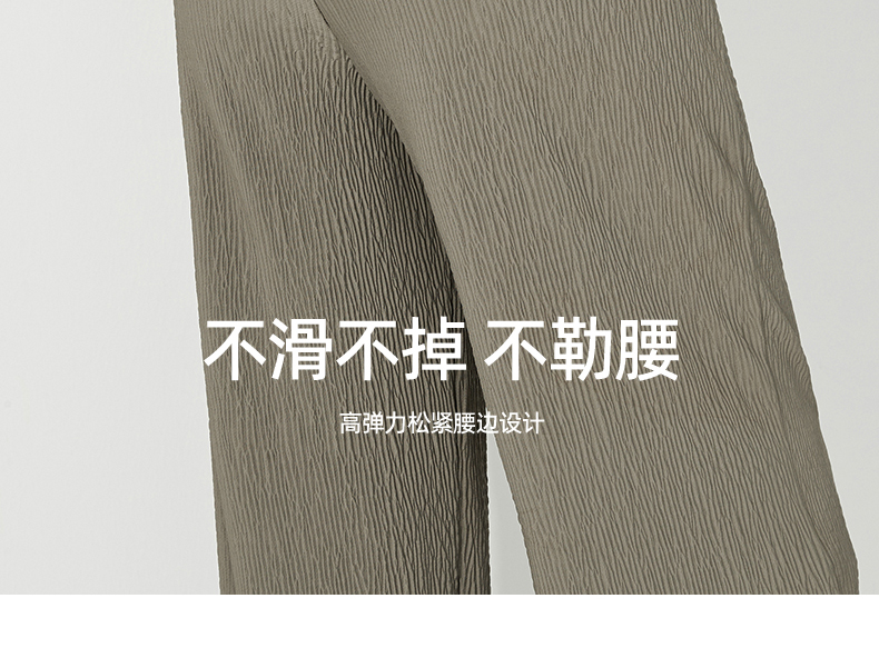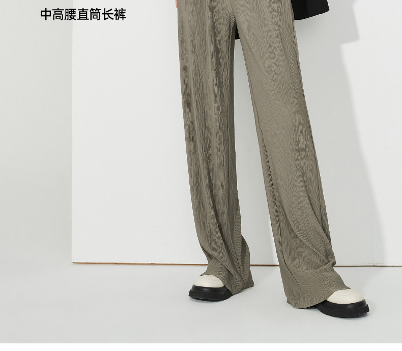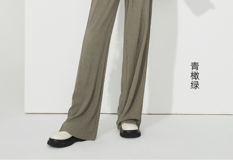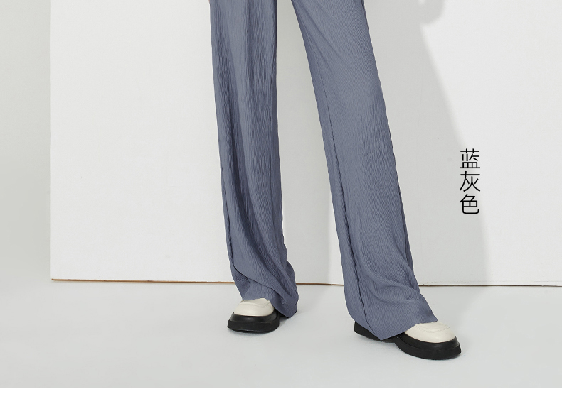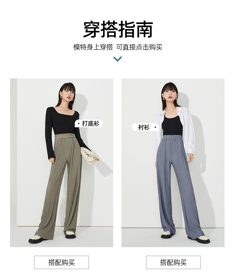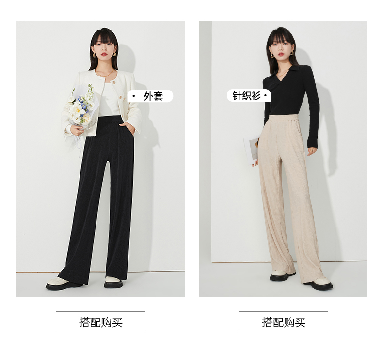 逸阳春夏款高腰压褶阔腿裤女直筒宽松米白色拖地裤子9901