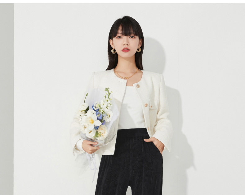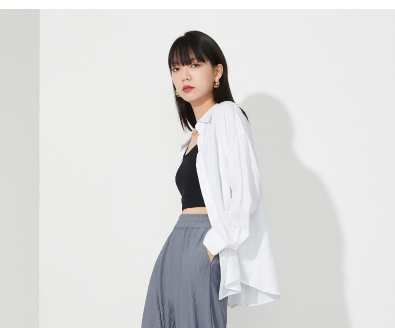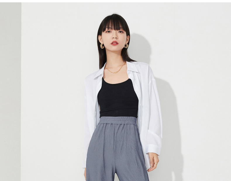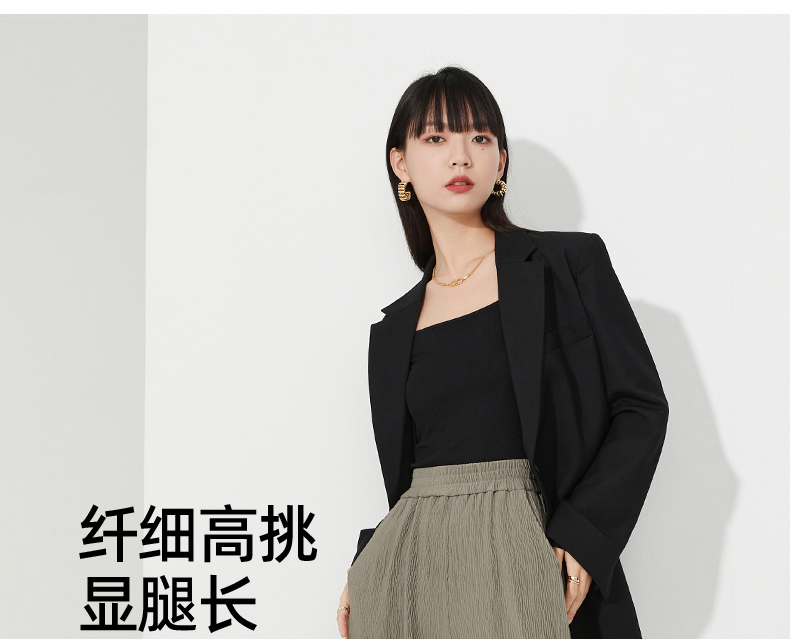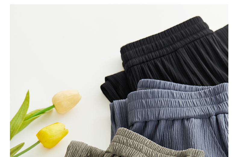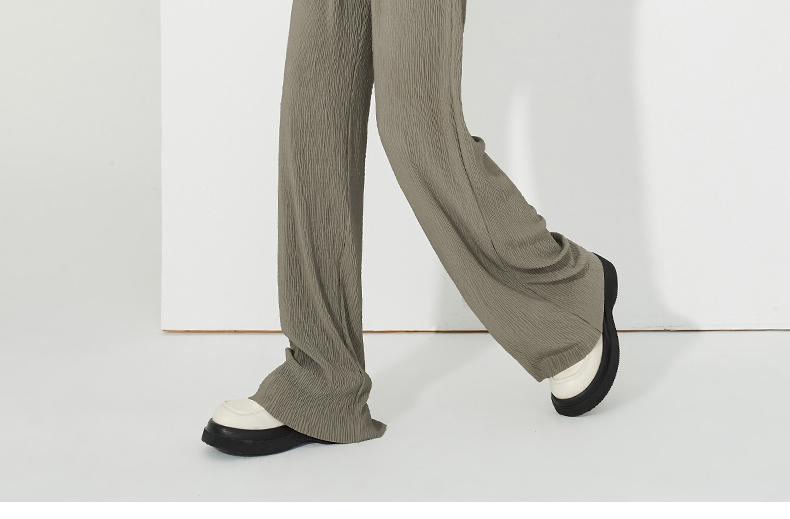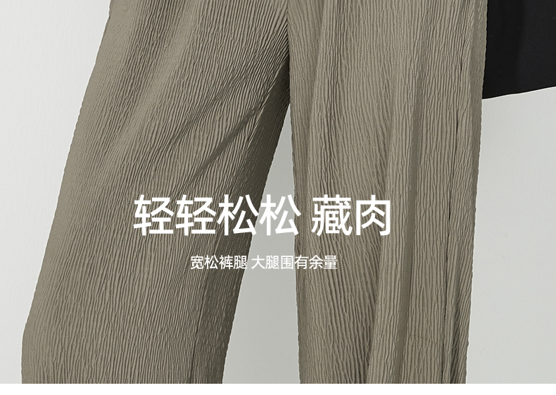 逸阳春夏款高腰压褶阔腿裤女直筒宽松米白色拖地裤子9901