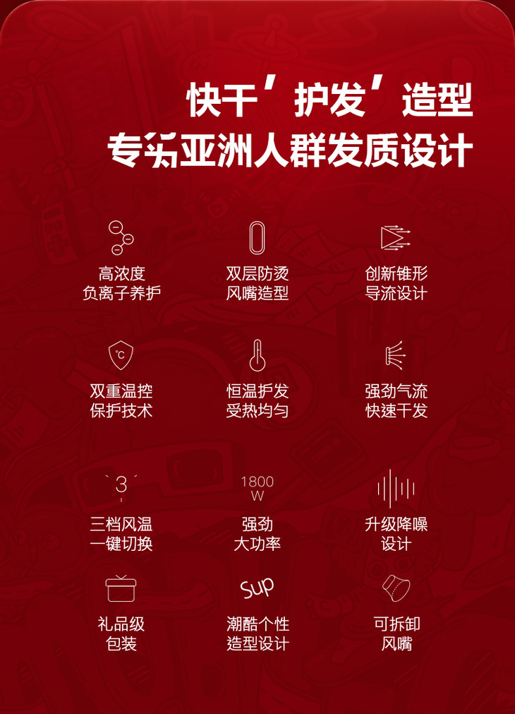 APIYOO艾优负离子SUP吹风机家用电吹风大功率网红限量款