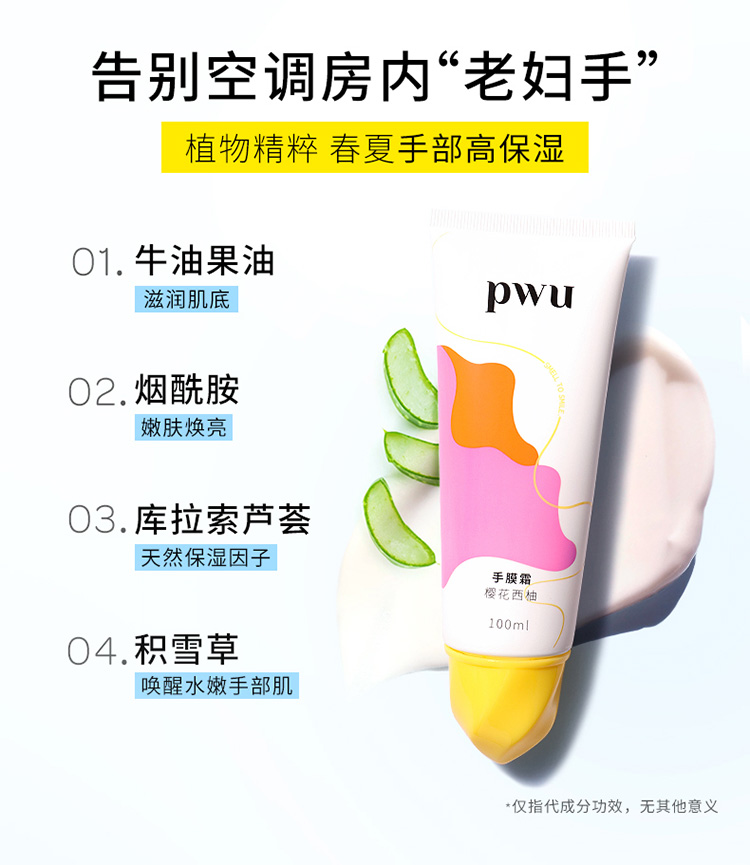 PWU朴物大美樱花西柚手膜霜100ml*2支