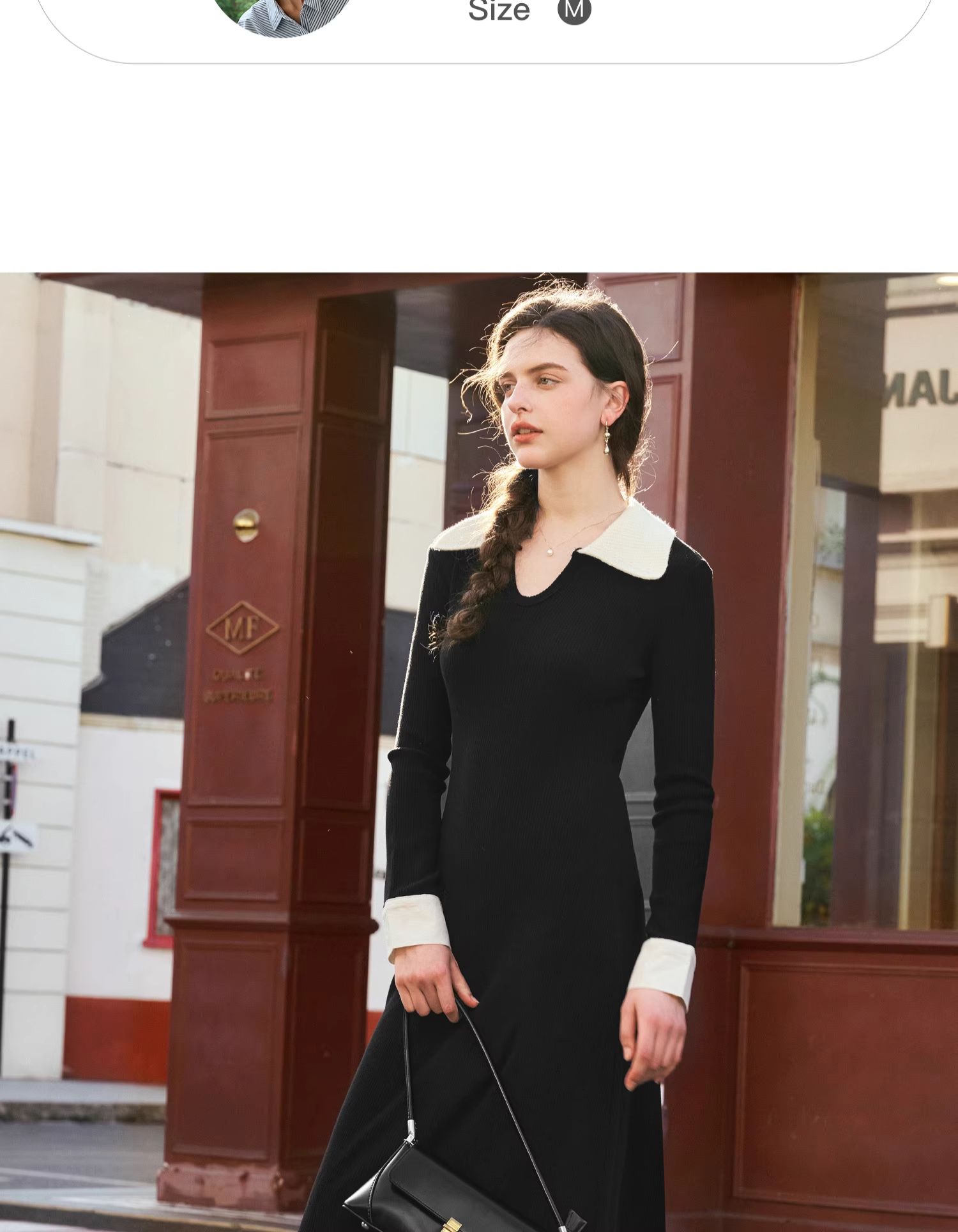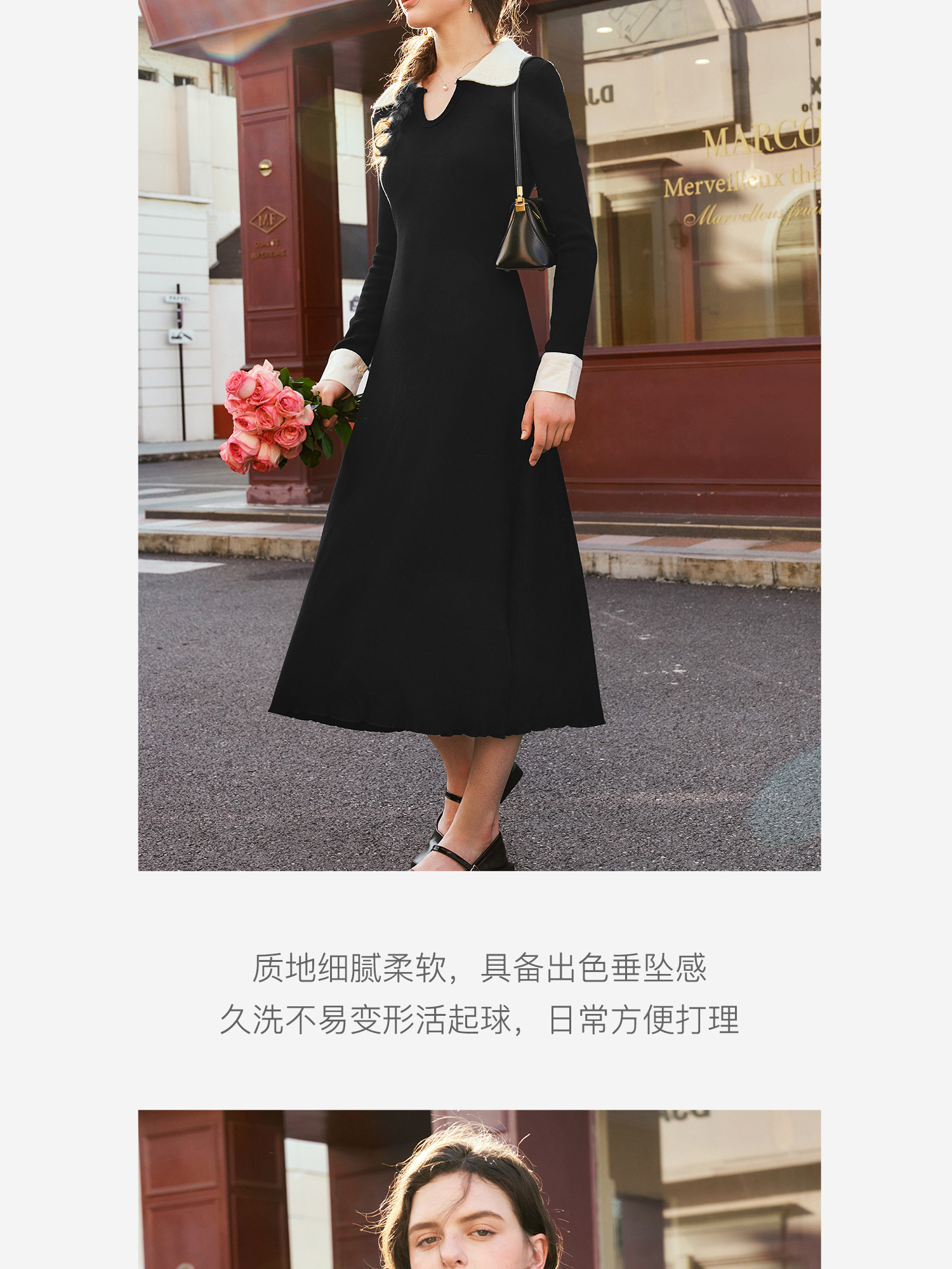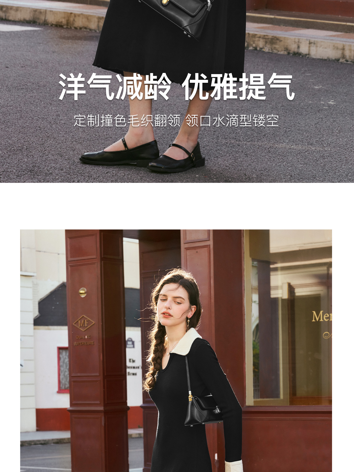 OLrain欧芮儿法式针织连衣裙女秋季2024新款撞色翻领收腰显瘦裙子