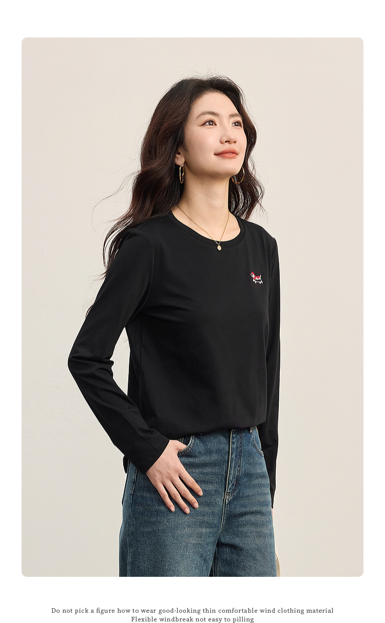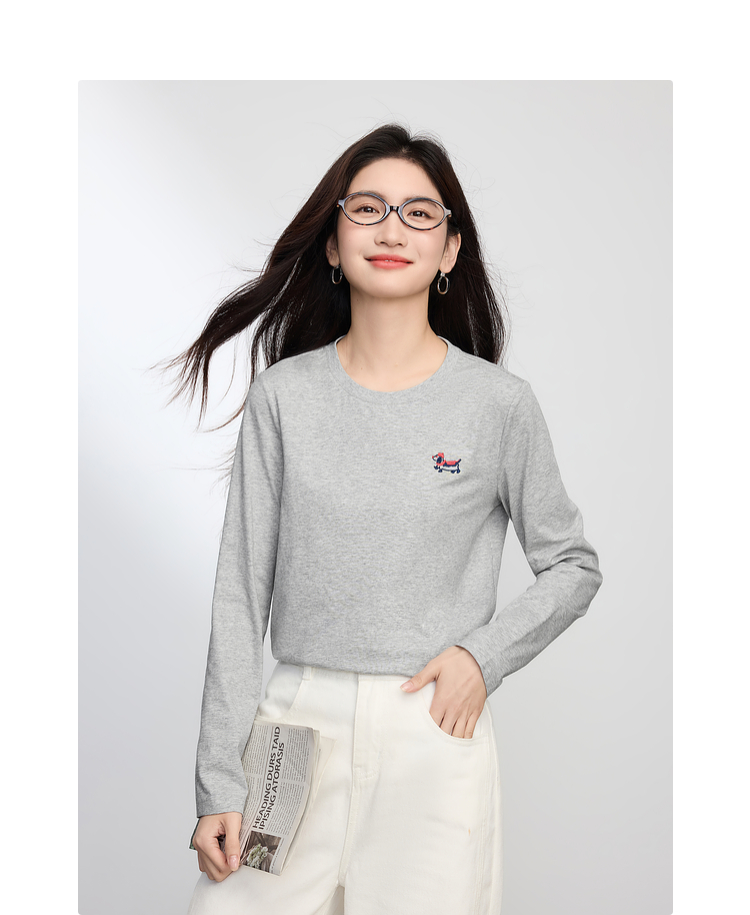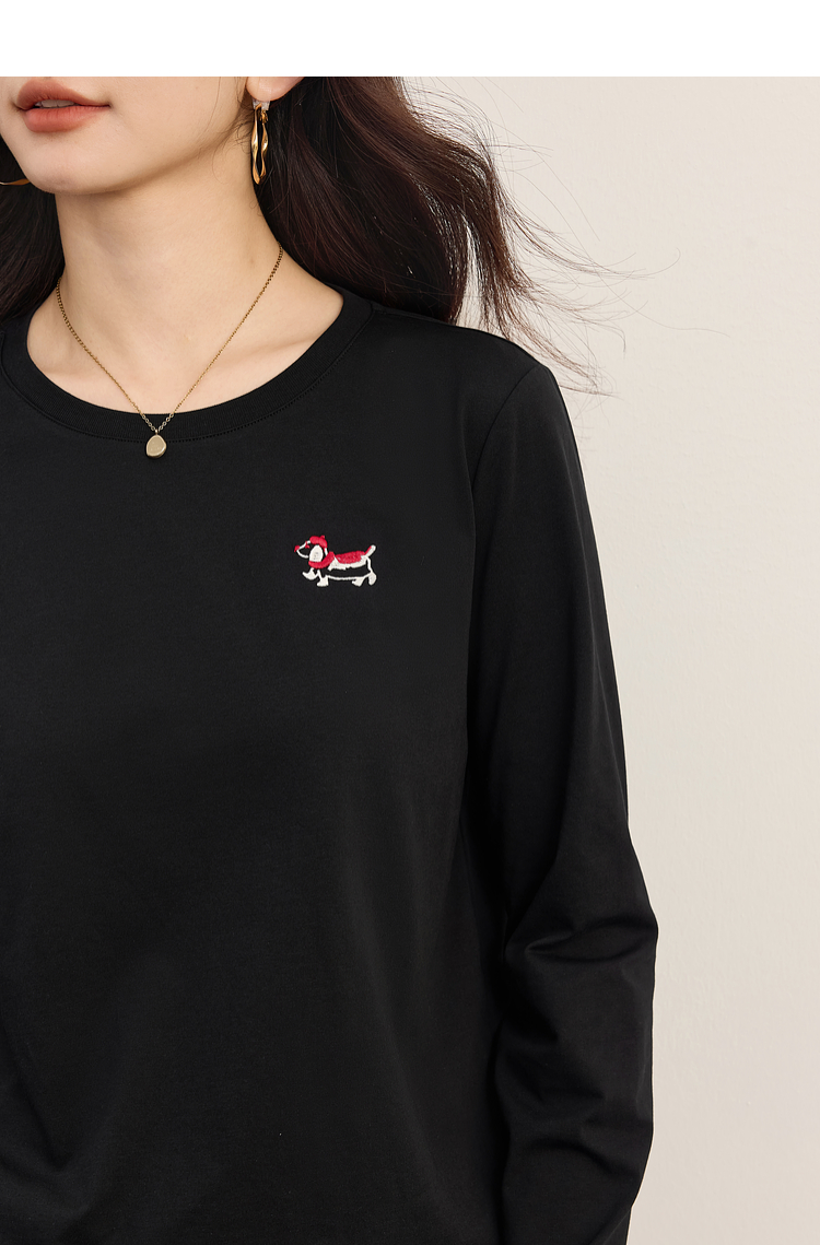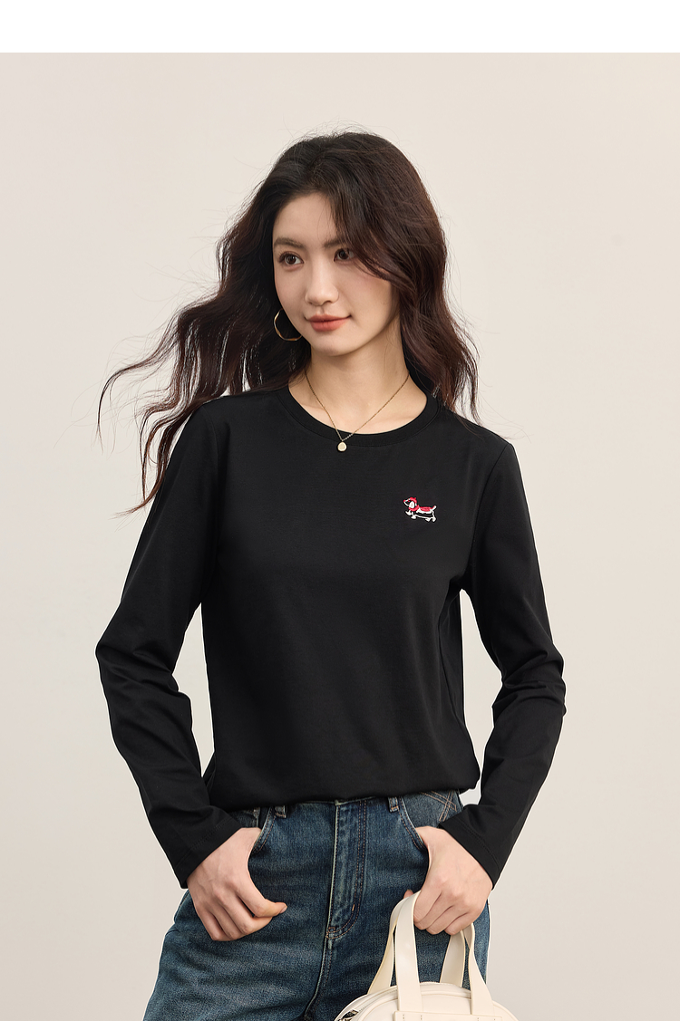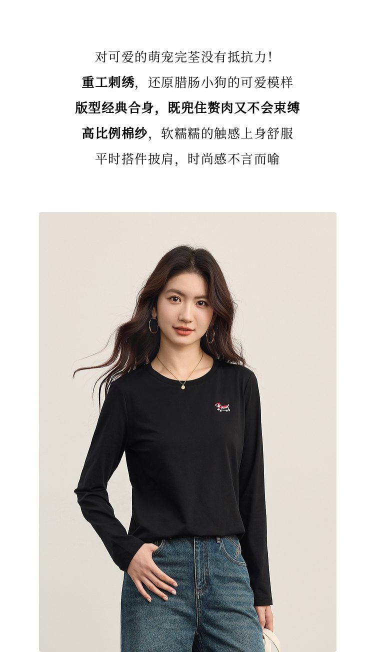 【09/03新品】熙世界腊肠小狗T恤女长袖2025秋季新款通勤气质宽松休闲圆领上衣