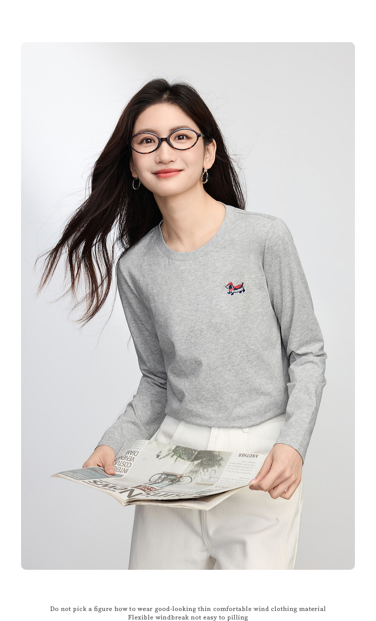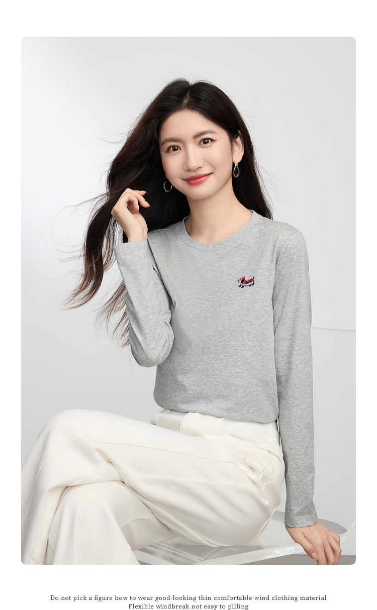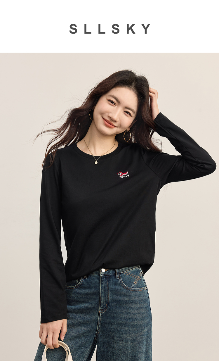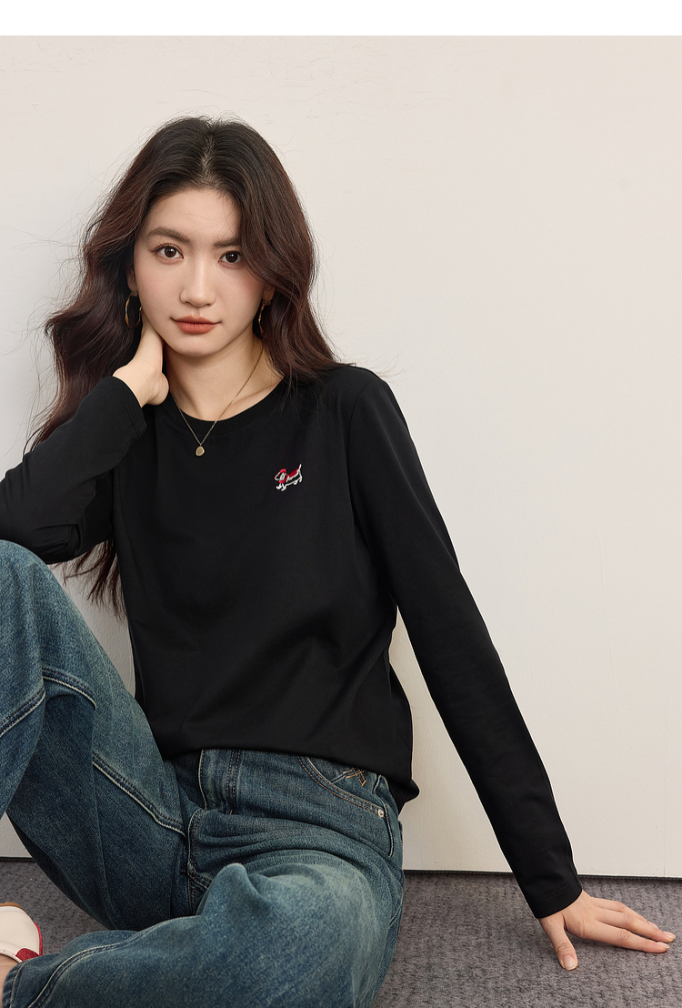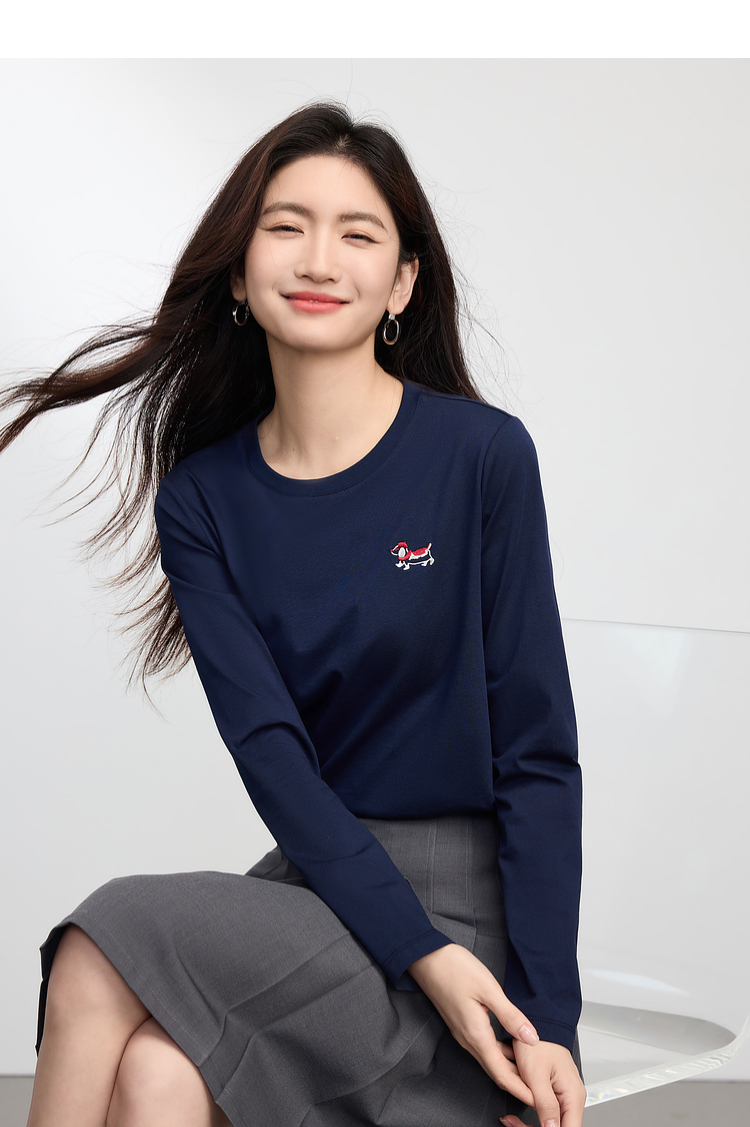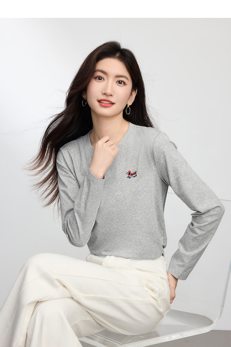 【09/03新品】熙世界腊肠小狗T恤女长袖2025秋季新款通勤气质宽松休闲圆领上衣