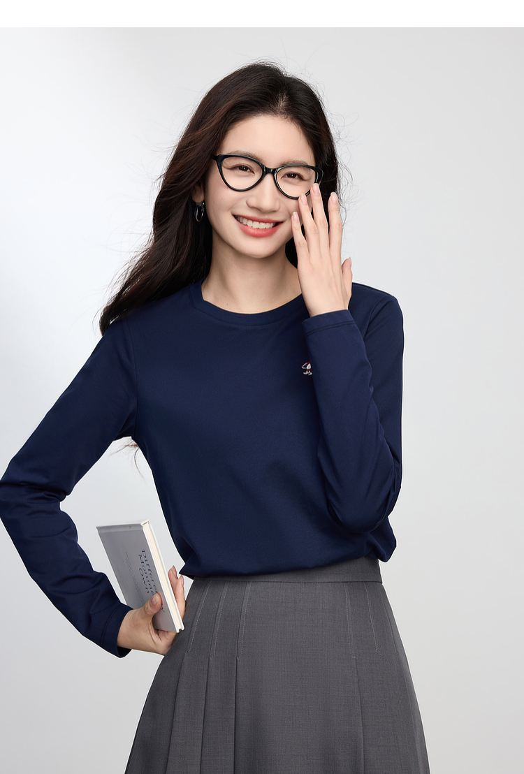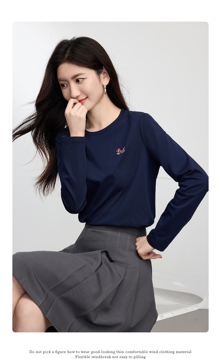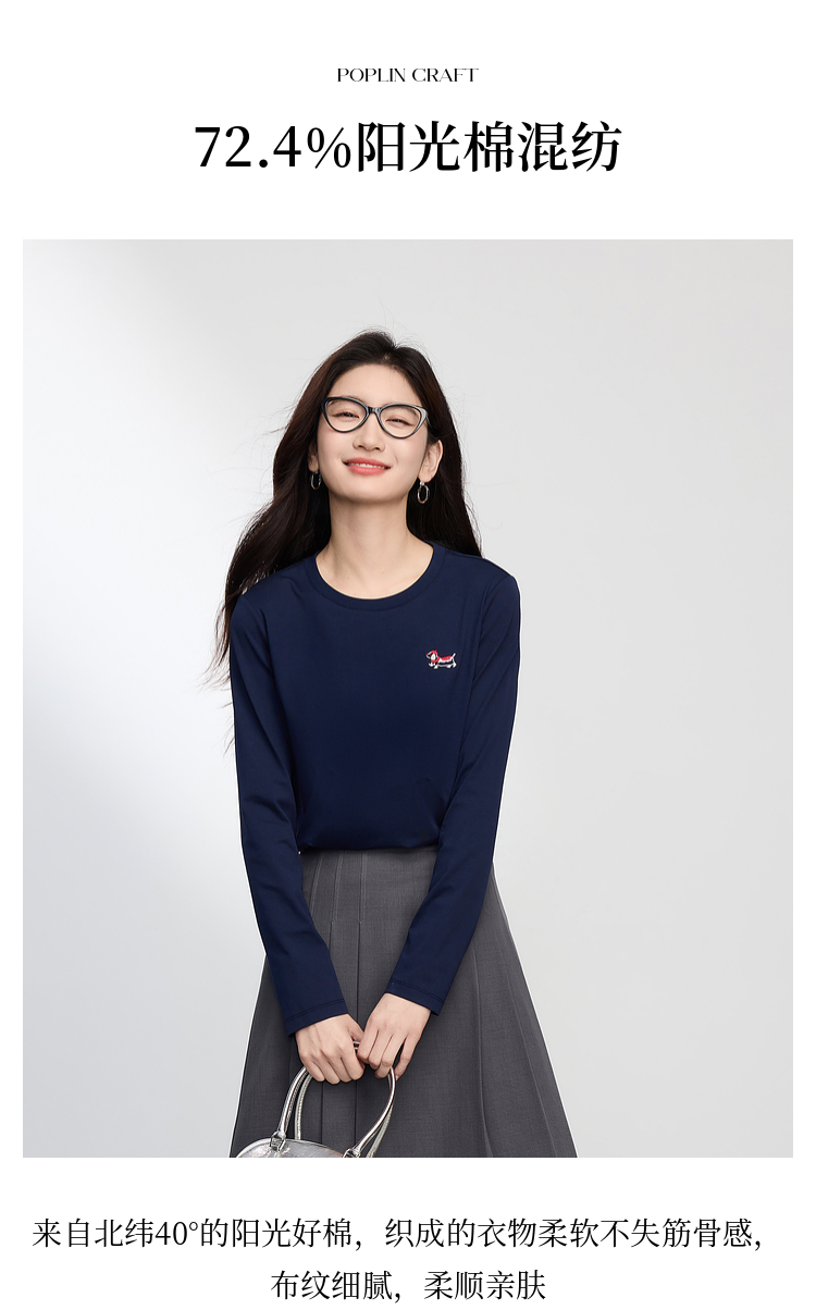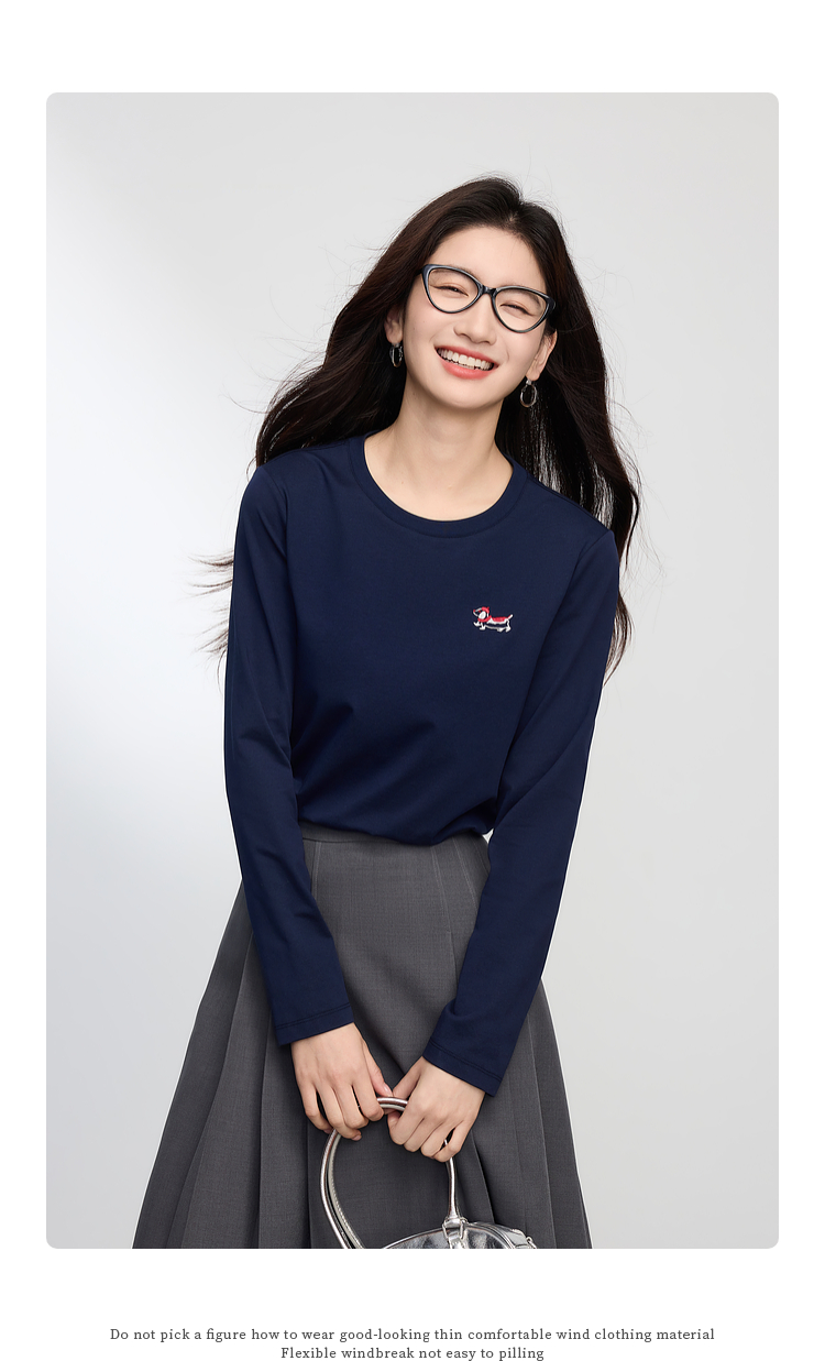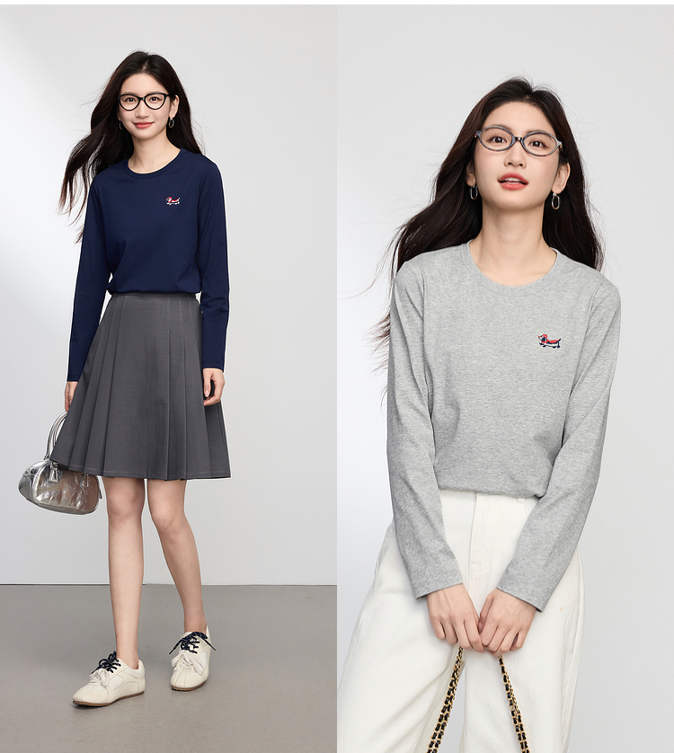【09/03新品】熙世界腊肠小狗T恤女长袖2025秋季新款通勤气质宽松休闲圆领上衣