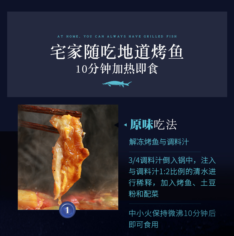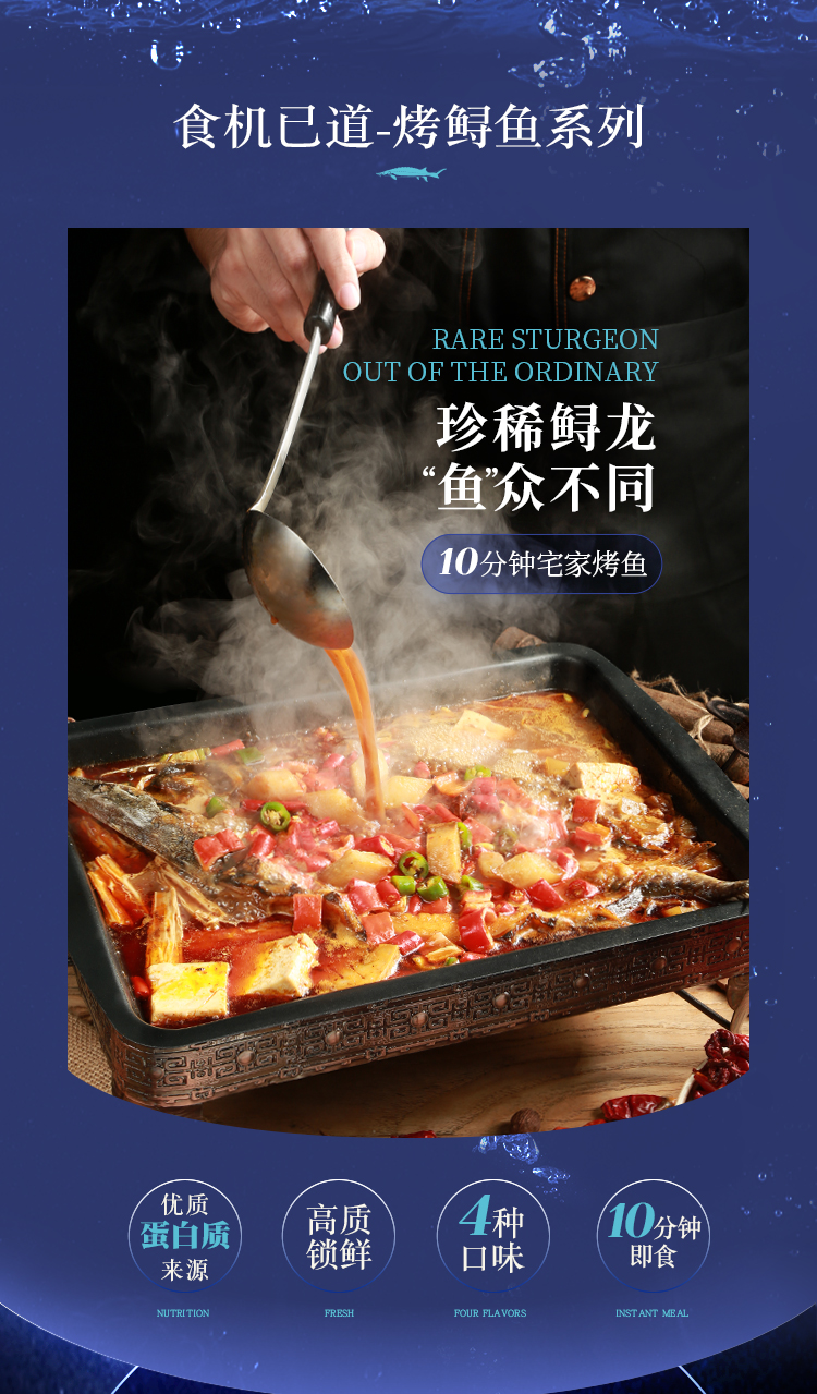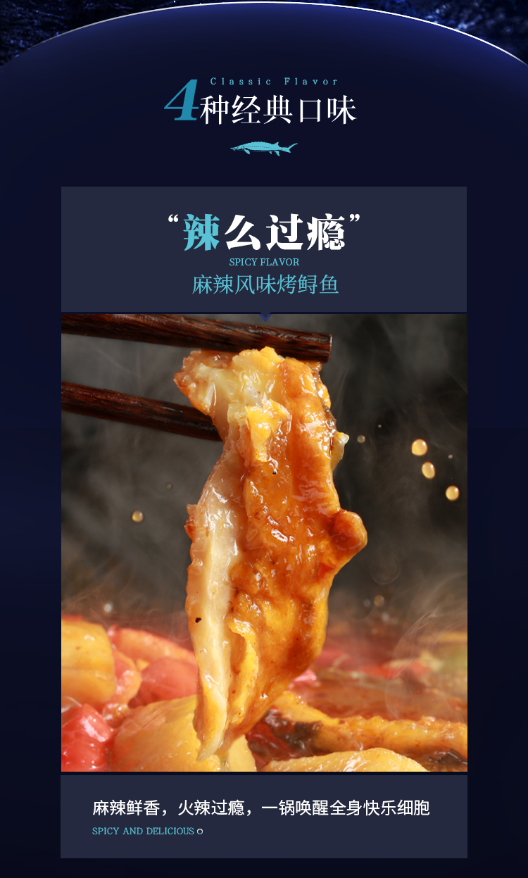 食机己道麻辣/蒜香/青花椒/贵州酸汤风味烤鲟鱼 1100g