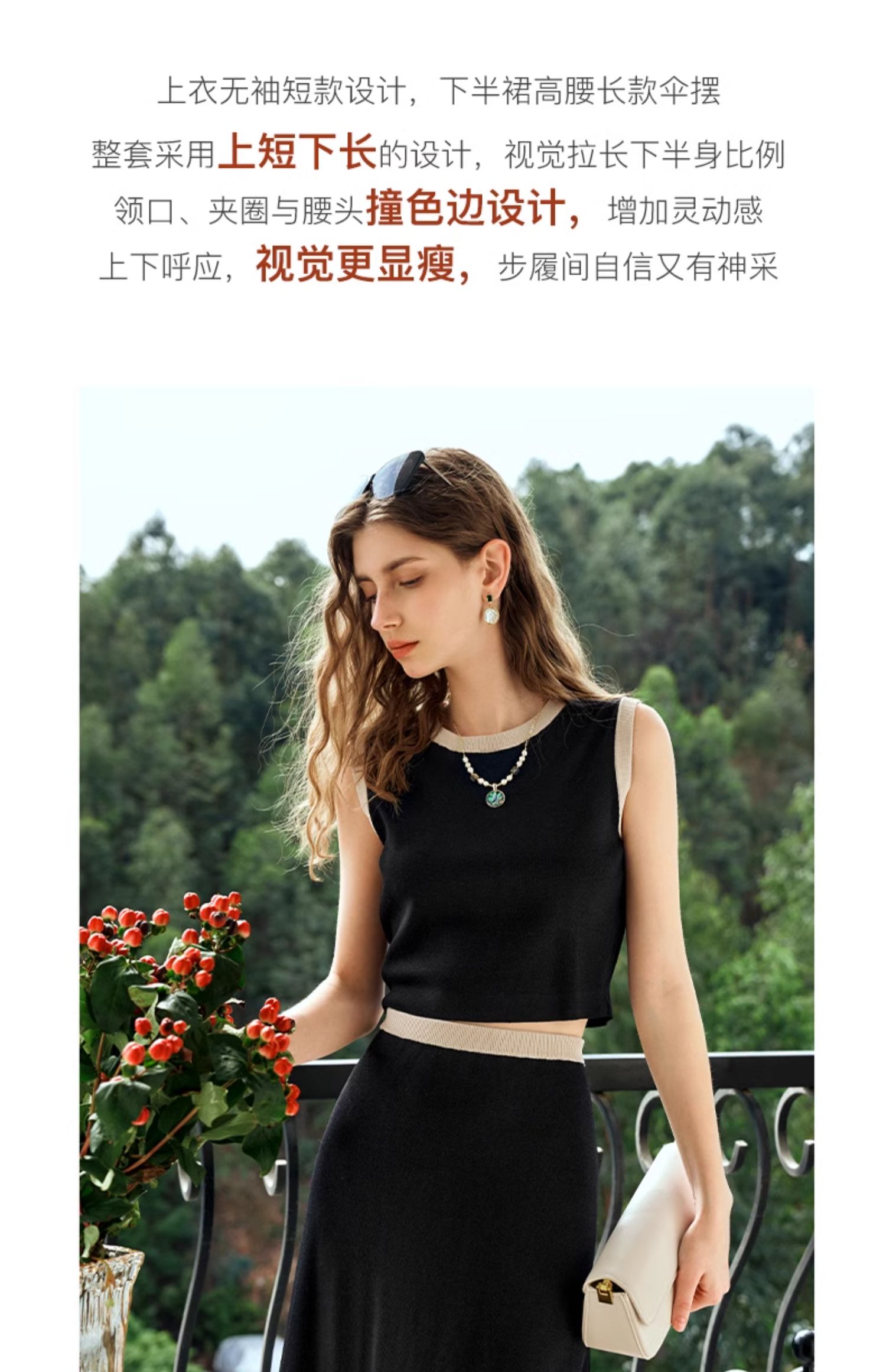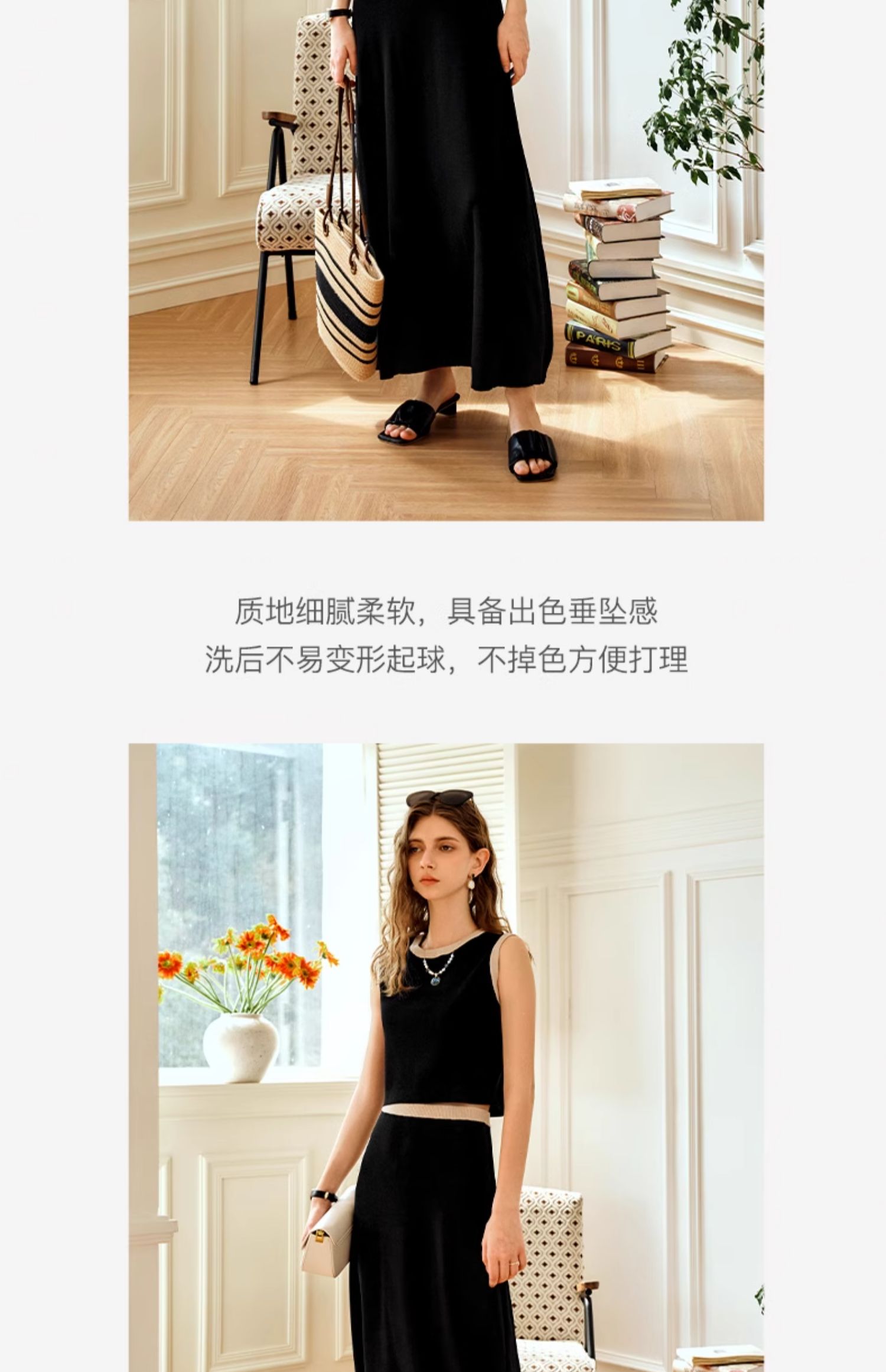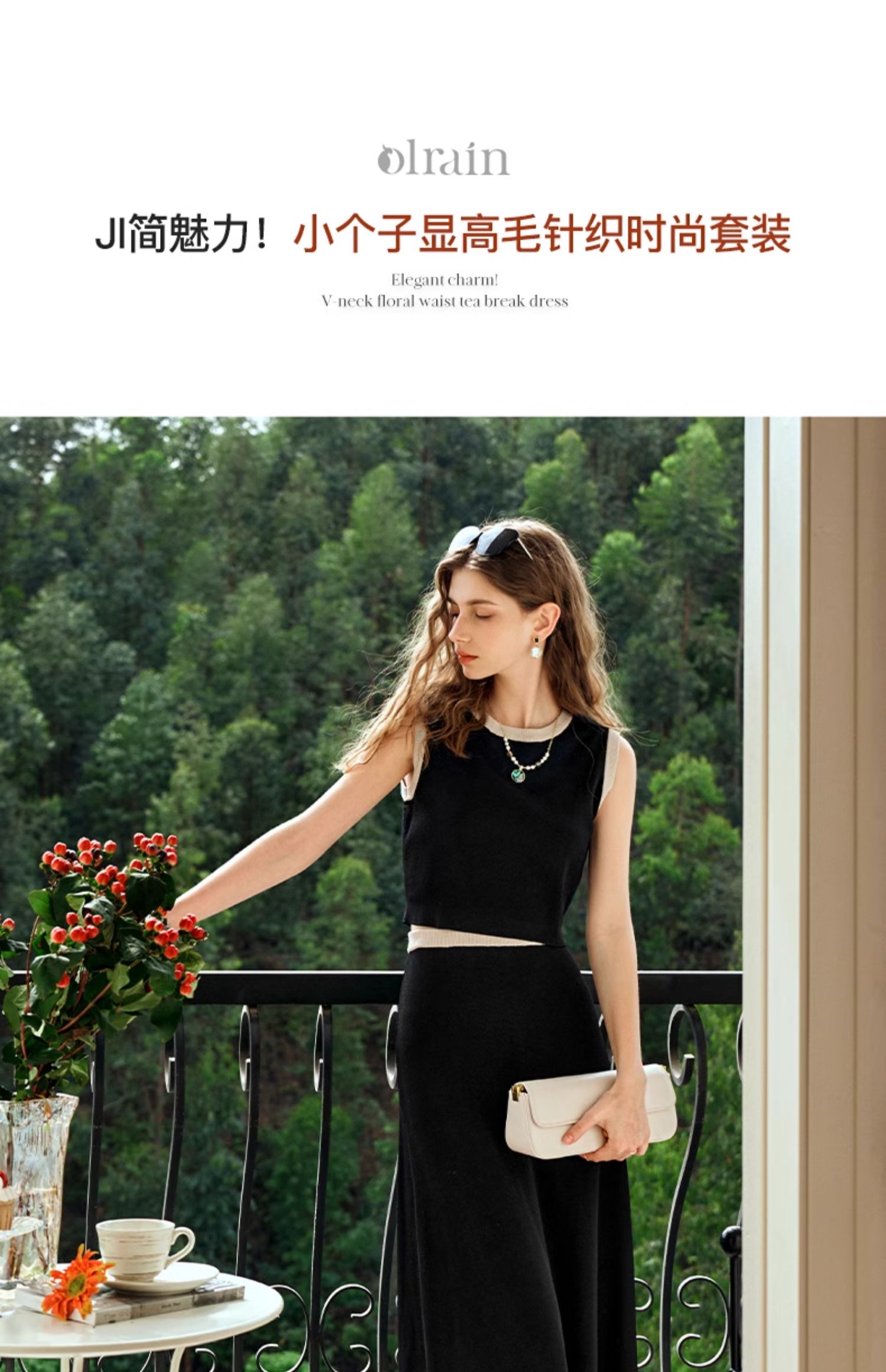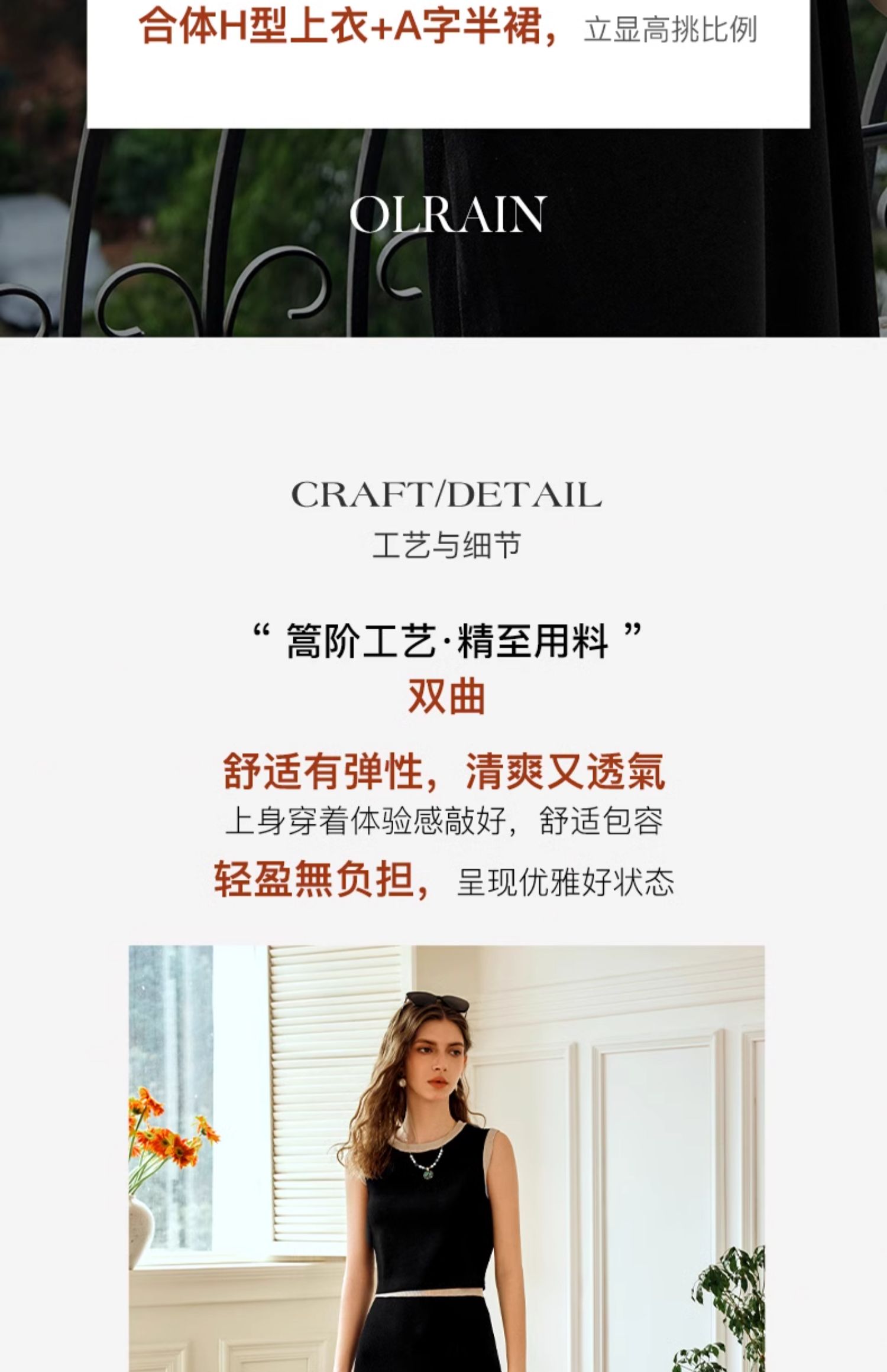 OLrain欧芮儿黑色针织套装女夏季2024年新款小个子气质半裙两件套
