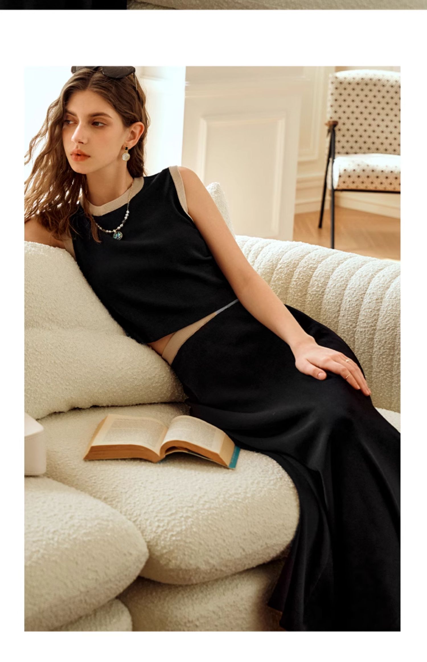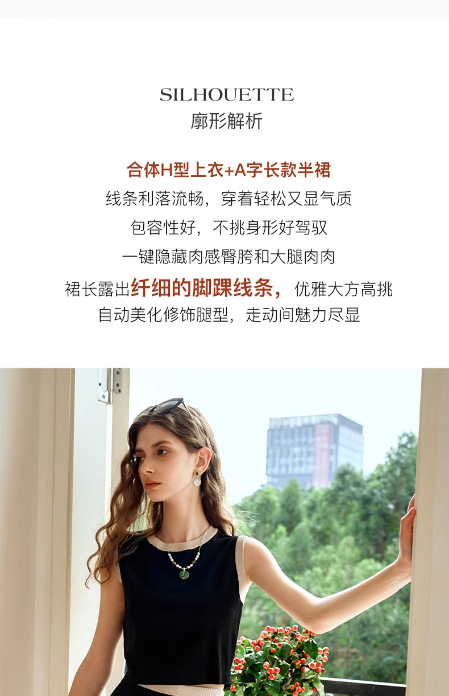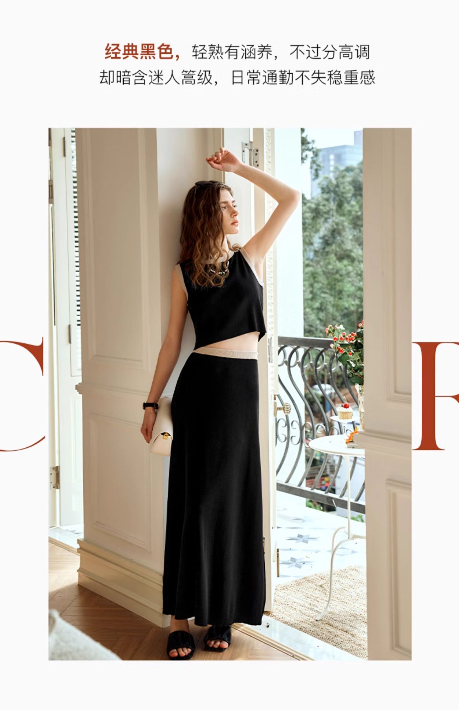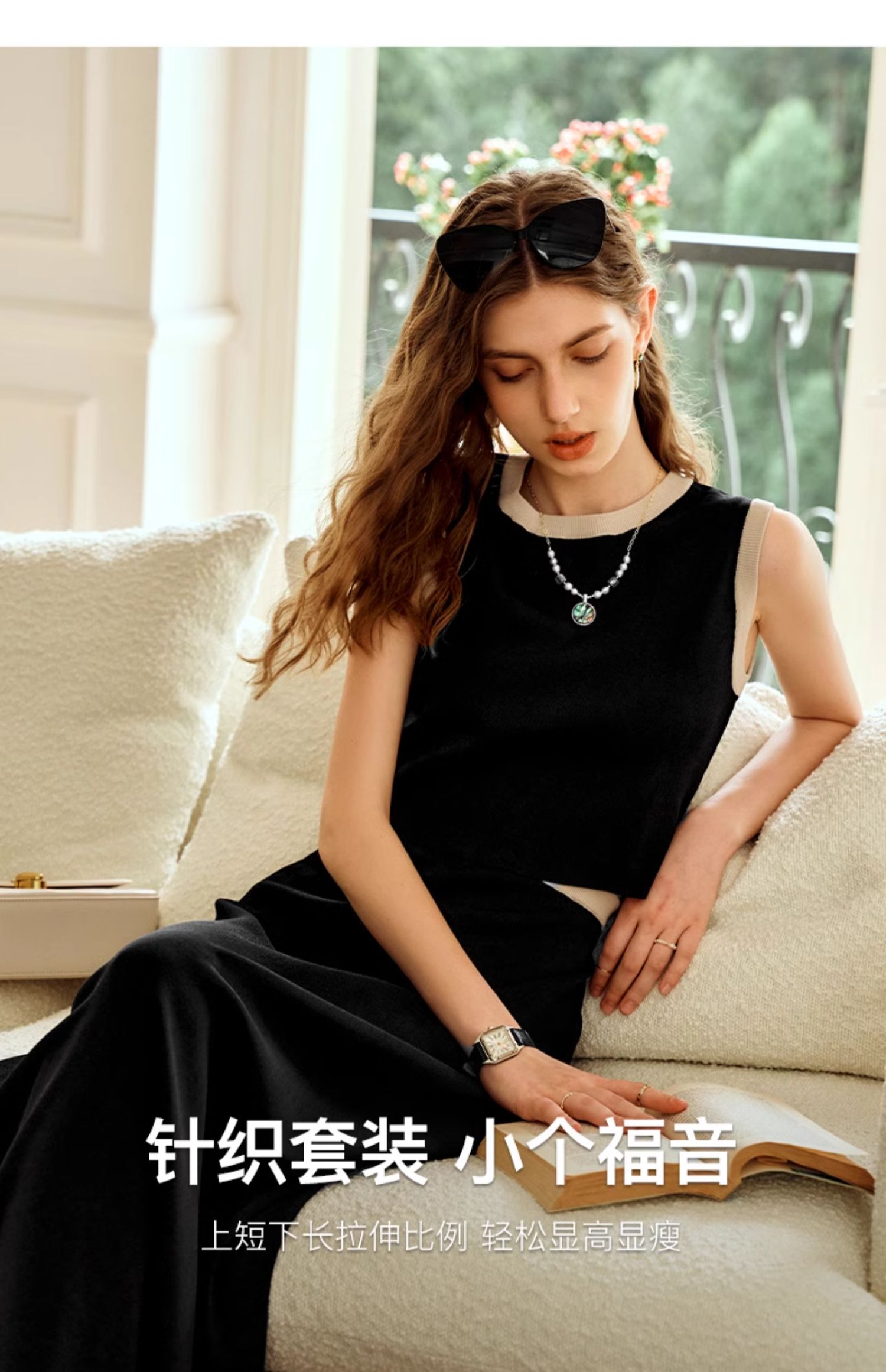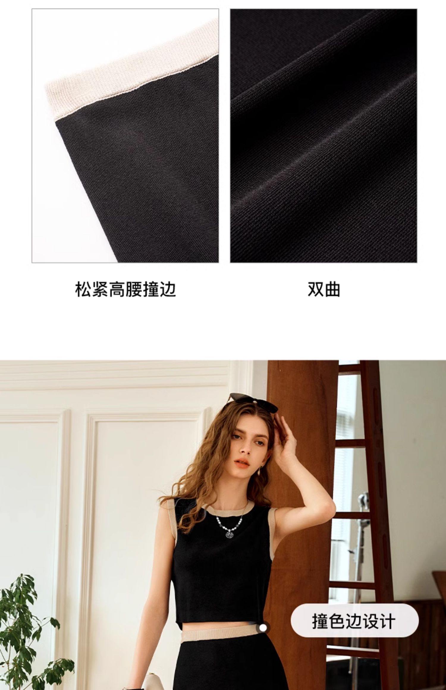 OLrain欧芮儿黑色针织套装女夏季2024年新款小个子气质半裙两件套