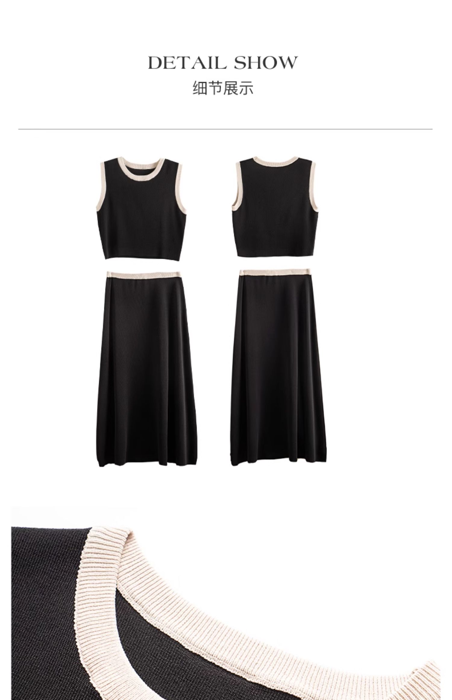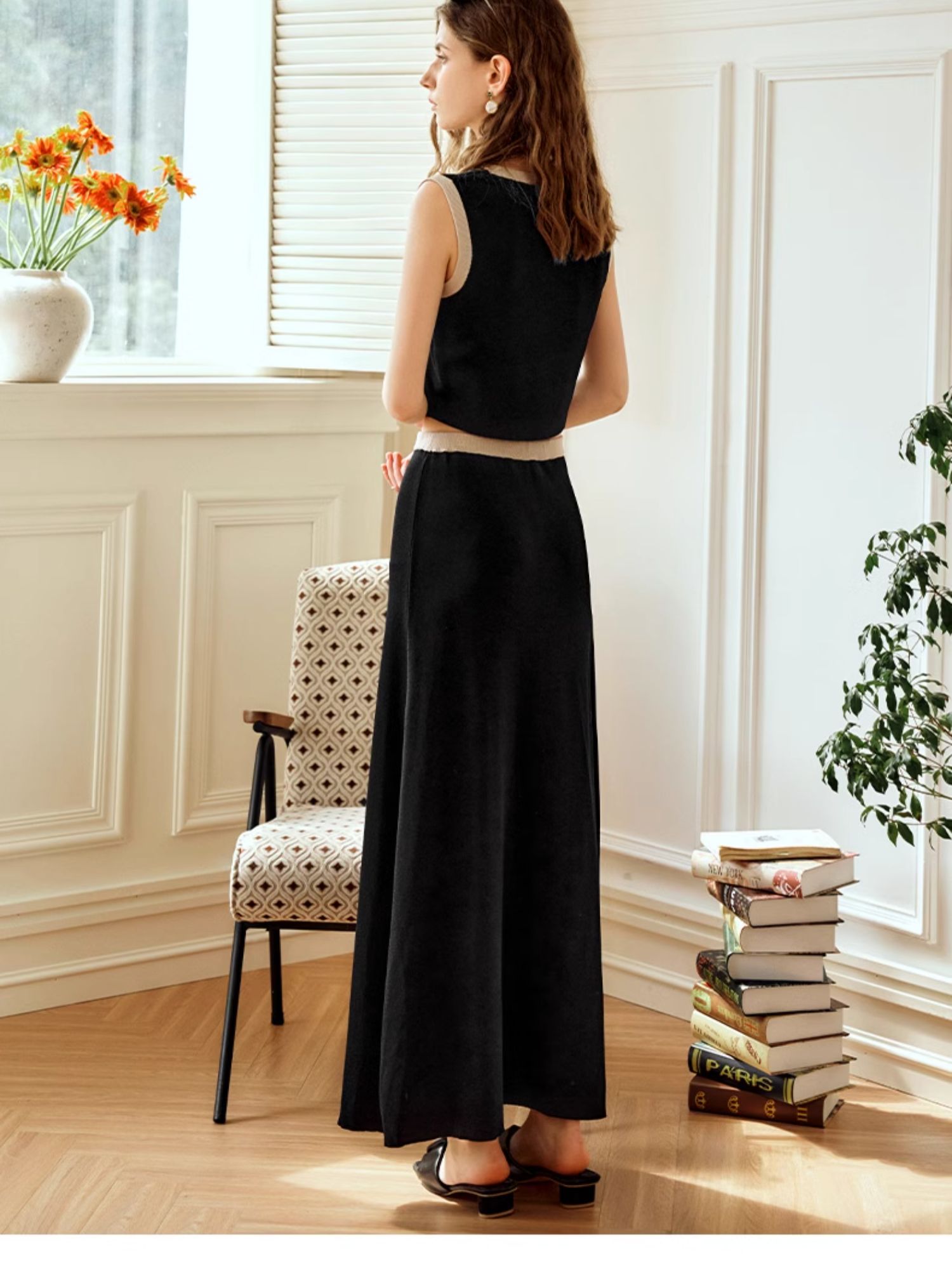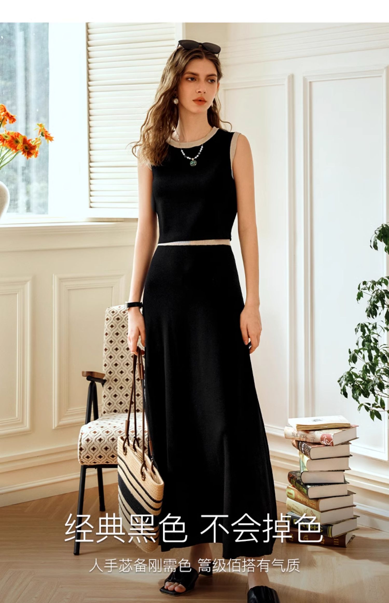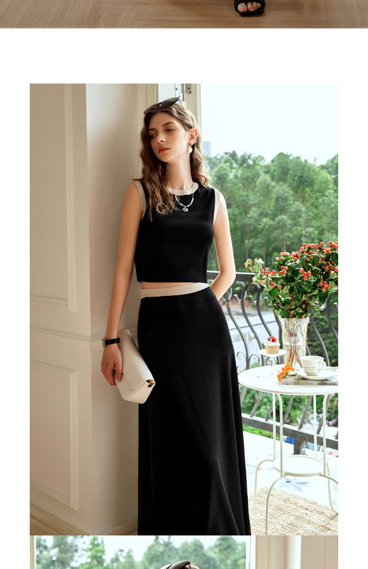 OLrain欧芮儿黑色针织套装女夏季2024年新款小个子气质半裙两件套