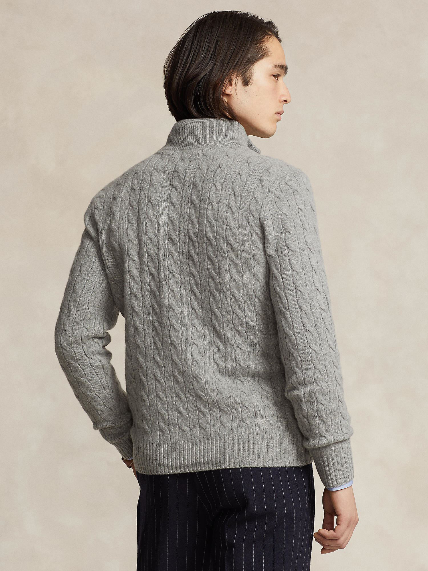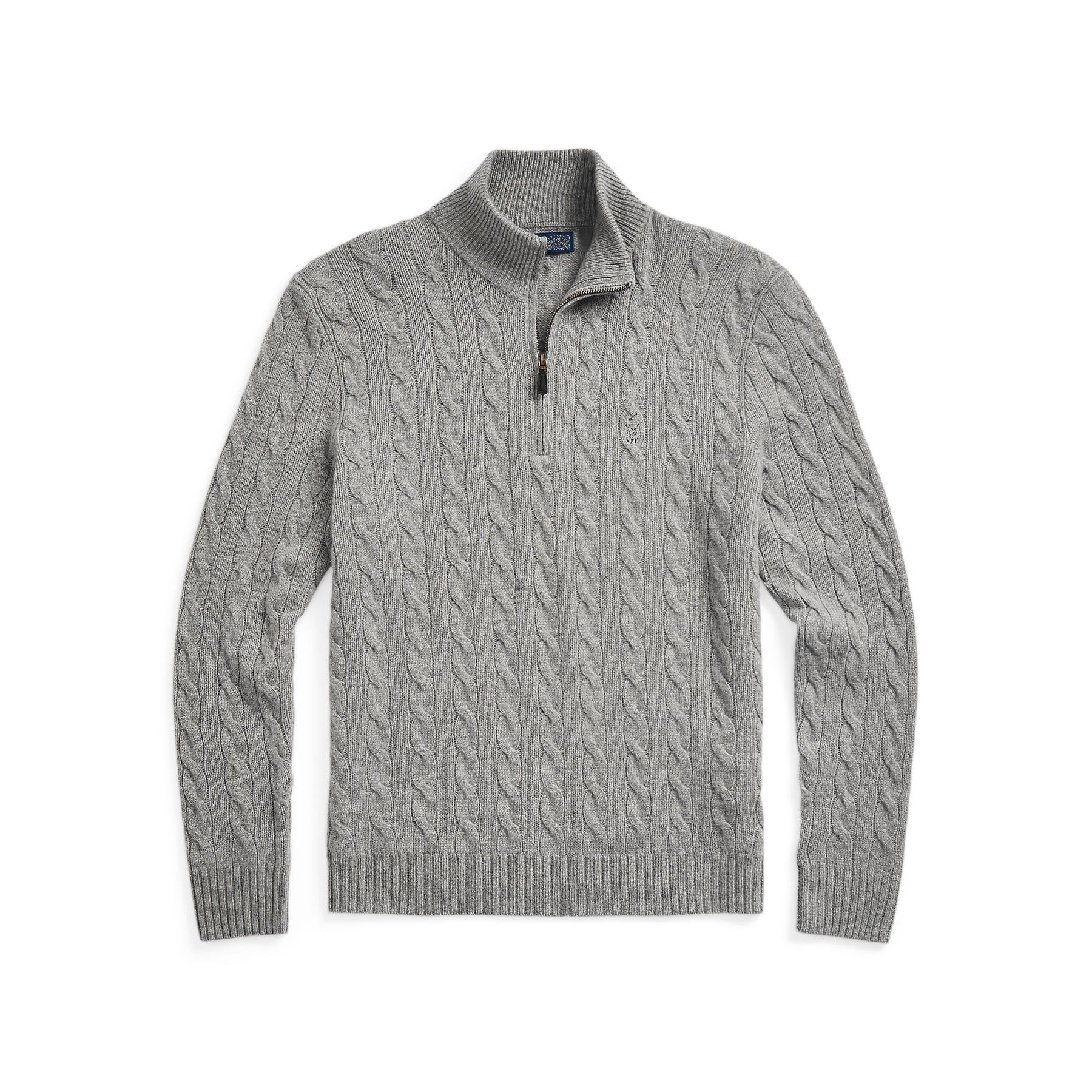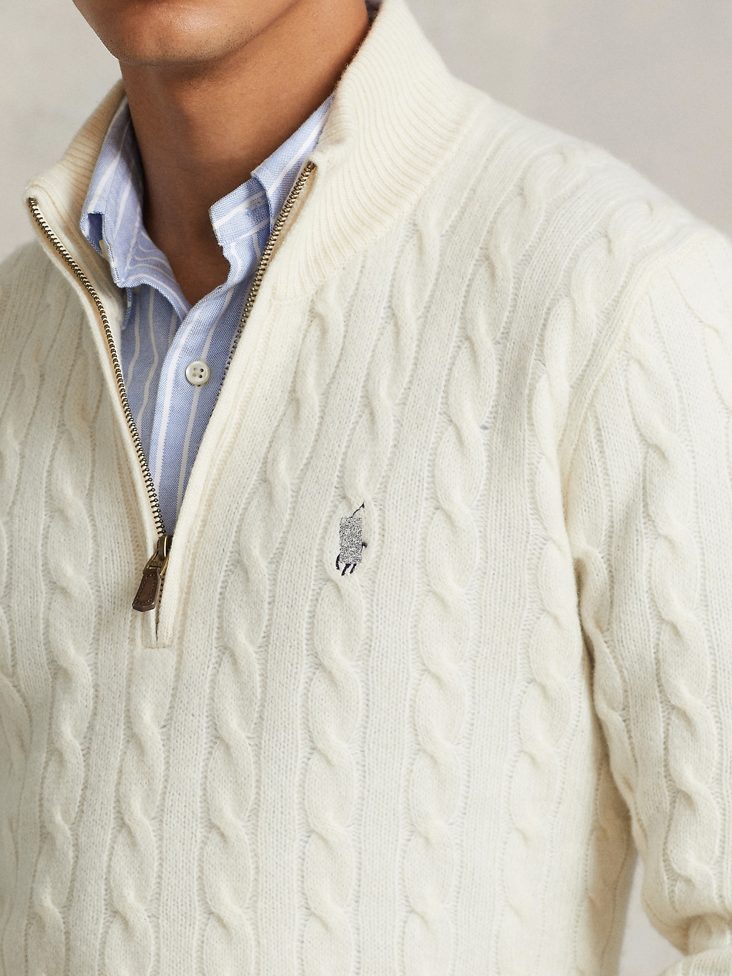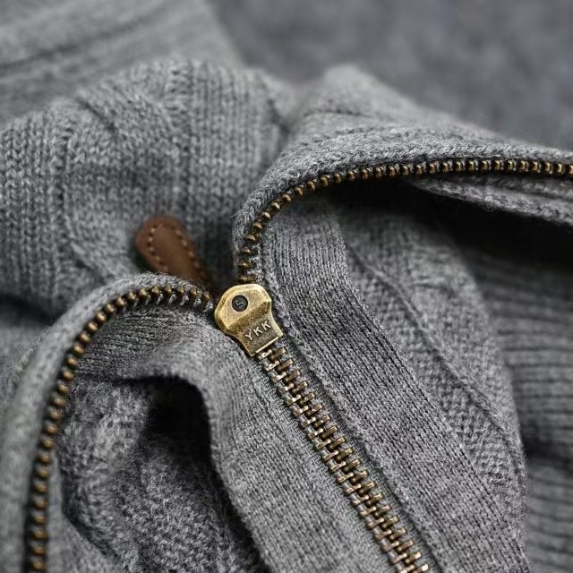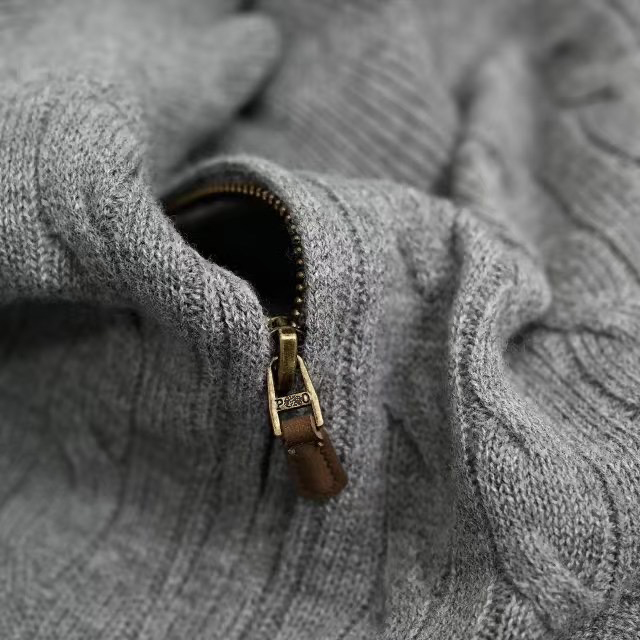 经典纽花 90%羊毛 高领半拉链套头针织衫