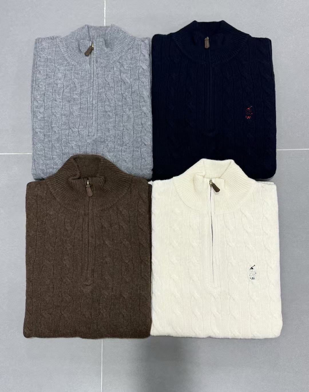 小马标 2024冬季新款 经典纽花 90%羊毛 高领半拉链套头针织衫 4色 PT-1177