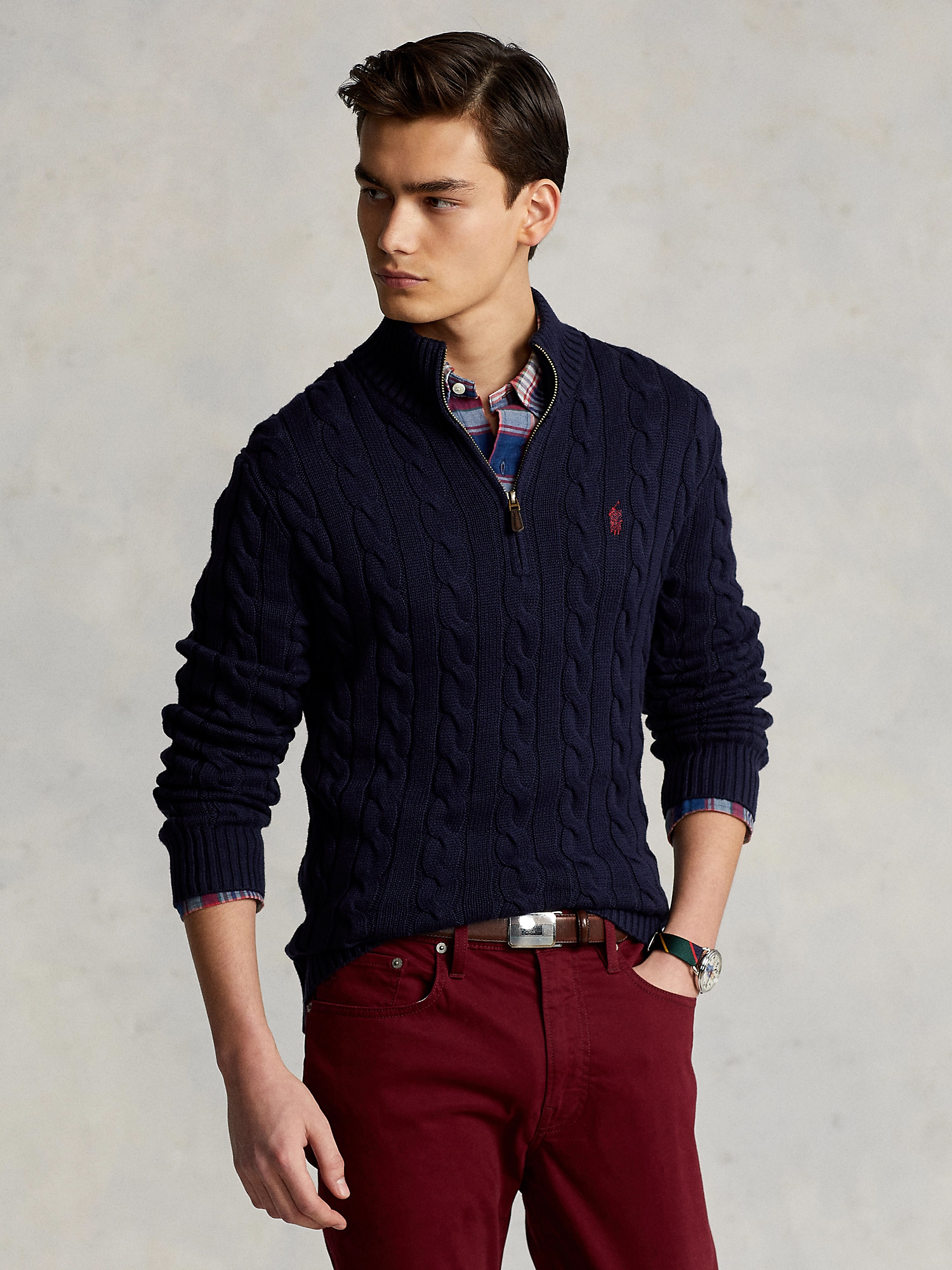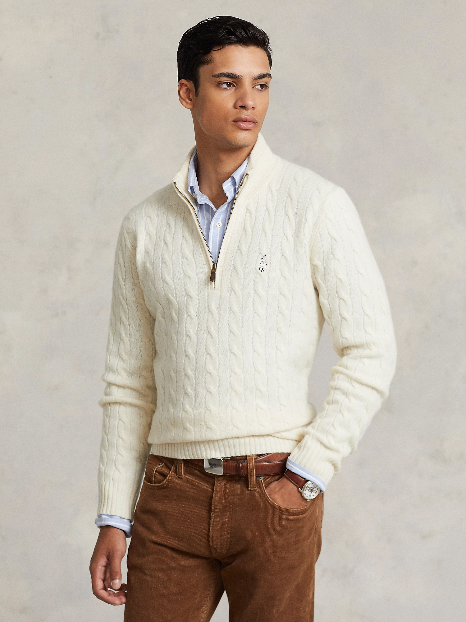经典扭花半拉链高领毛衣!羊毛面料柔软舒适保暖。有毛线弹性。胸前精致刺绣。衬衫百搭!建议干洗或用羊毛洗涤剂!