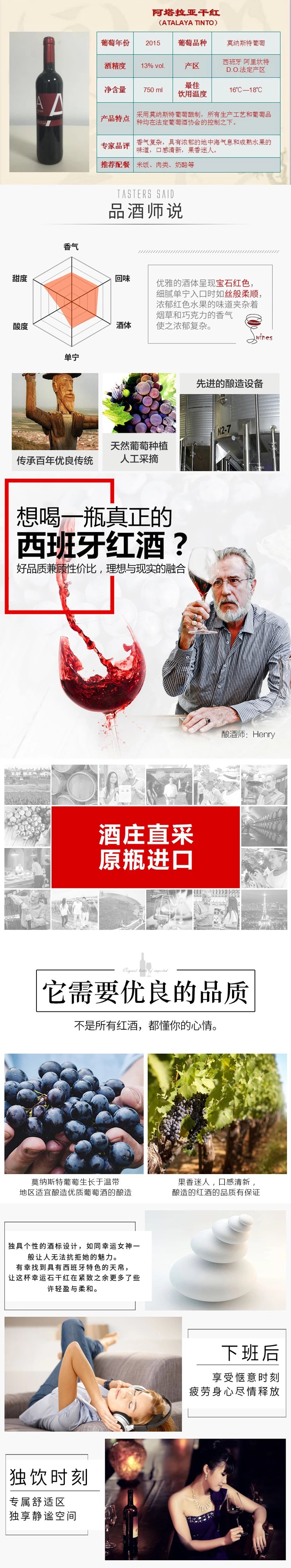 西班牙原瓶进口阿塔拉亚干红葡萄酒750ml/瓶