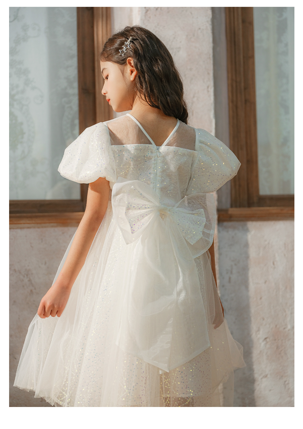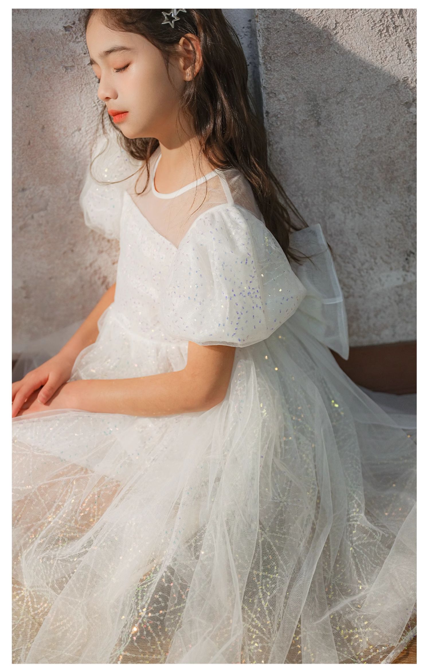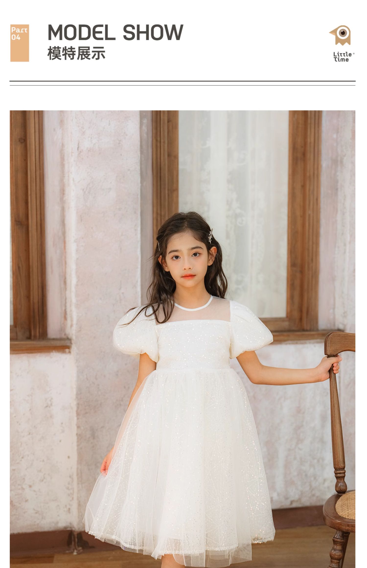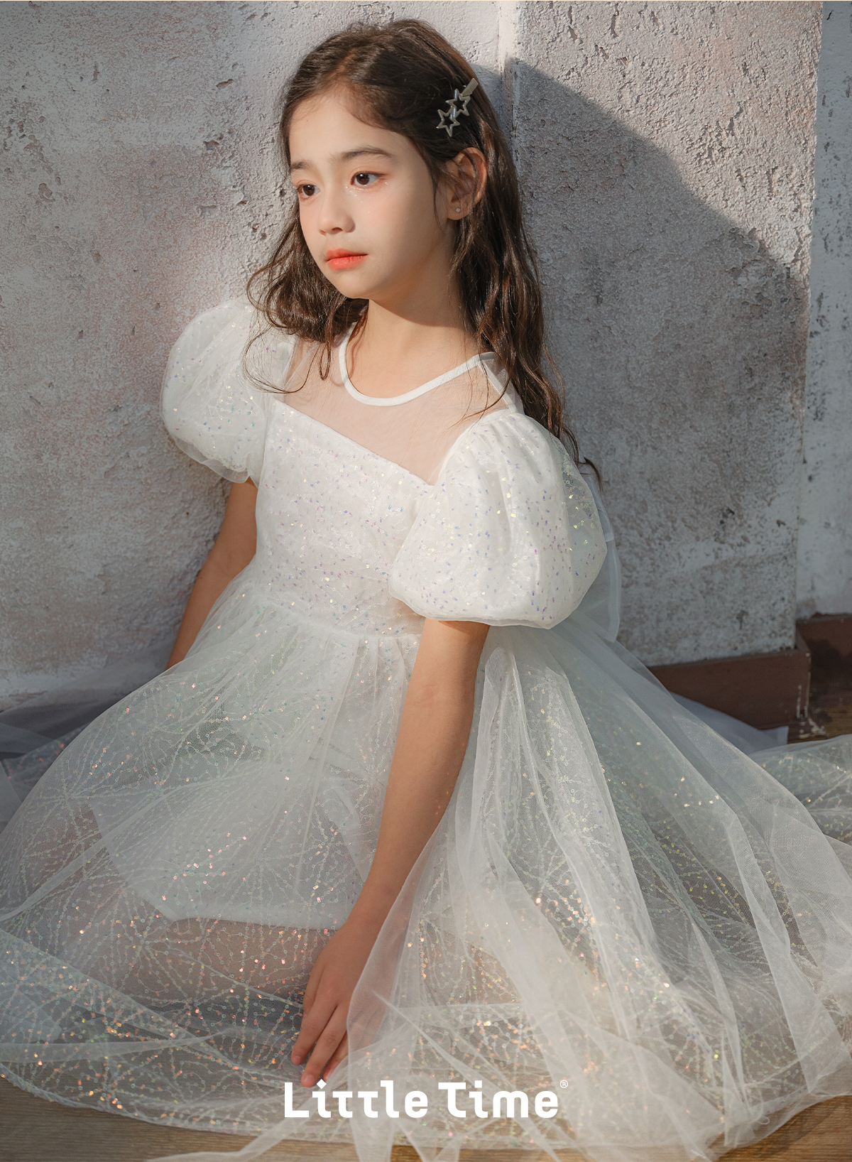 littletime2025新款女童浪漫婚纱星空闪烁亮片公主大蝴蝶结纱裙