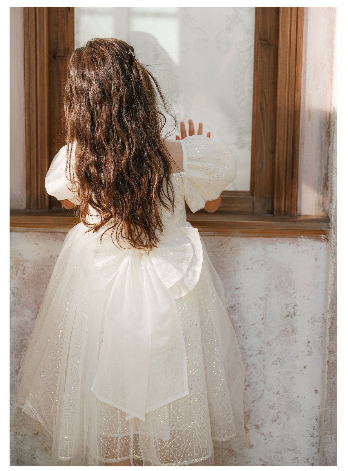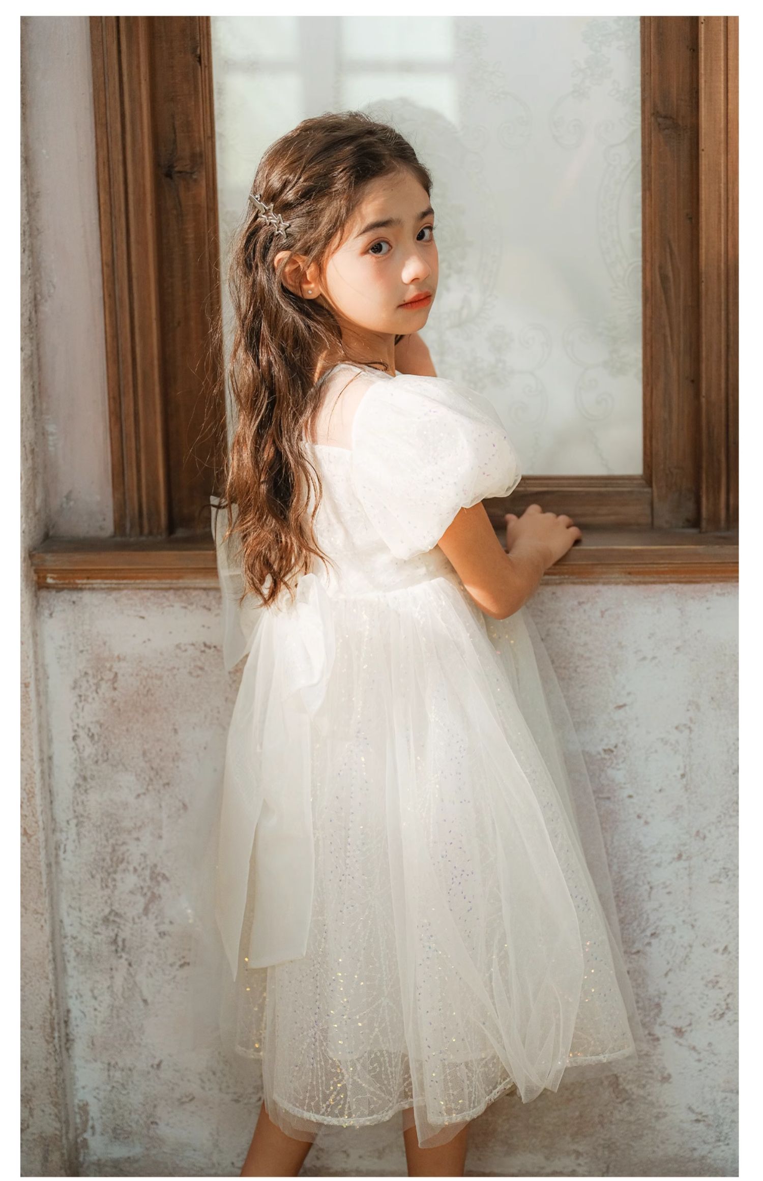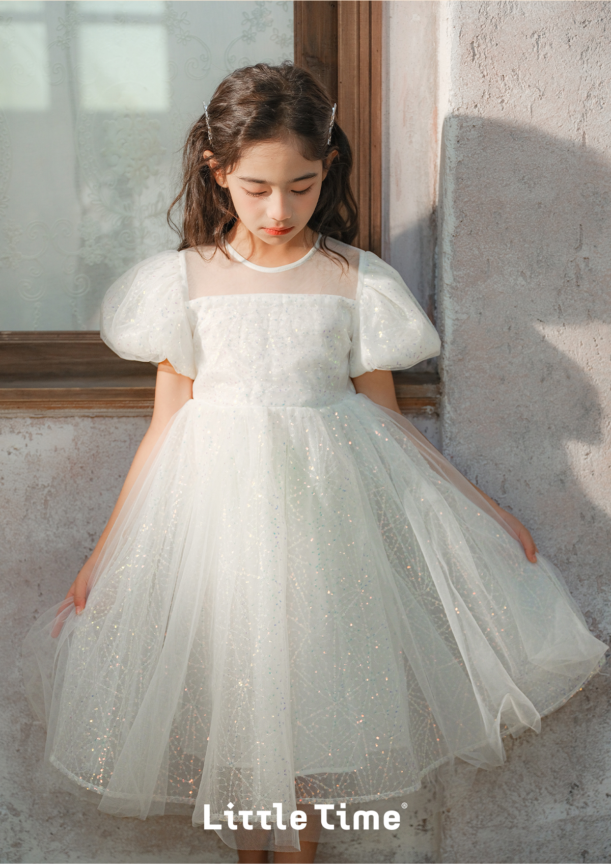 littletime2025新款女童浪漫婚纱星空闪烁亮片公主大蝴蝶结纱裙