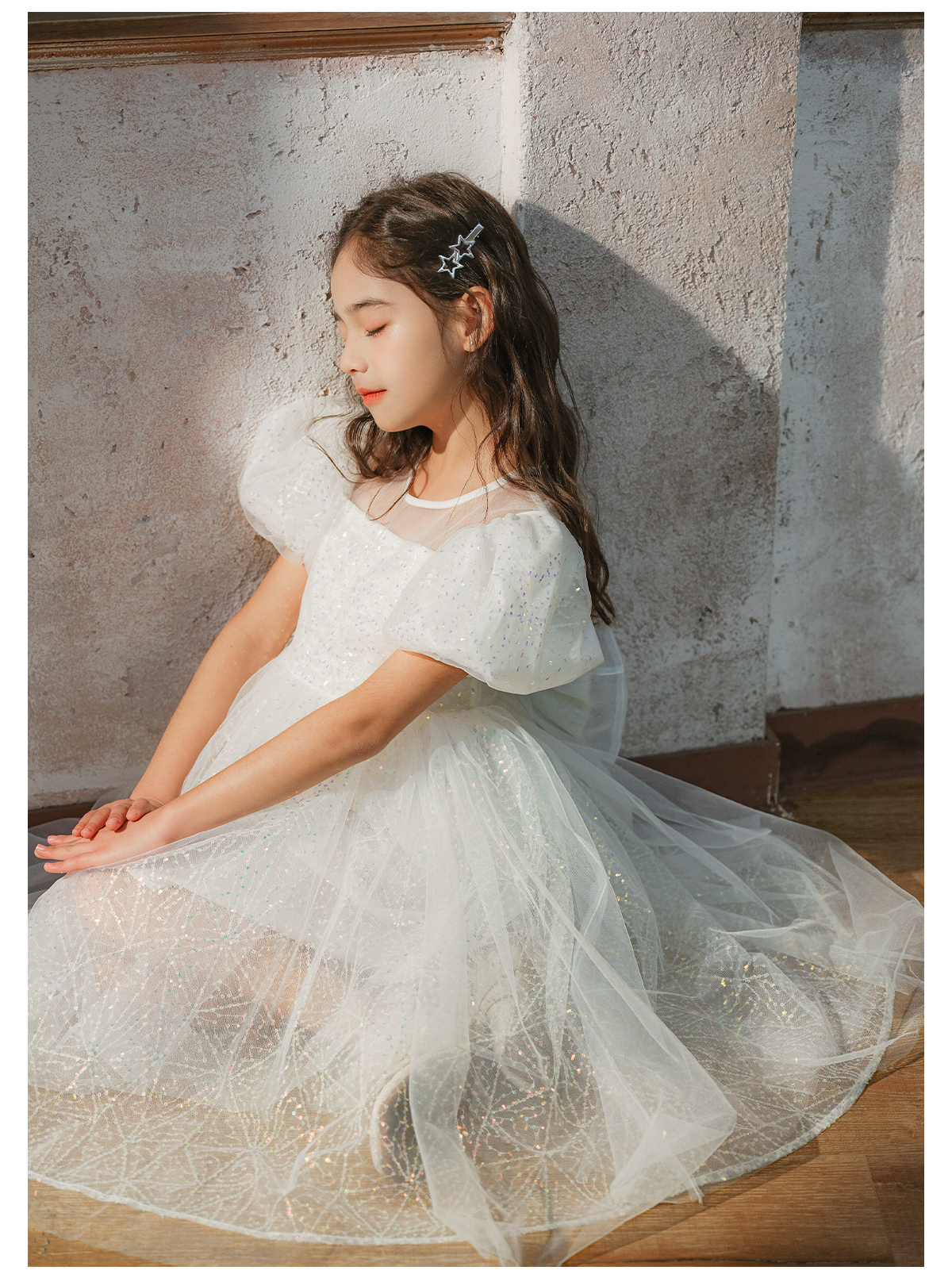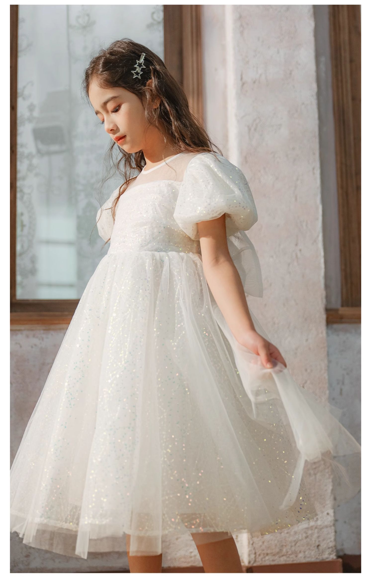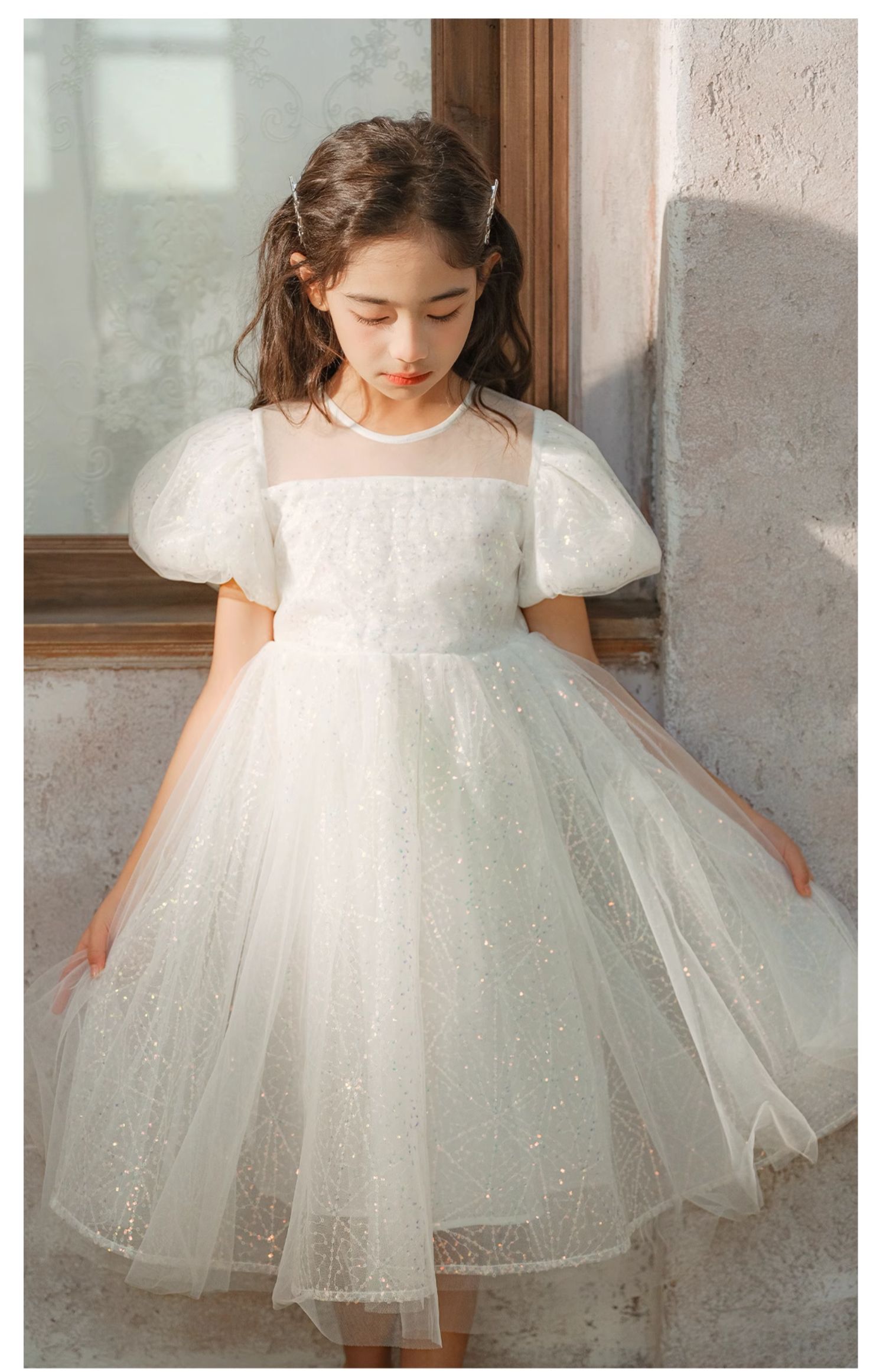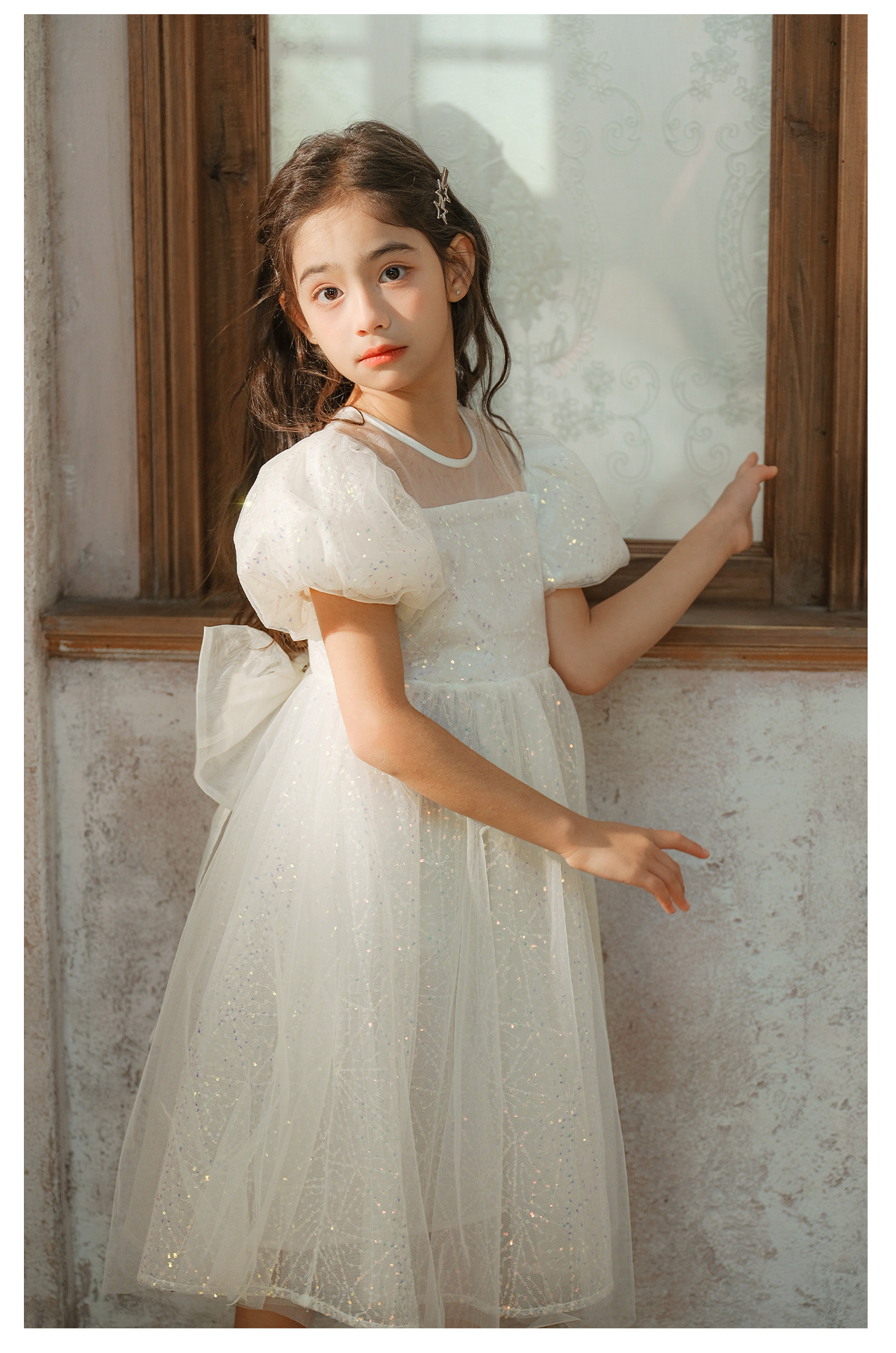 littletime2025新款女童浪漫婚纱星空闪烁亮片公主大蝴蝶结纱裙