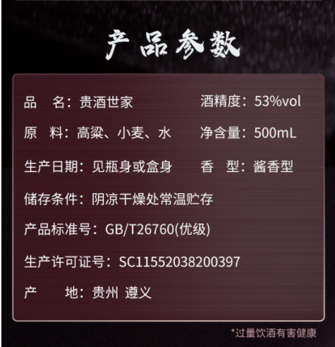 贵州贵酒世家53度500mL 酱香型白酒