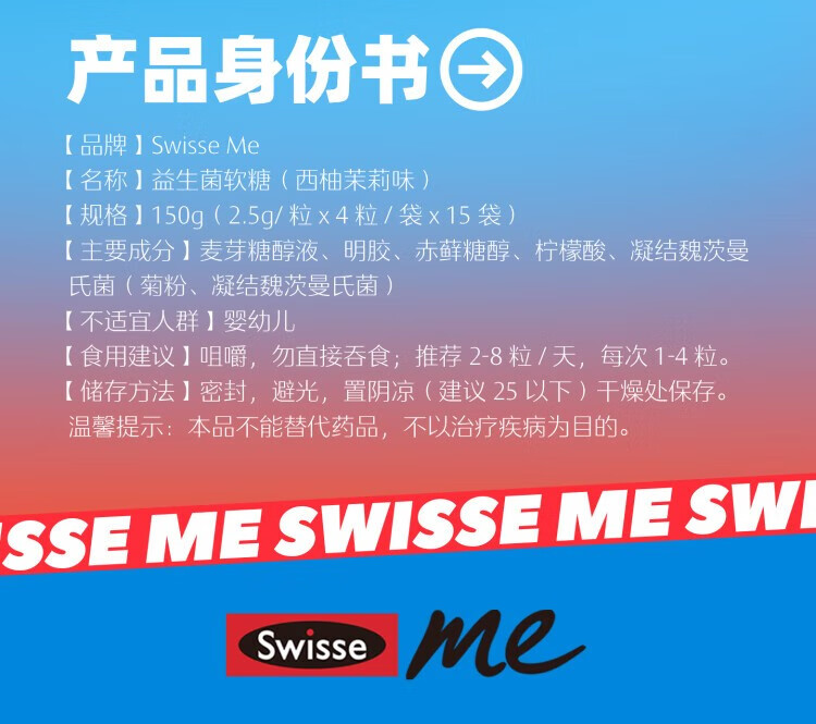 【国内版】Swisse Me 斯维诗益生菌软糖(西柚茉莉味)60粒 口袋咕噜菌