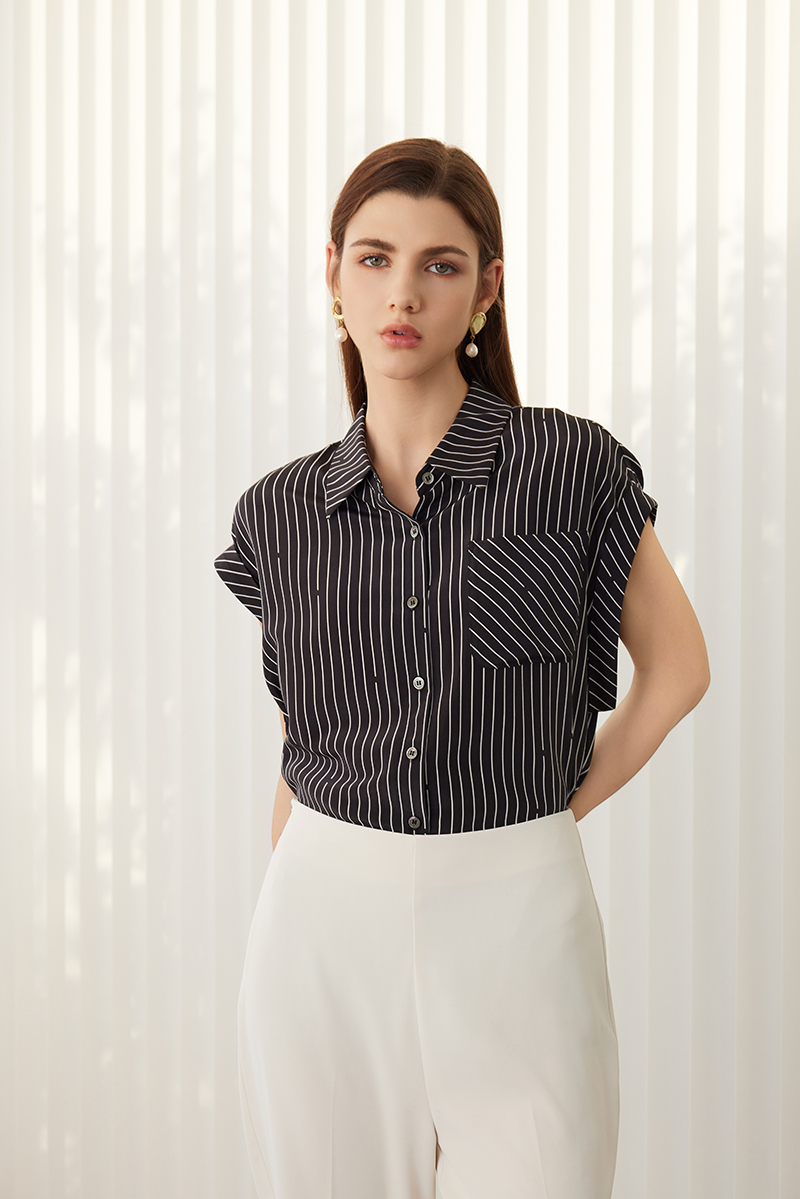 【桑蚕丝短袖衬衫】24年春夏新品女士100%真丝薄款透气上衣