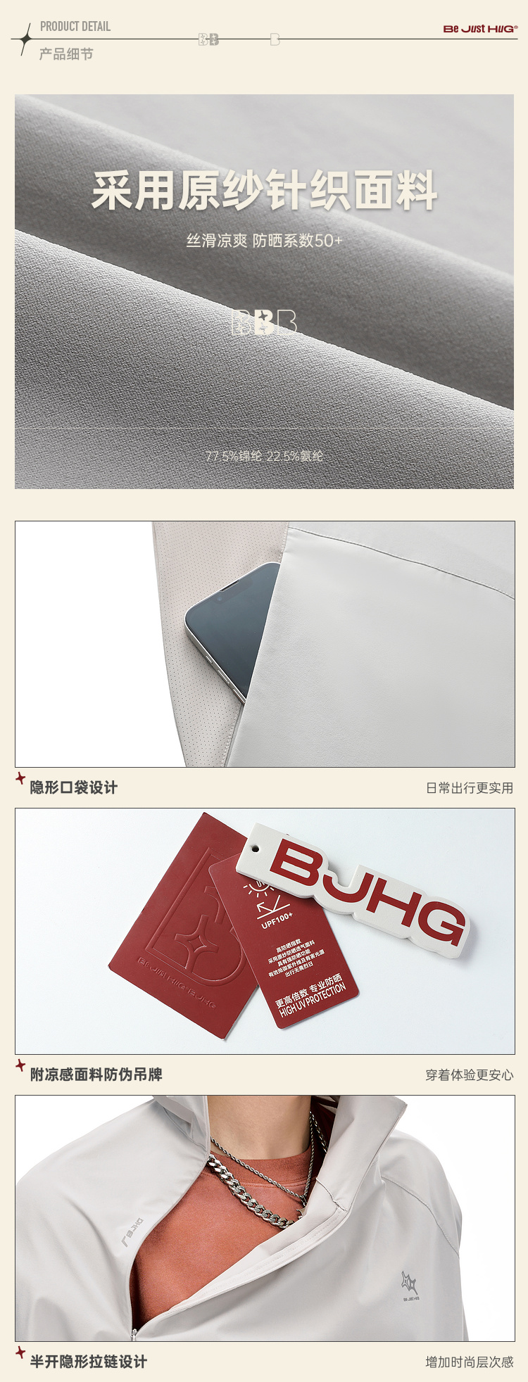 BJHG不计后果设计感拉链polo防晒衣男夏季2025新款撞色拼接防晒服