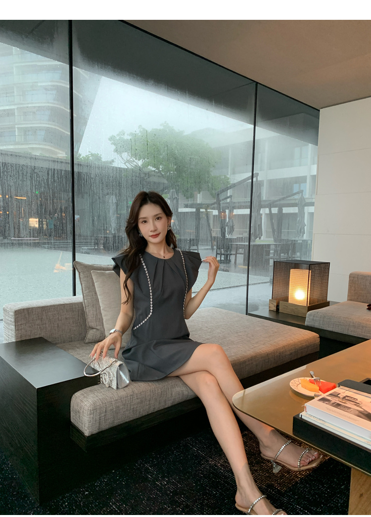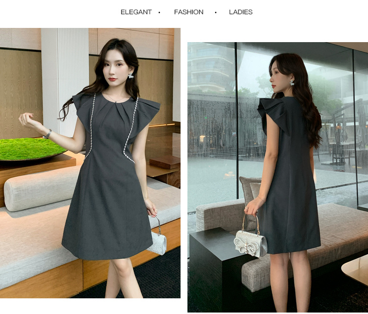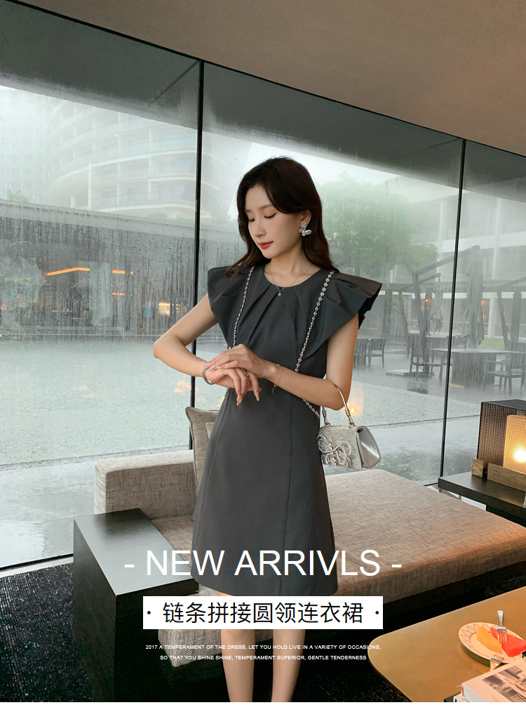 [奢姿轻奢系列]链条拼接连衣裙大码女装夏季新款胖妹妹圆领裙子8942890124